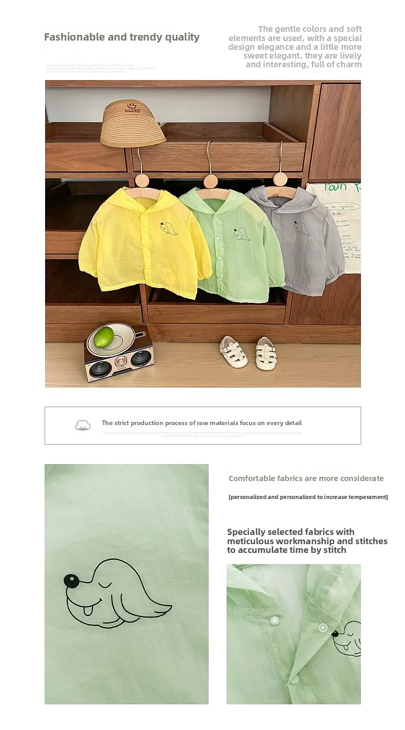 Abbigliamento estivo per protezione solare per bambini, nuovi vestiti per bambini, giacca sottile per aria condizionata, vestiti casual per la pelle con cappuccio per bambini da uomo