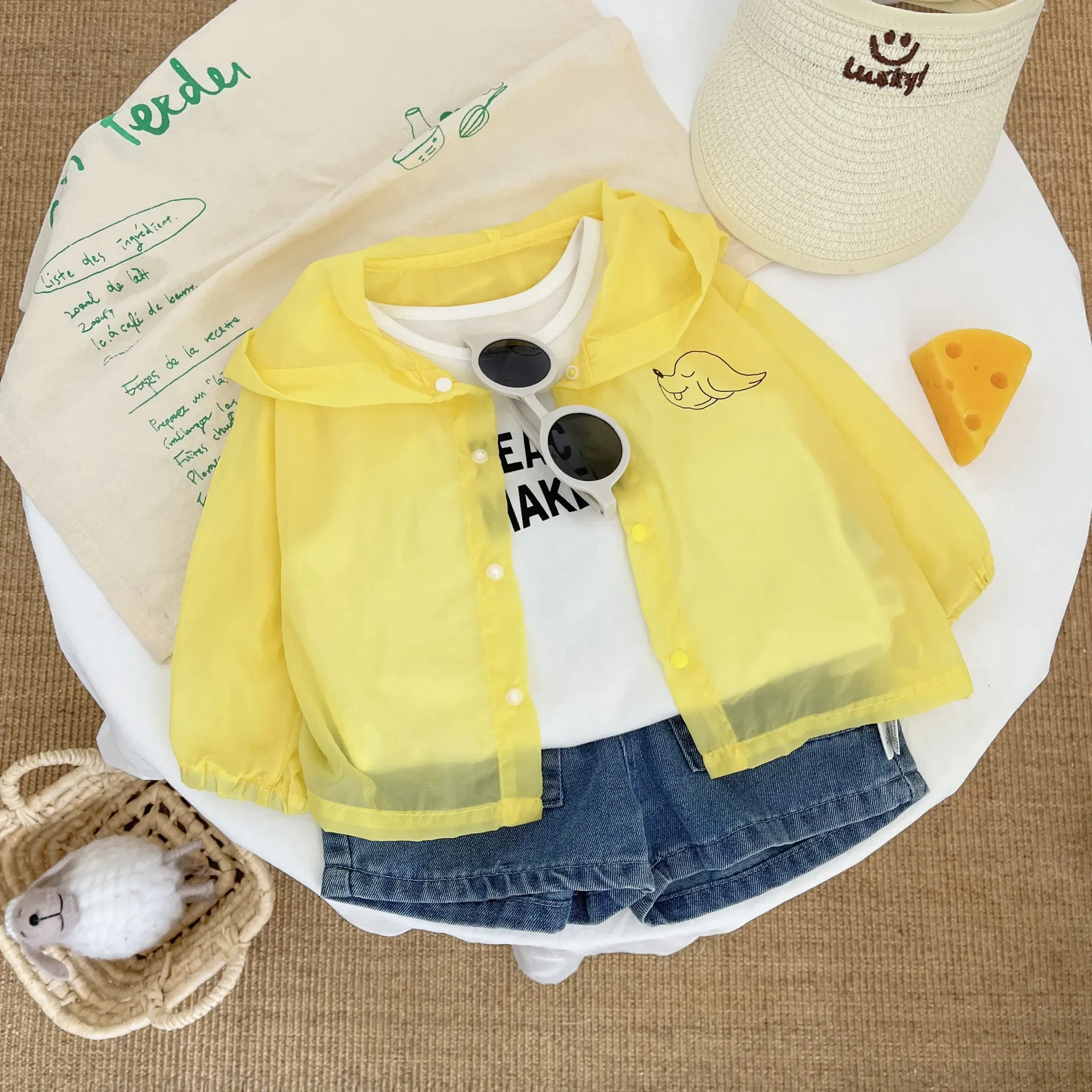 Abbigliamento estivo per protezione solare per bambini, nuovi vestiti per bambini, giacca sottile per aria condizionata, vestiti casual per la pelle con cappuccio per bambini da uomo