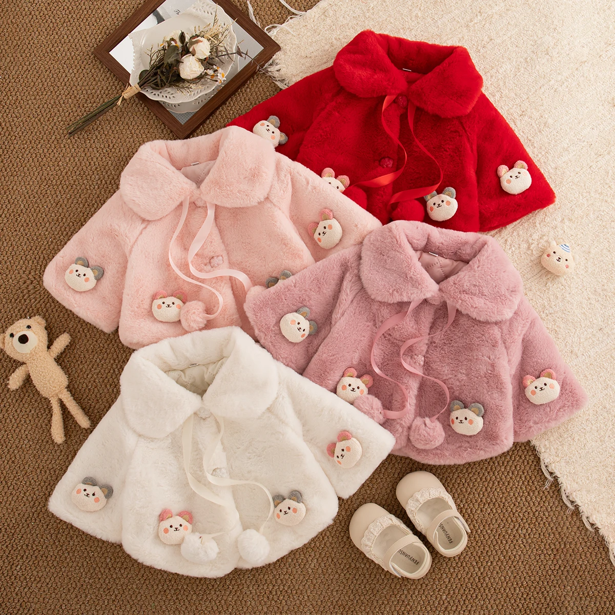 Abbigliamento invernale da ragazza Cappotto invernale da ragazza caldo foderato in shearling dei cartoni animati Adorabile capospalla per bambini con colletto