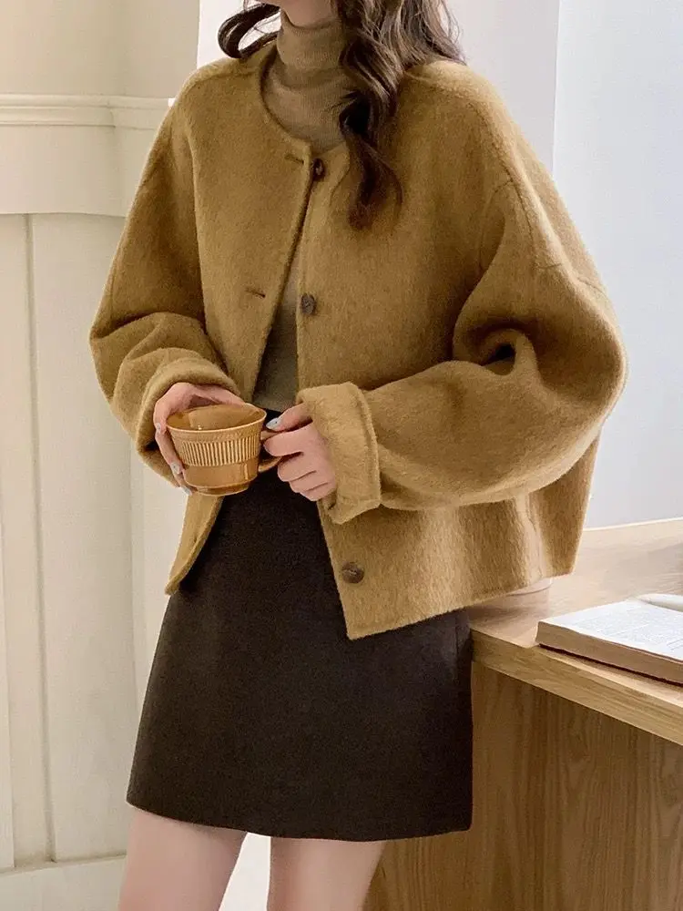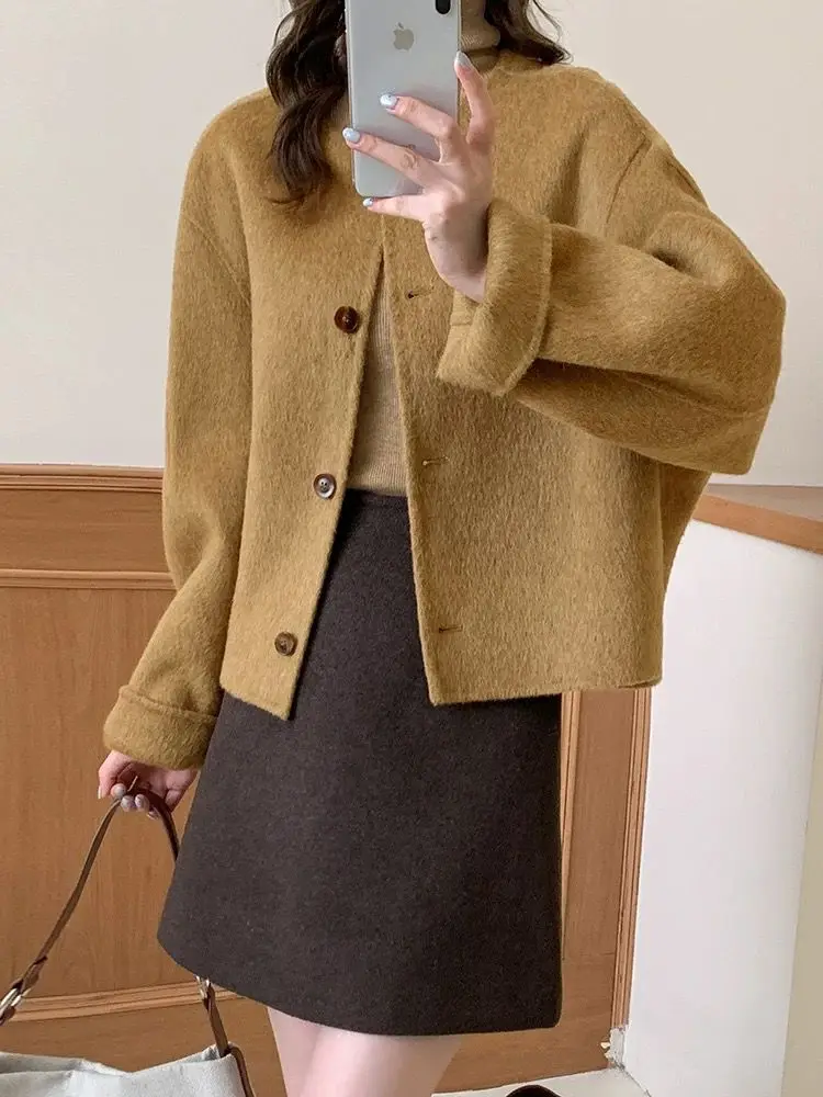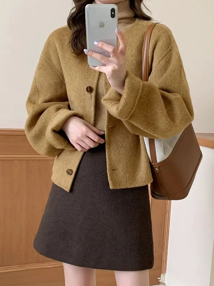 Abbigliamento invernale Donna Moda coreana Semplice Chic Streetwear Cappotto di lana Giacca monopetto allentata a maniche lunghe elegante vintage