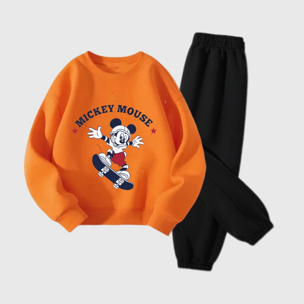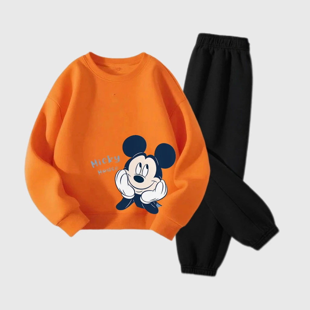 Abiti a maniche lunghe per ragazzi e ragazze Topolino arancione Top Pantaloni neri Due pezzi Bambini 2025 Autunno Nuovo design Abbigliamento Abiti