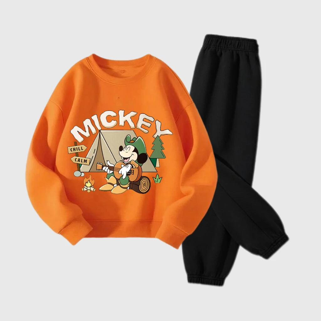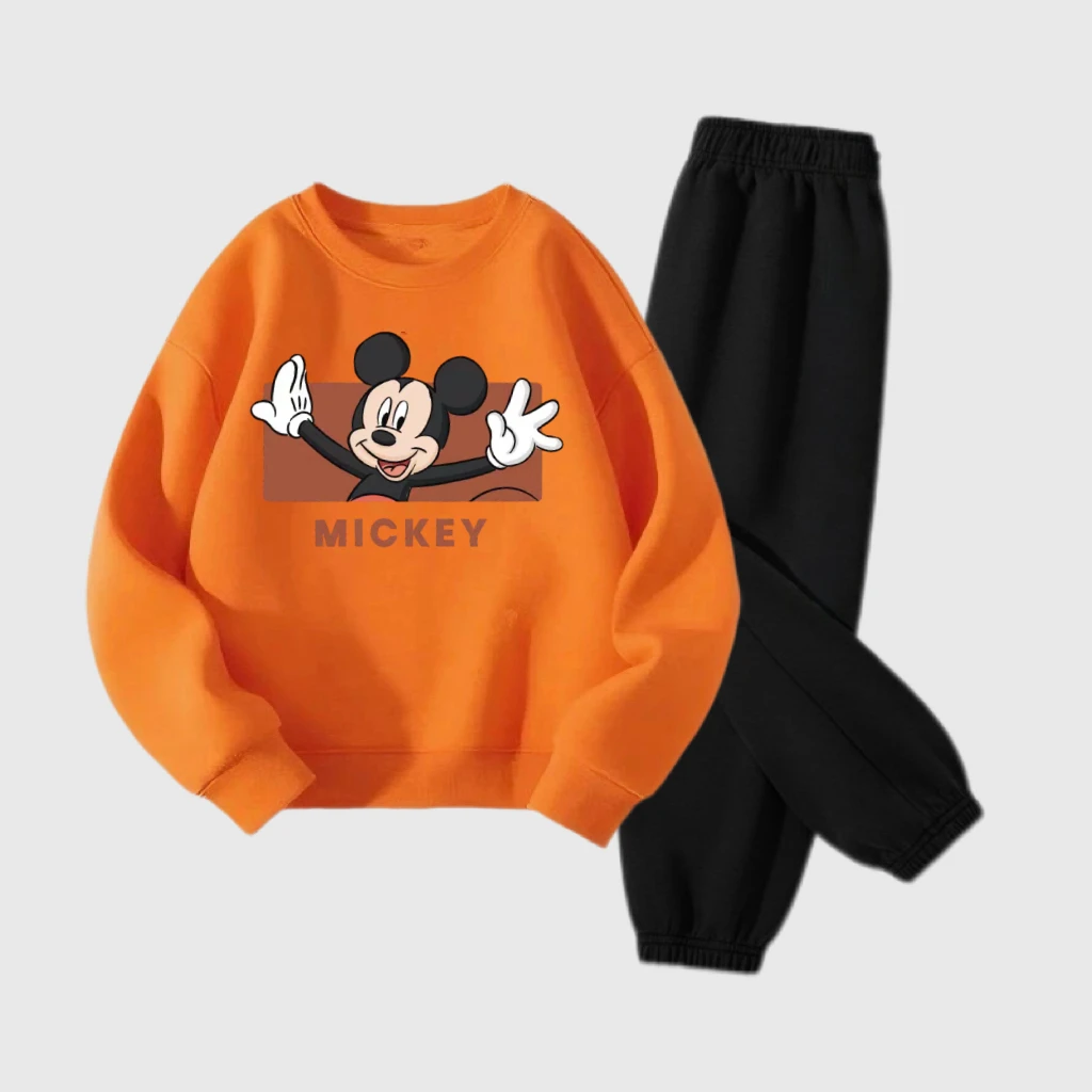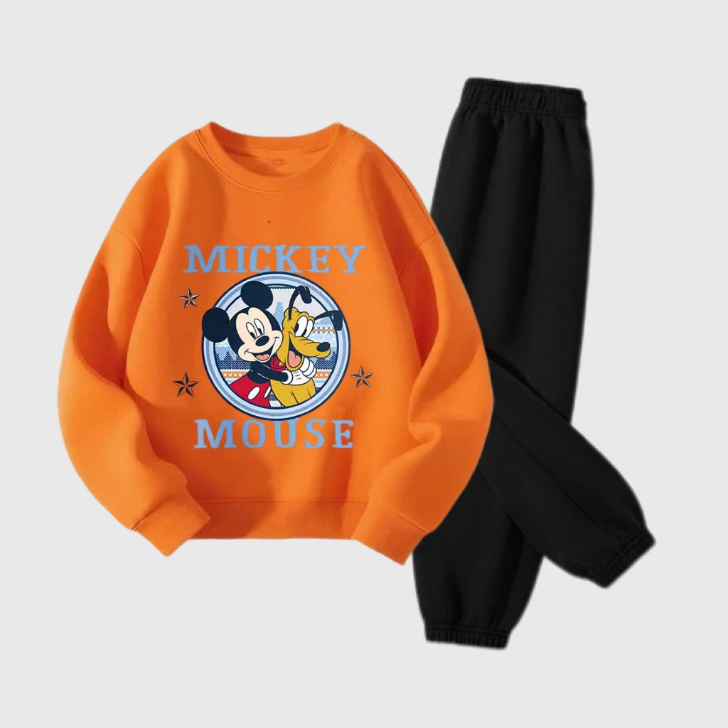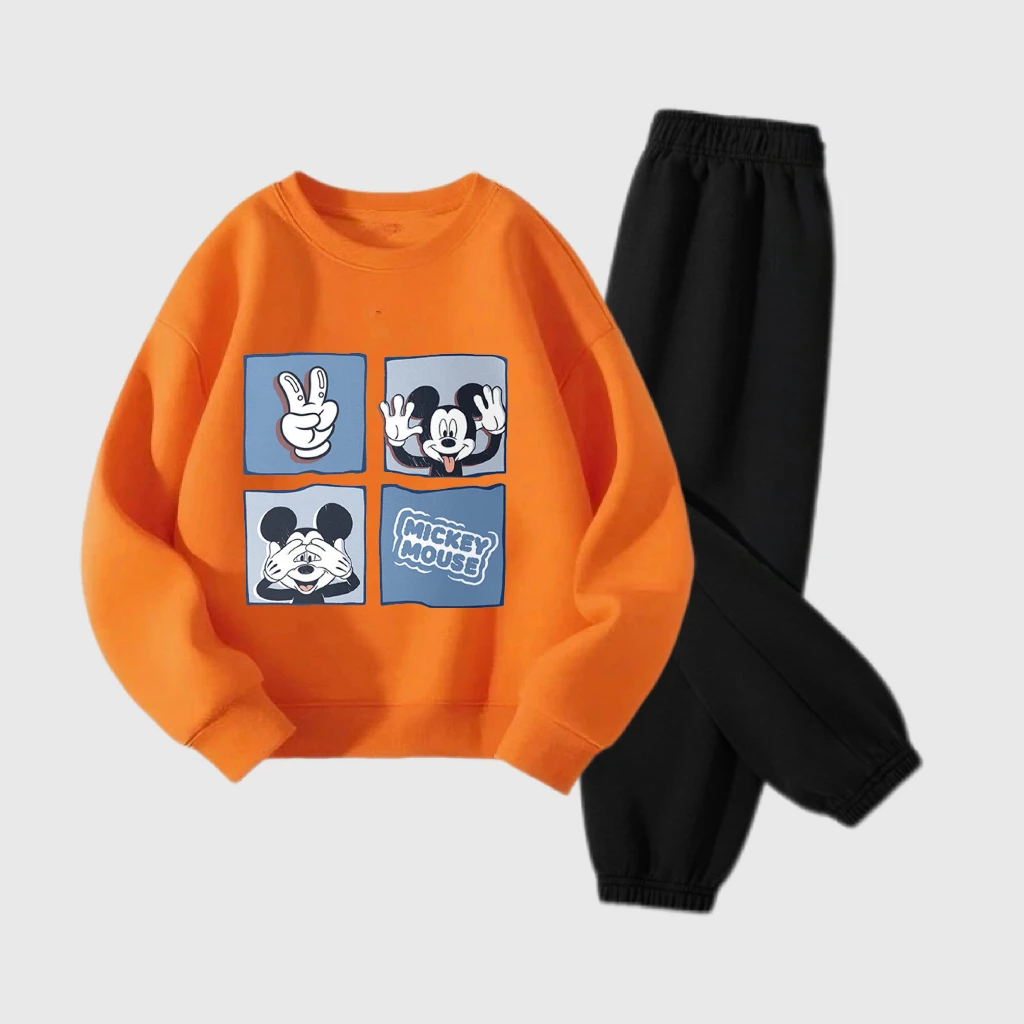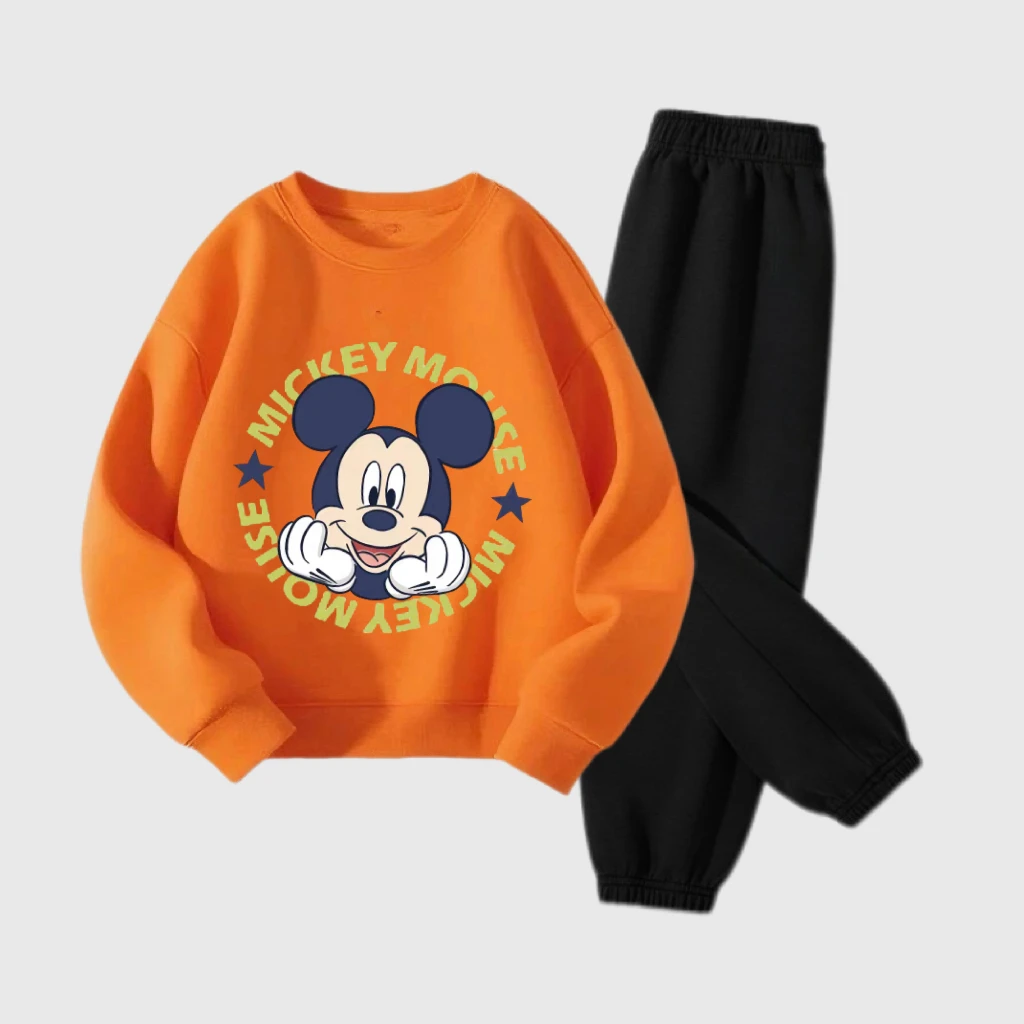 Abiti a maniche lunghe per ragazzi e ragazze Topolino arancione Top Pantaloni neri Due pezzi Bambini 2025 Autunno Nuovo design Abbigliamento Abiti