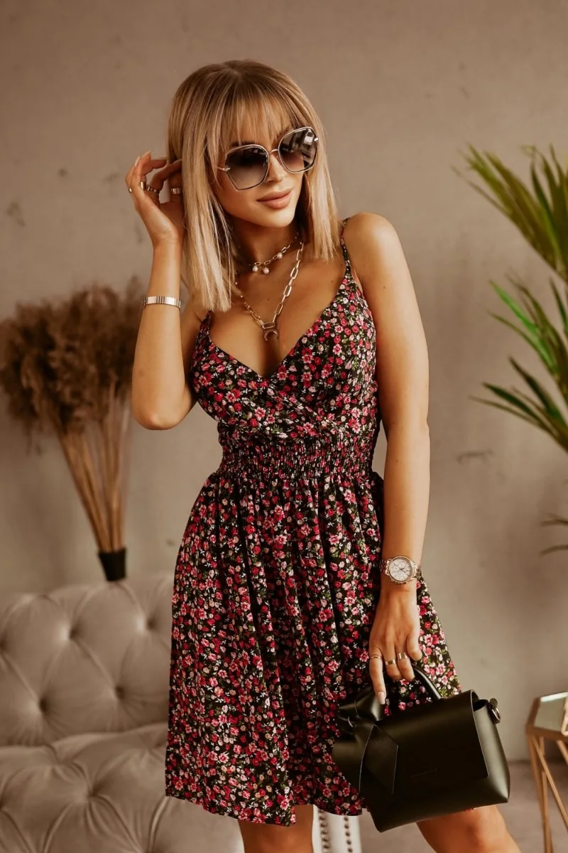 Abiti a pieghe avvolgenti estivi da donna di nuova moda Stampa floreale da donna Abito sexy con cinturino per spaghetti Abito da spiaggia A Line Sundress