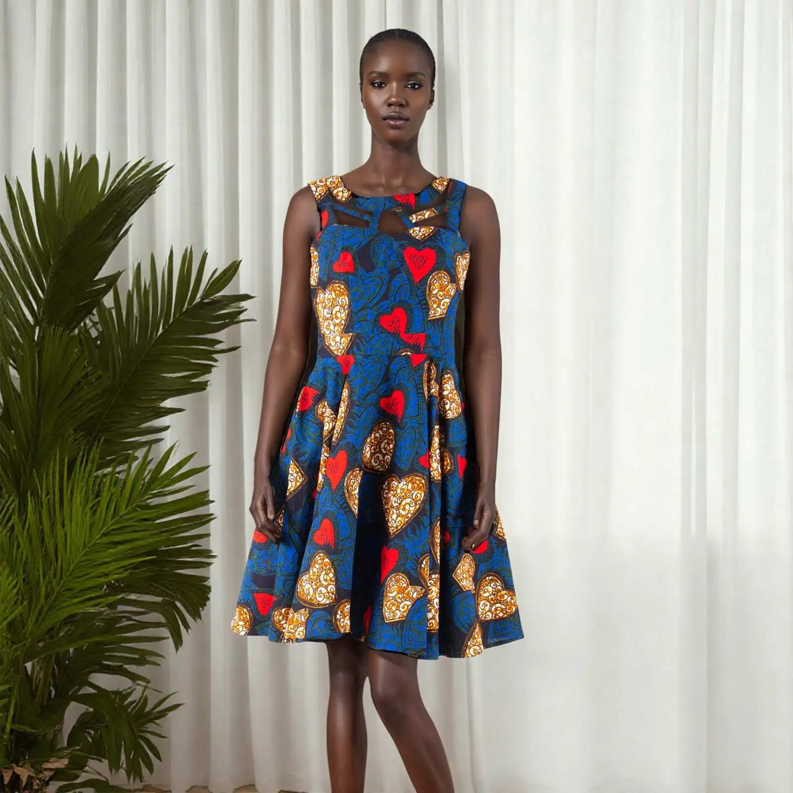 Abiti africani da donna Elegante abito longuette senza maniche a vita alta taglie forti per abiti da festa taglie forti per donna S 2125014