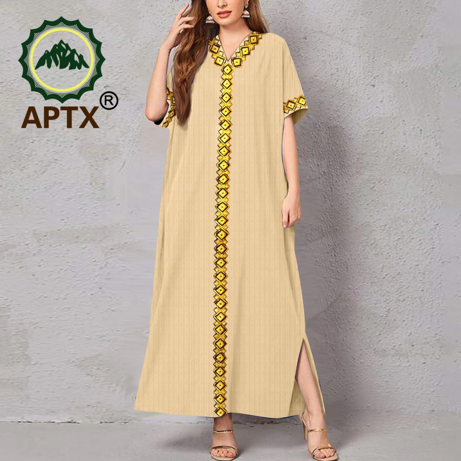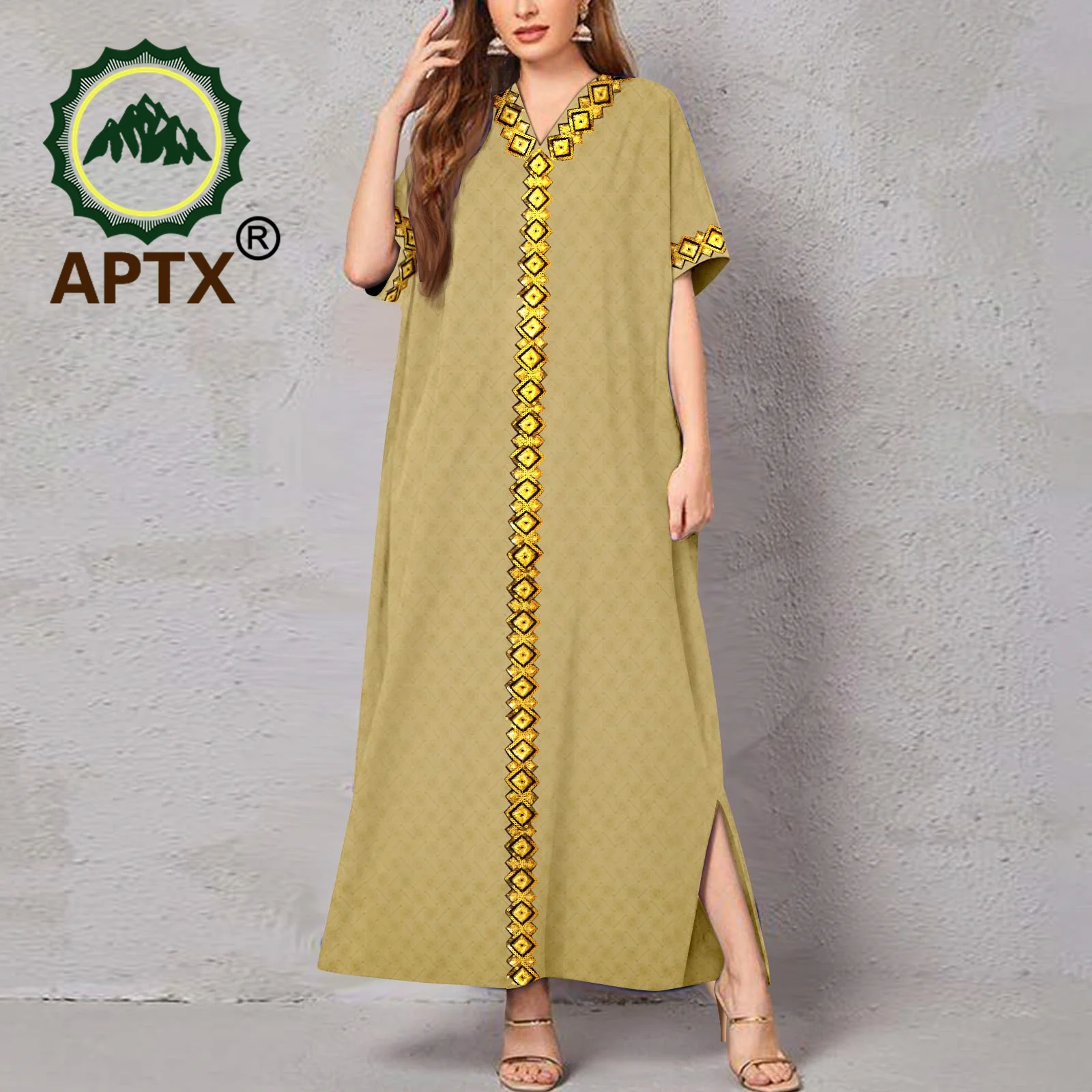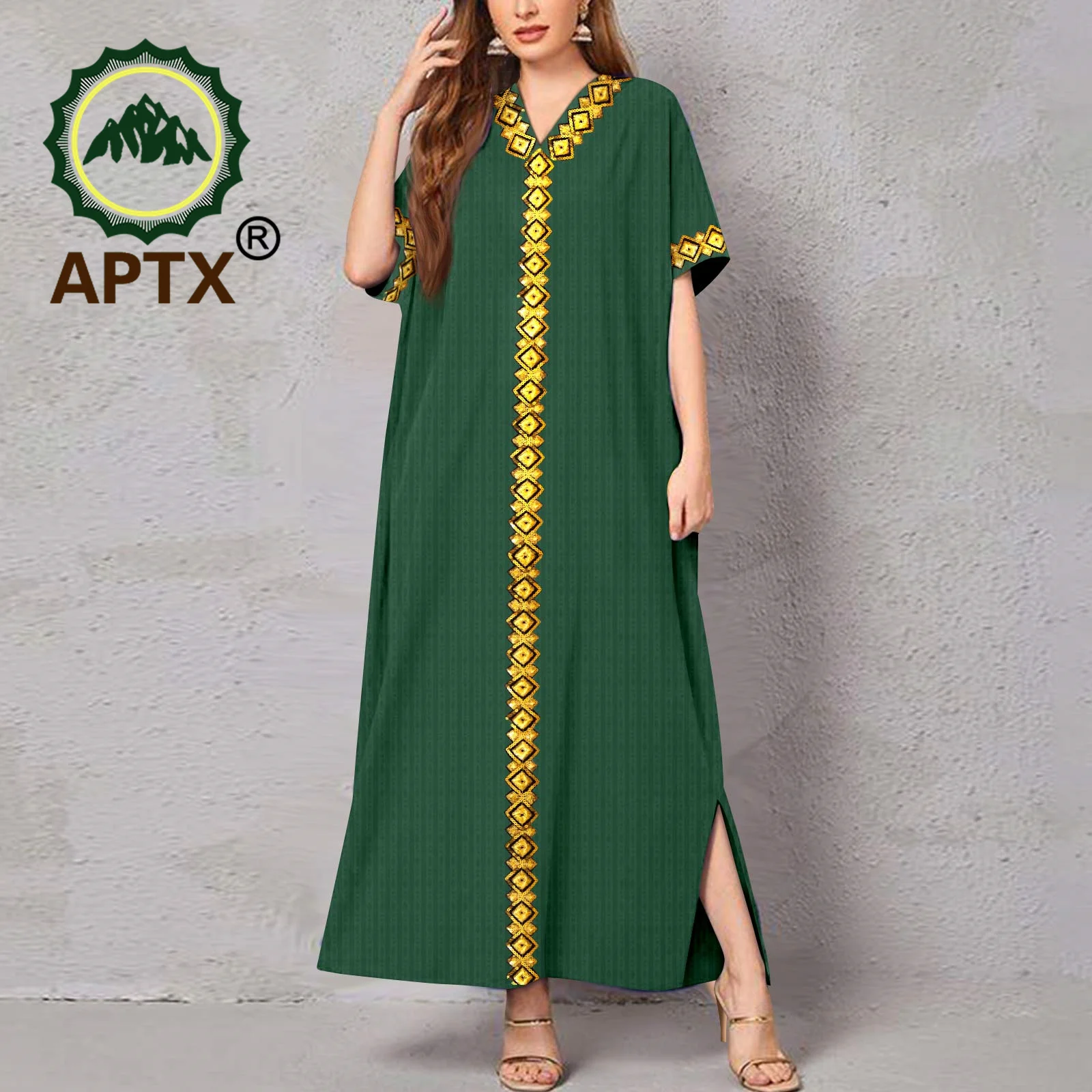 Abiti africani per le donne musulmane Abaya Jacquard allentato scollo a V manica corta abito causale matrimonio elegante abiti da donna A2326015