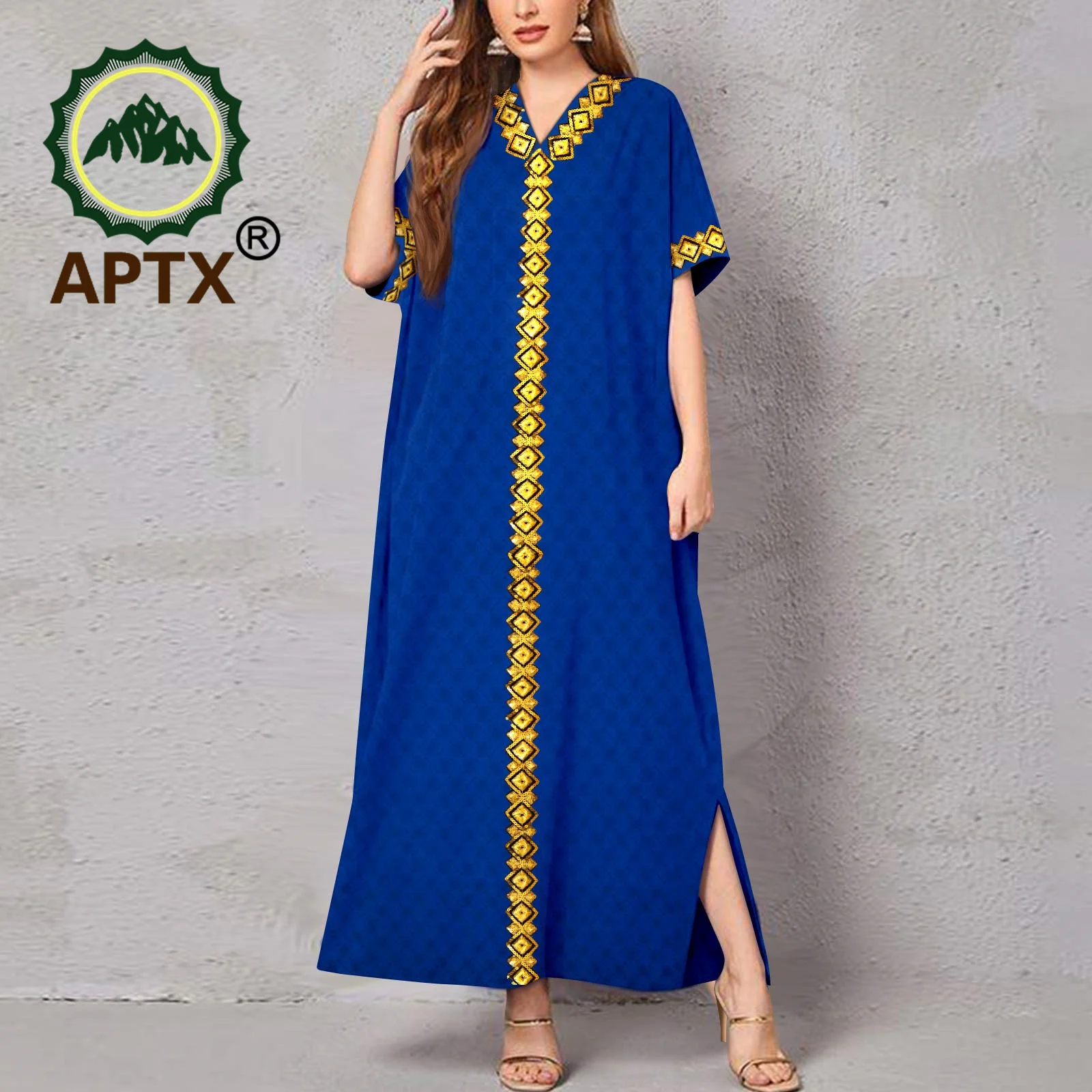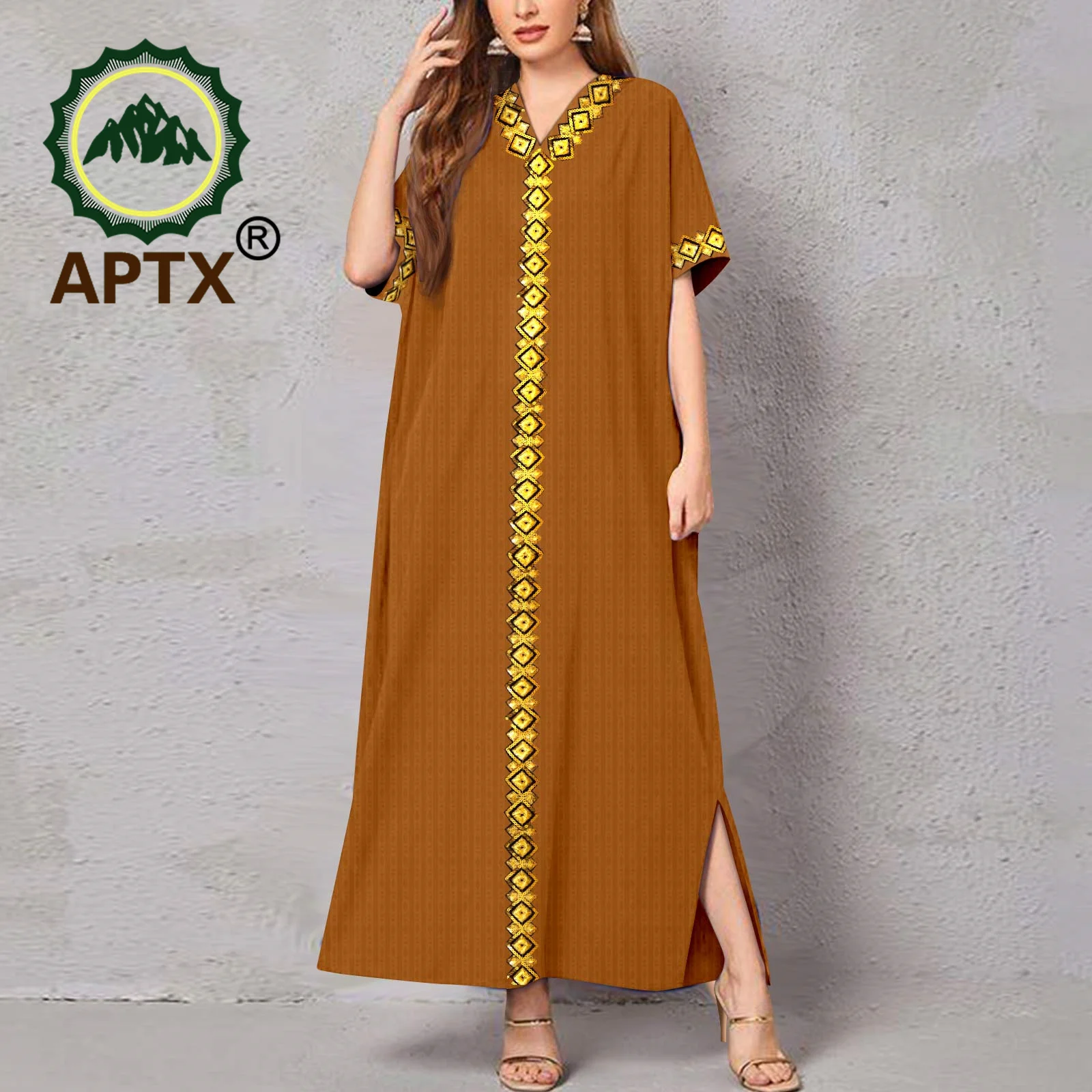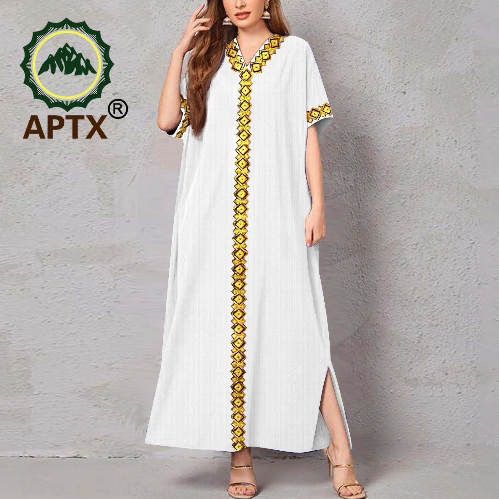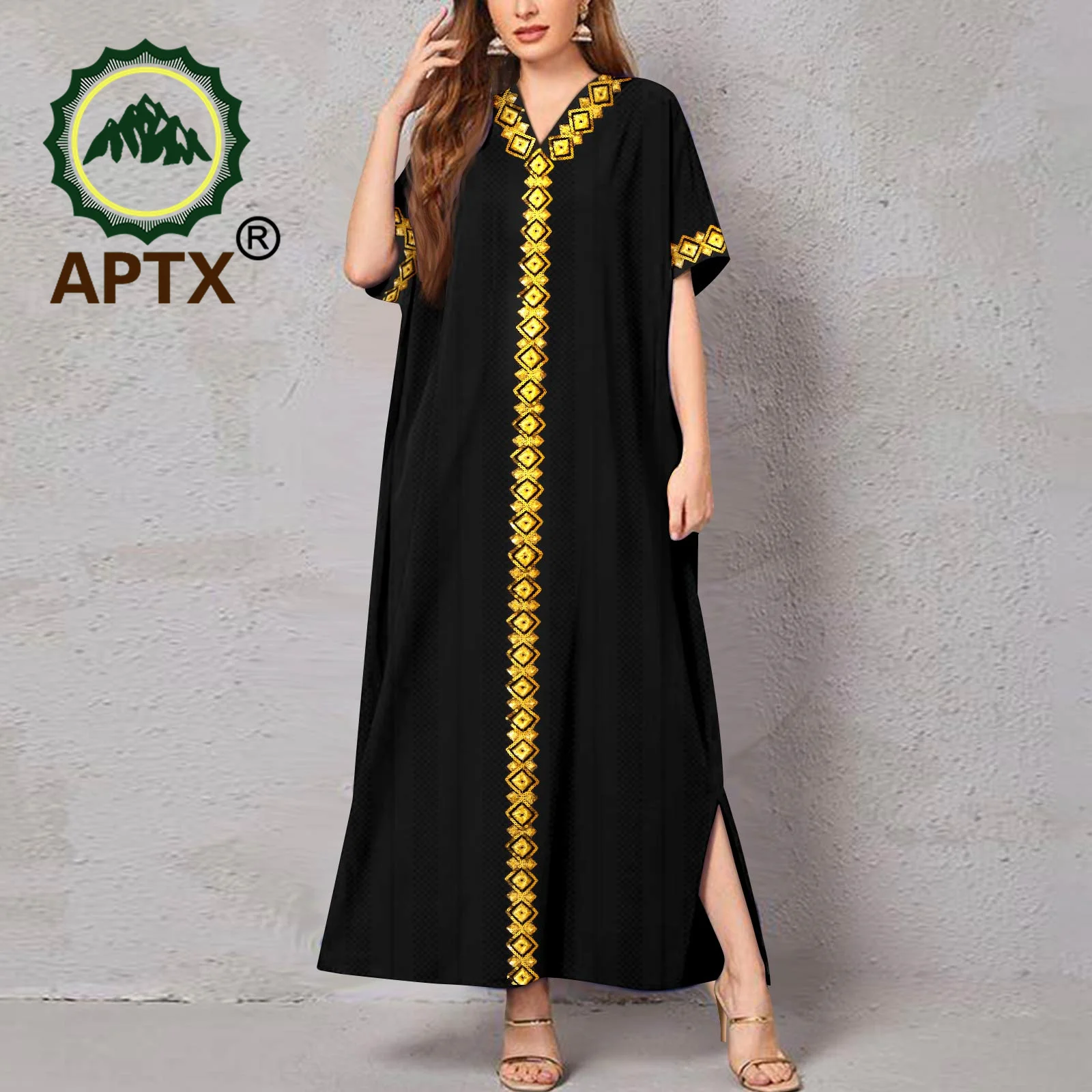 Abiti africani per le donne musulmane Abaya Jacquard allentato scollo a V manica corta abito causale matrimonio elegante abiti da donna A2326015