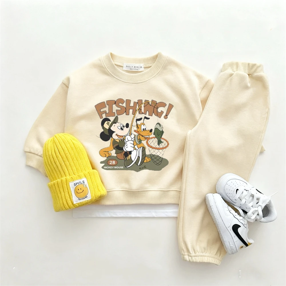 Abiti beige Abbigliamento casual moda Felpe Topolino 2-6 anni Ragazzi Ragazze Abiti a maniche lunghe Abbigliamento esterno Costume autunnale