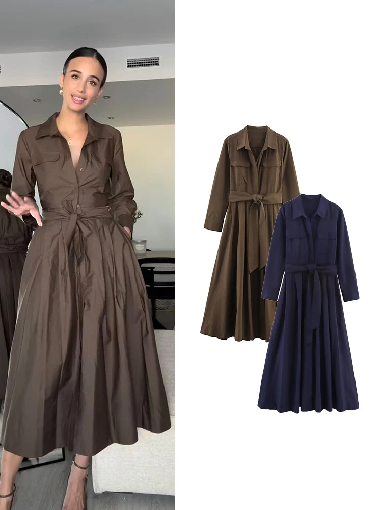 Abiti camicia a maniche lunghe da donna con cintura Autunno 2025 Moda retrò elegante bottoni di lusso Abiti midi OL Abiti da pendolarismo
