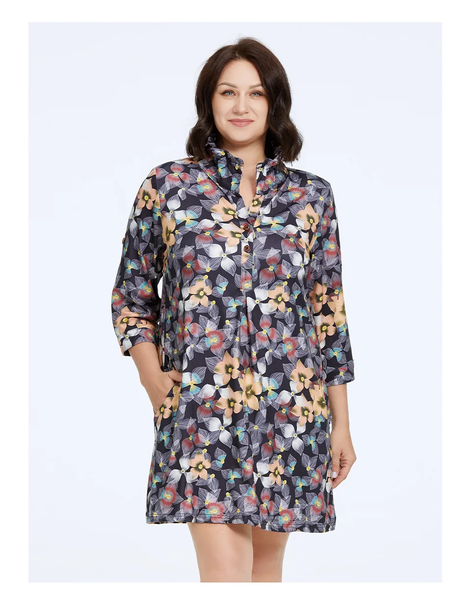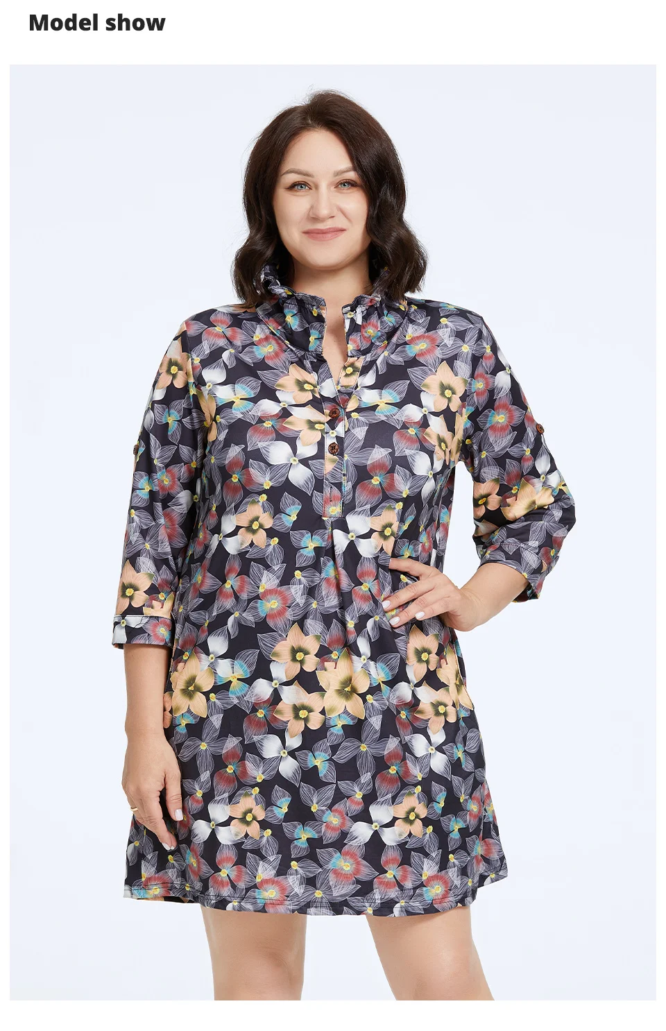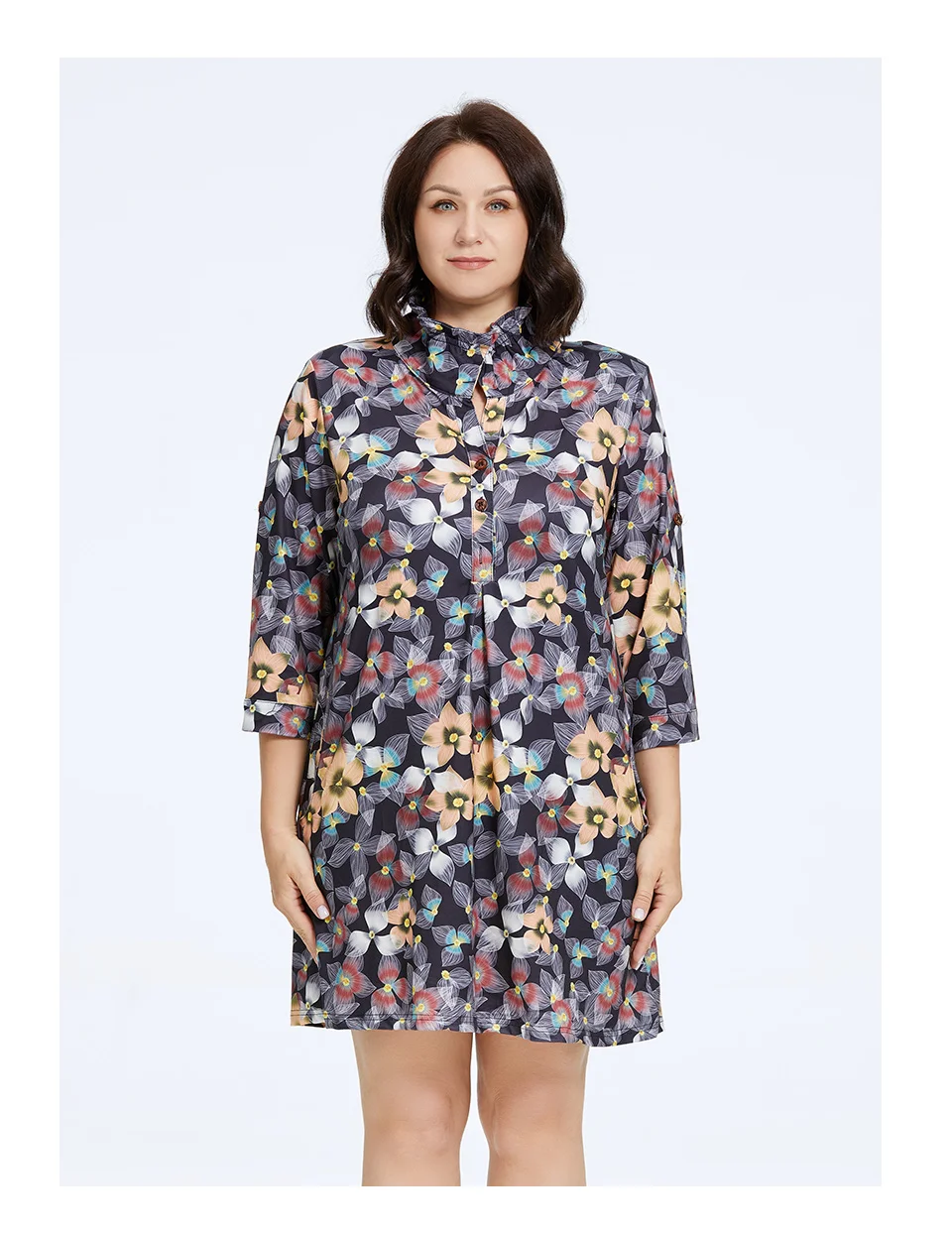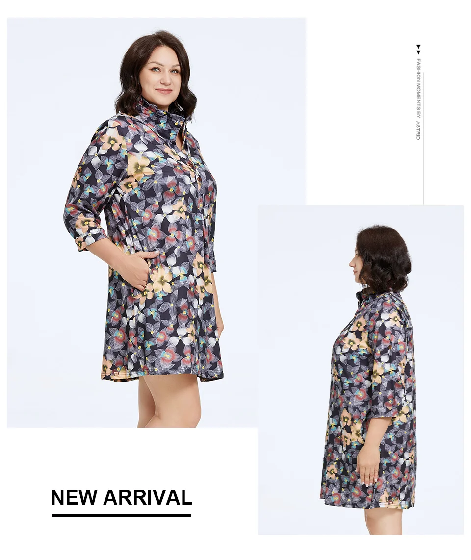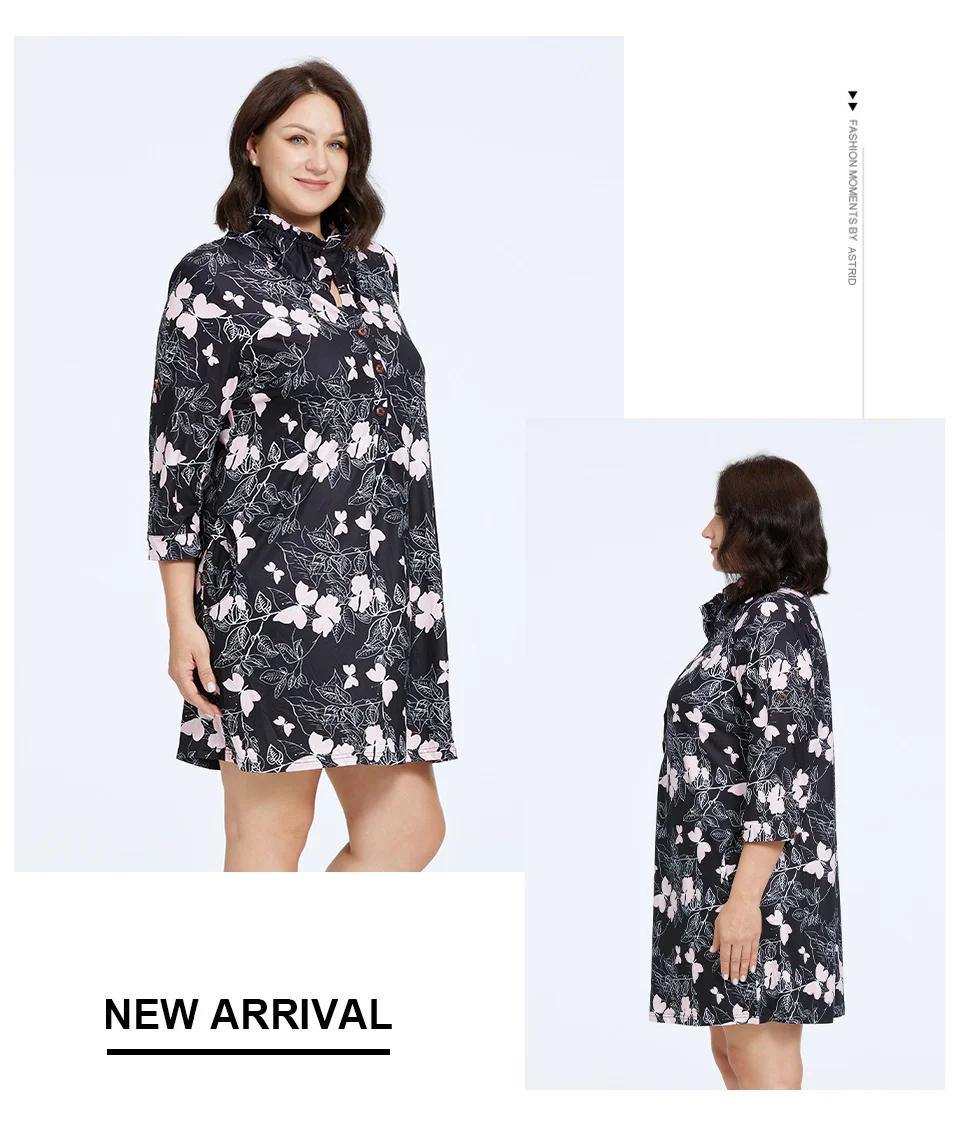 Abiti da donna Astrid 2023 nuove maniche lunghe Plus Size stampa floreale abito elegante colletto rialzato abiti da festa ufficio quotidiano