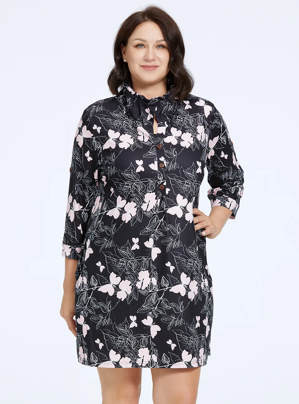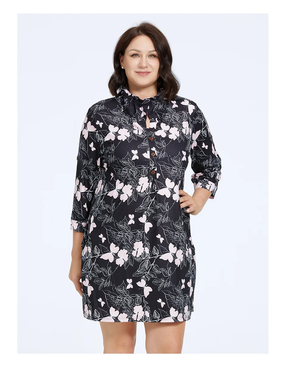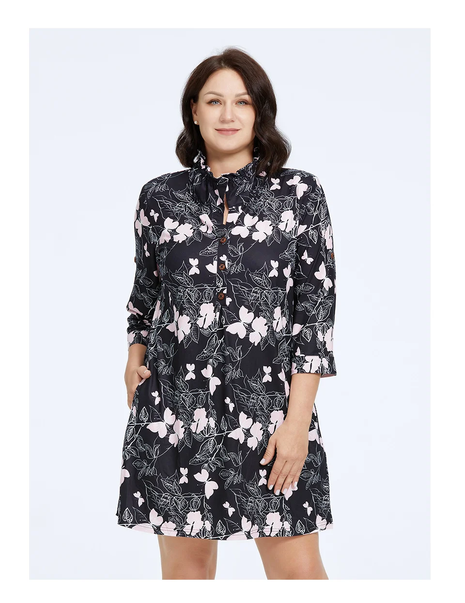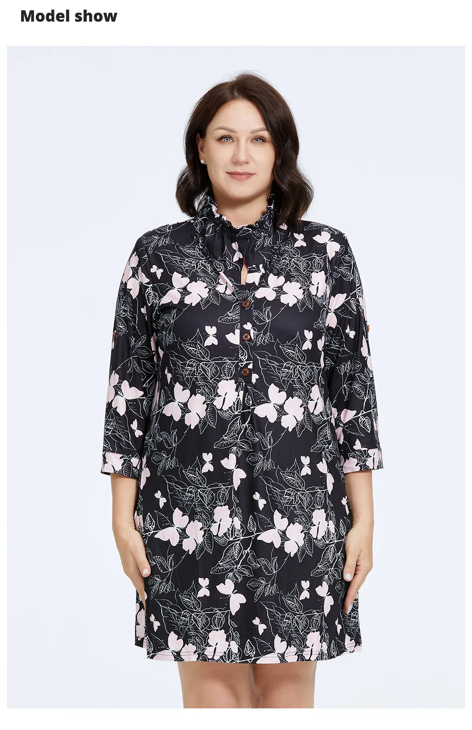 Abiti da donna Astrid 2023 nuove maniche lunghe Plus Size stampa floreale abito elegante colletto rialzato abiti da festa ufficio quotidiano