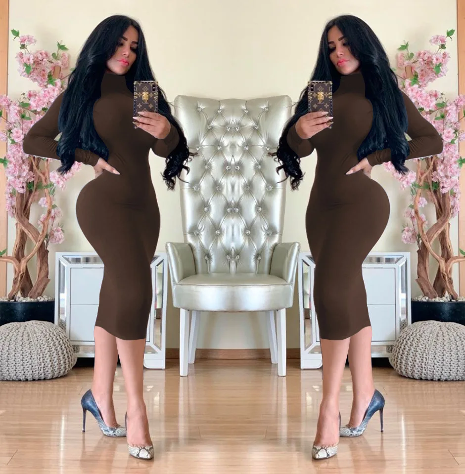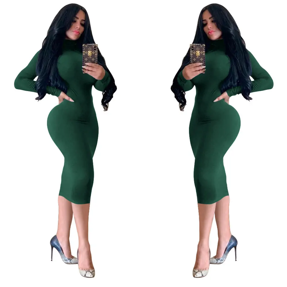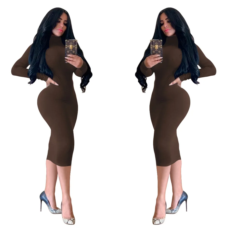 Abiti dolcevita aderenti in tinta unita moda per le donne Autunno Inverno Nuovo avvolgente sexy Hip Slim eleganti abiti da donna Streetwear