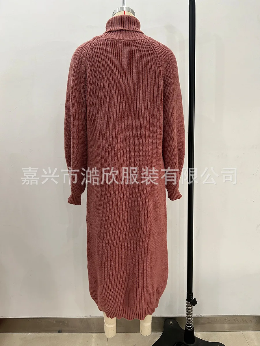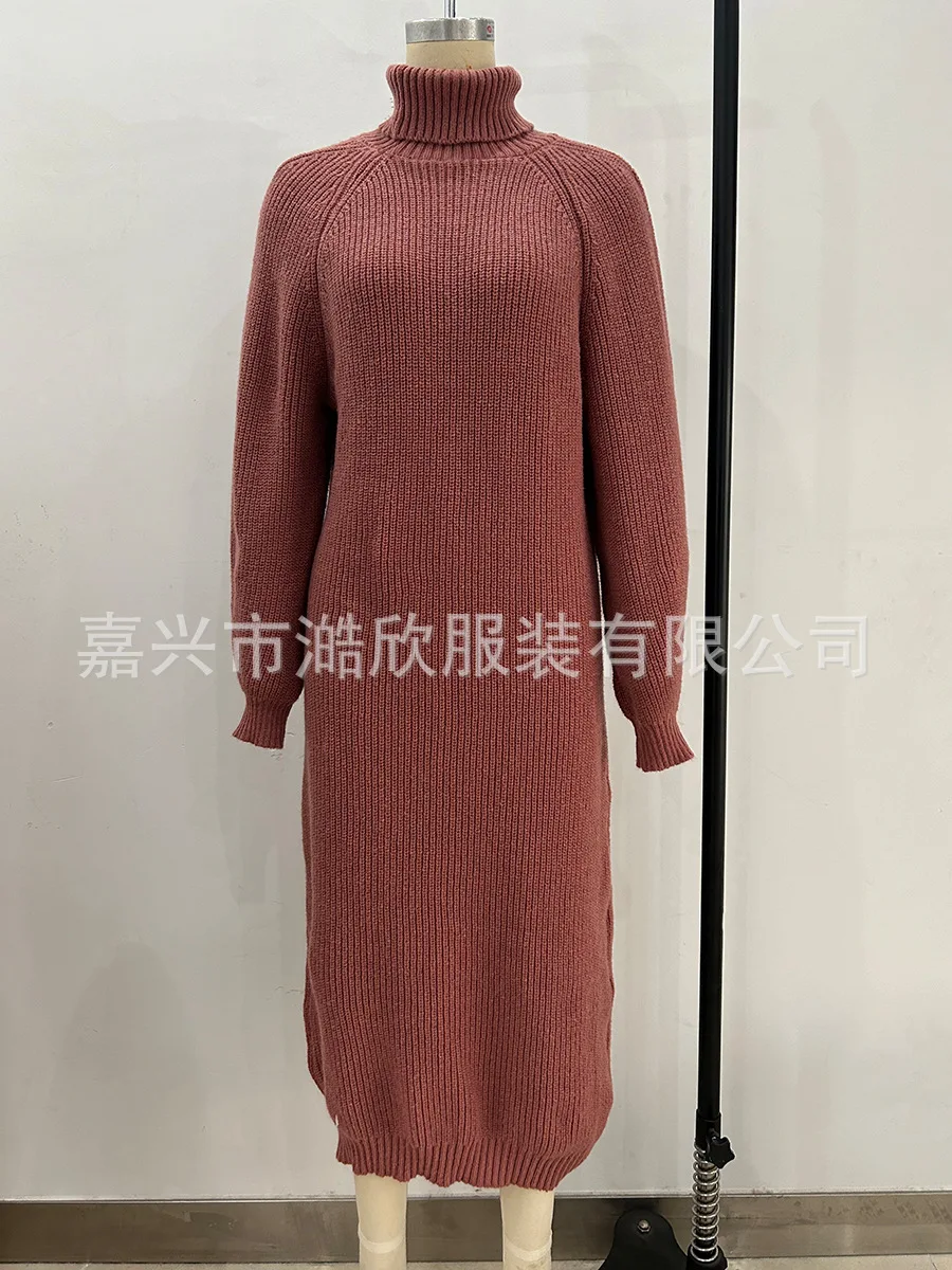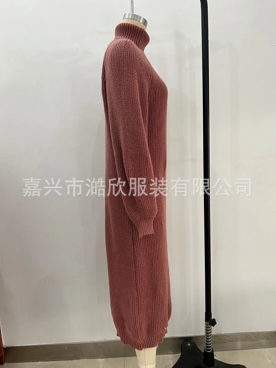 Abiti in maglia da donna dolcevita abito lungo dritto solido manica intera spessa abiti casual base Lady autunno inverno 2025