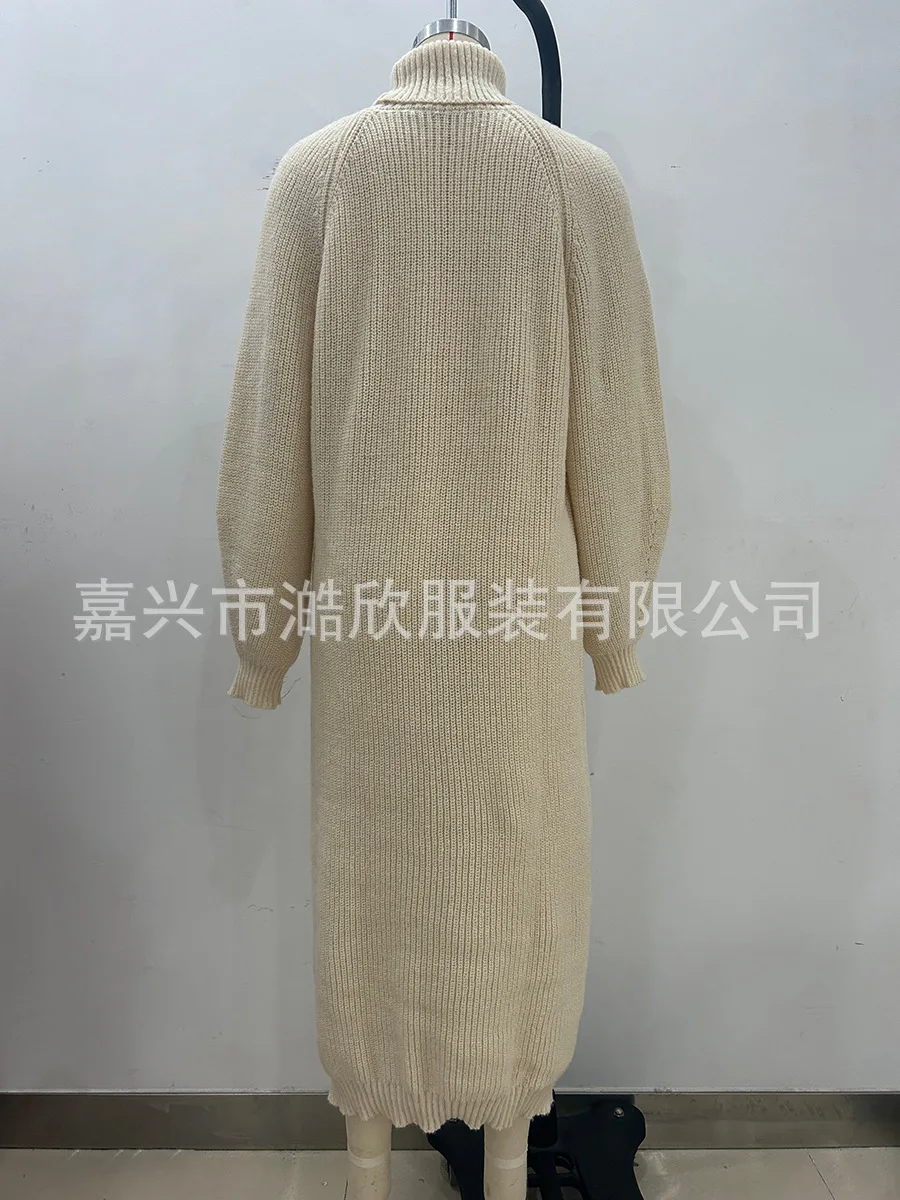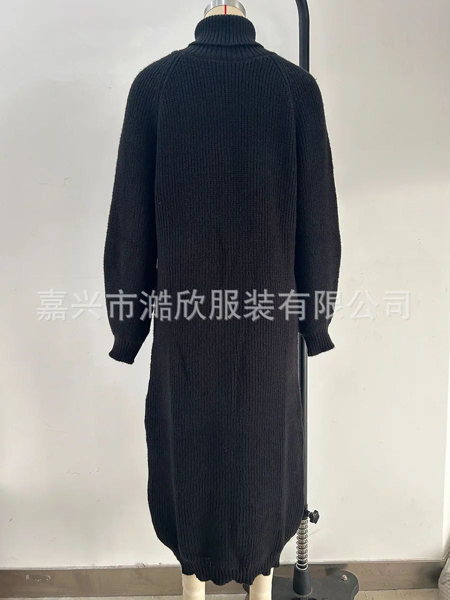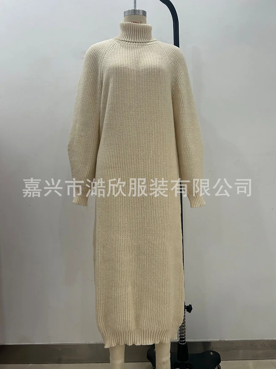 Abiti in maglia da donna dolcevita abito lungo dritto solido manica intera spessa abiti casual base Lady autunno inverno 2025