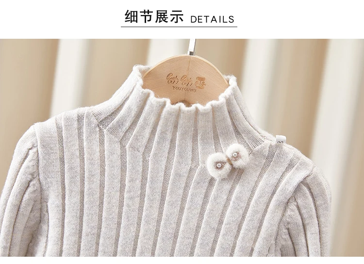 Abiti invernali per bambini e ragazze, pullover lavorato a maglia con fiocco caldo, top per bambini, maglione T-shirt slim fit con ago piatto in stoffa per ragazze