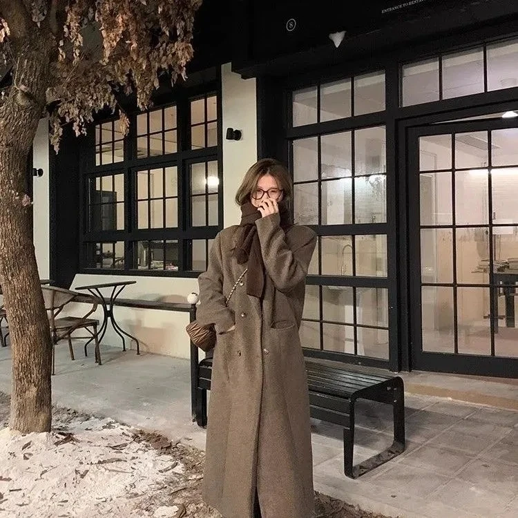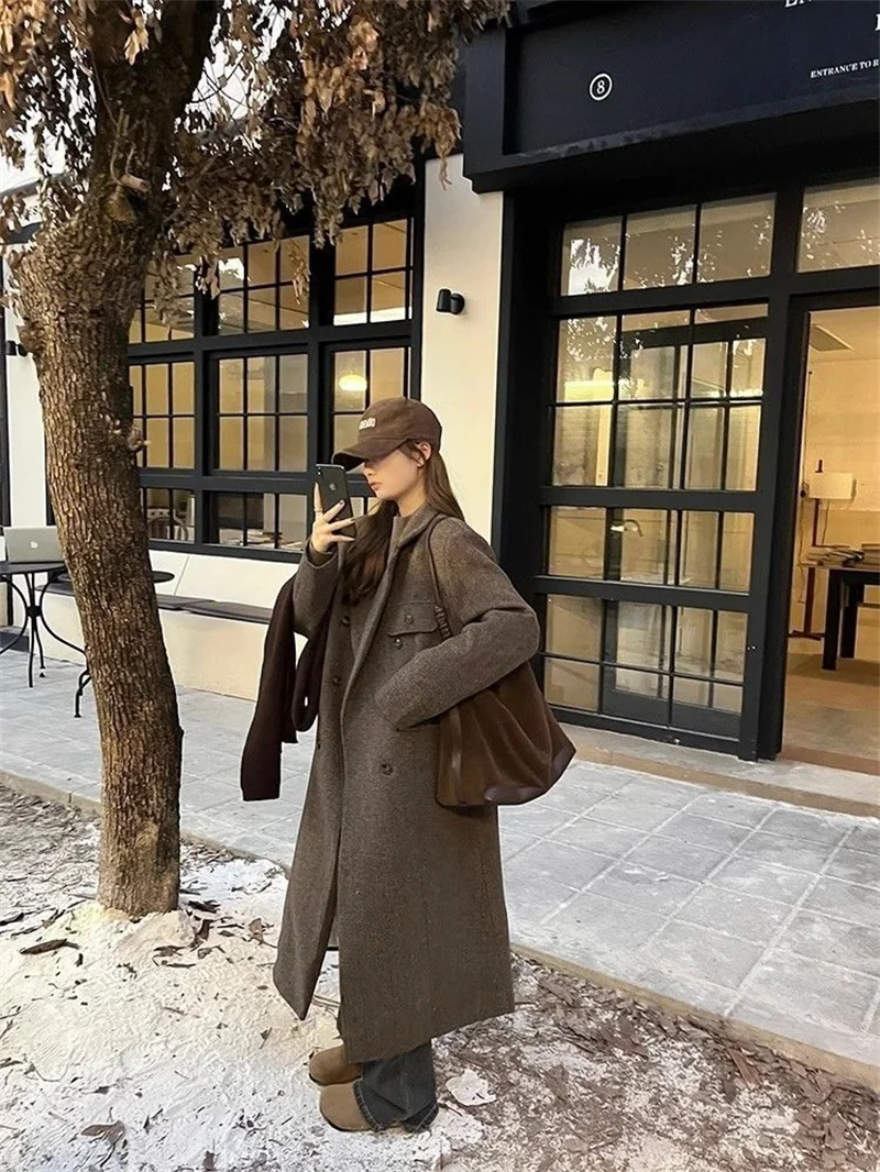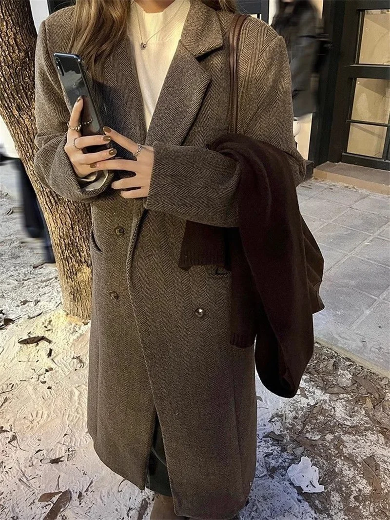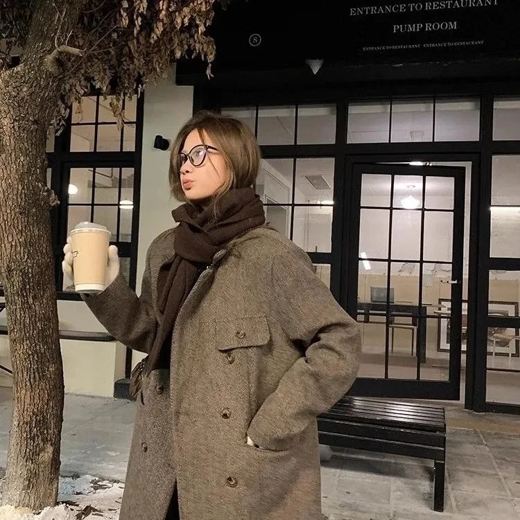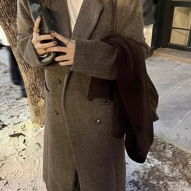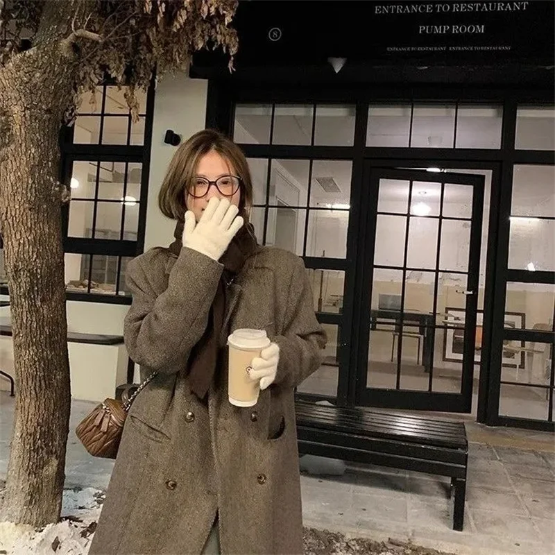 Abito 2025 cappotto di lana per l’autunno, nuovo cappotto di lana invernale da donna corto di fascia alta in stile coreano Maillard