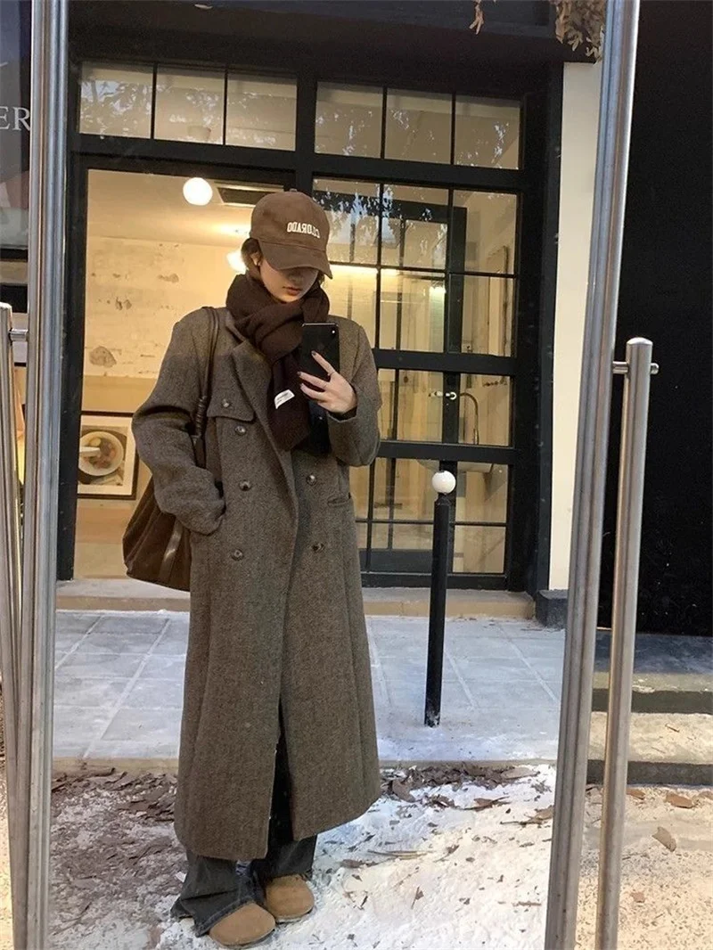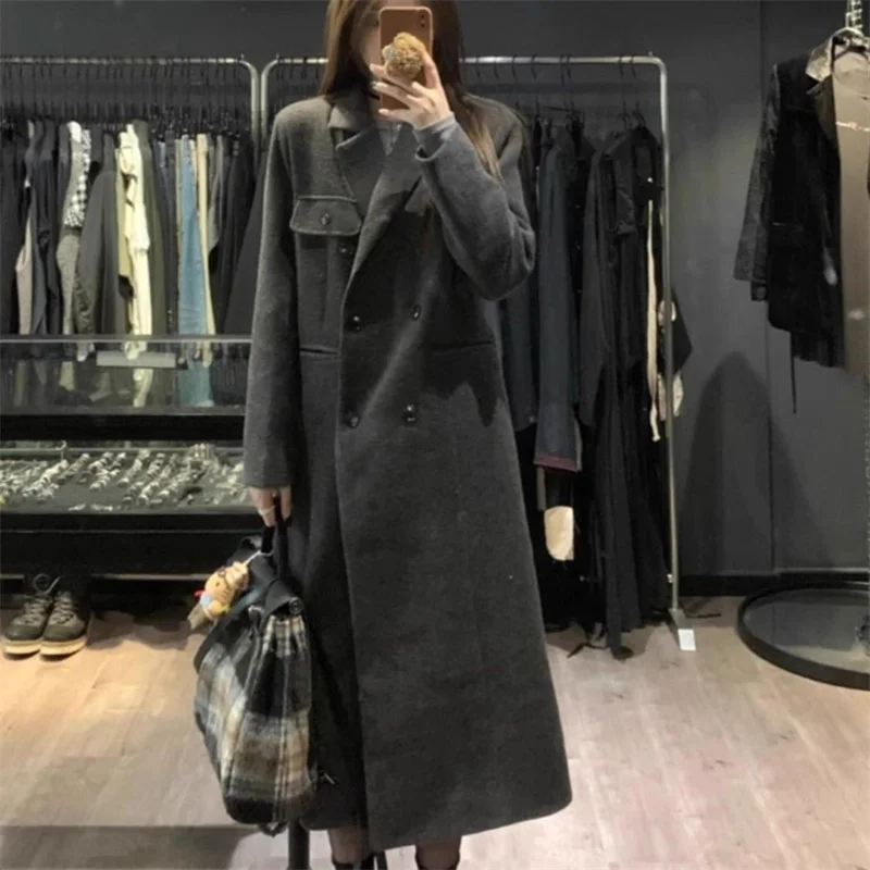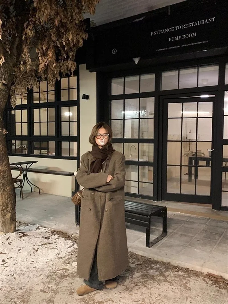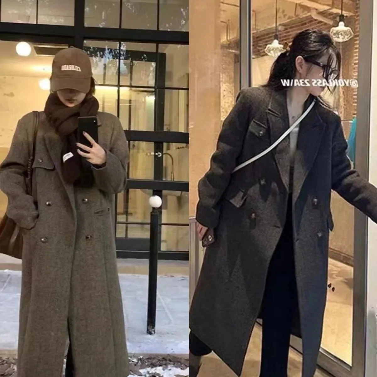 2024 AliExpress transfrontaliero autunno e inverno bella bellezza, nuovo vestito allentato moda retrò colletto alla coreana lungo
