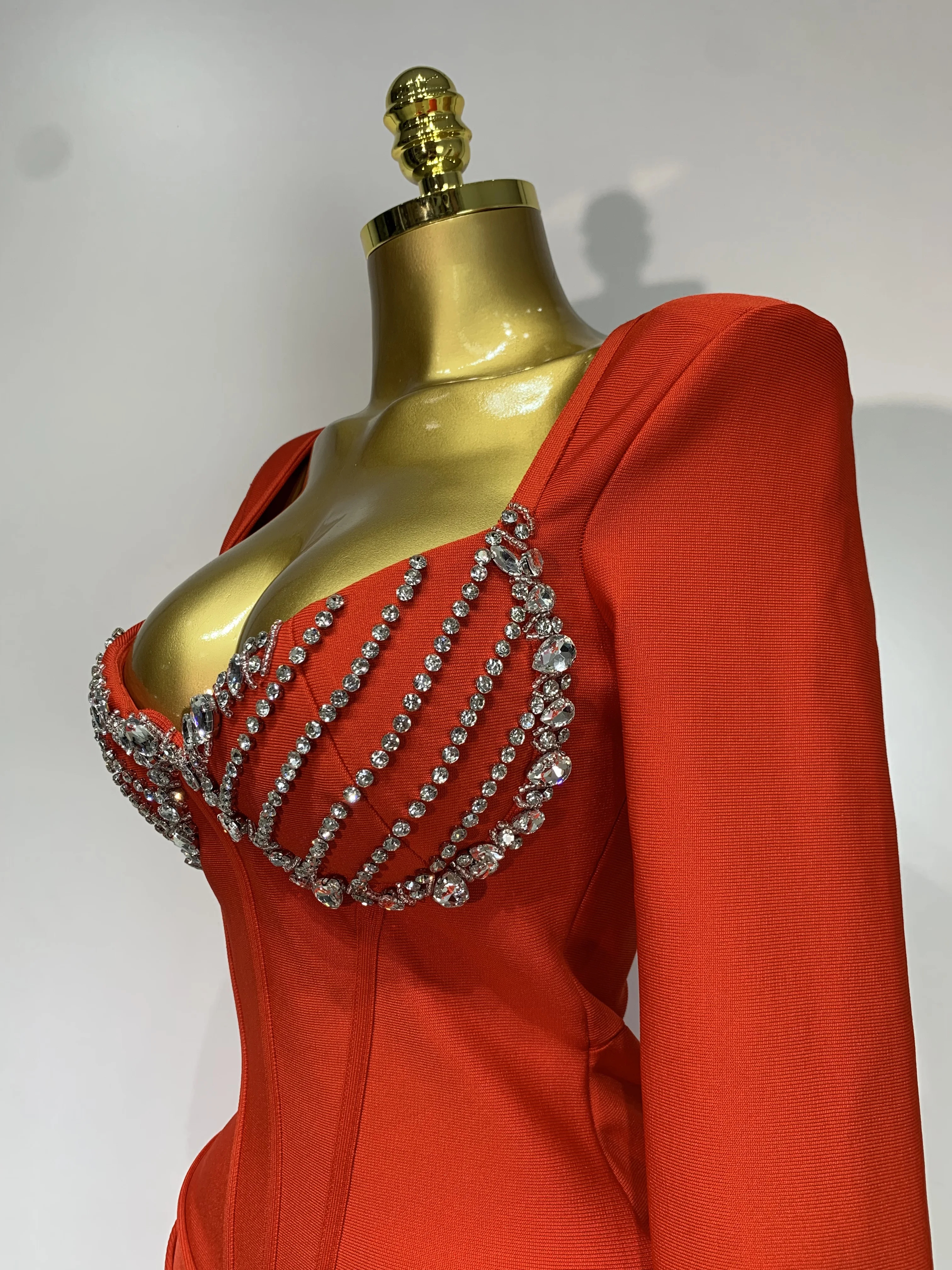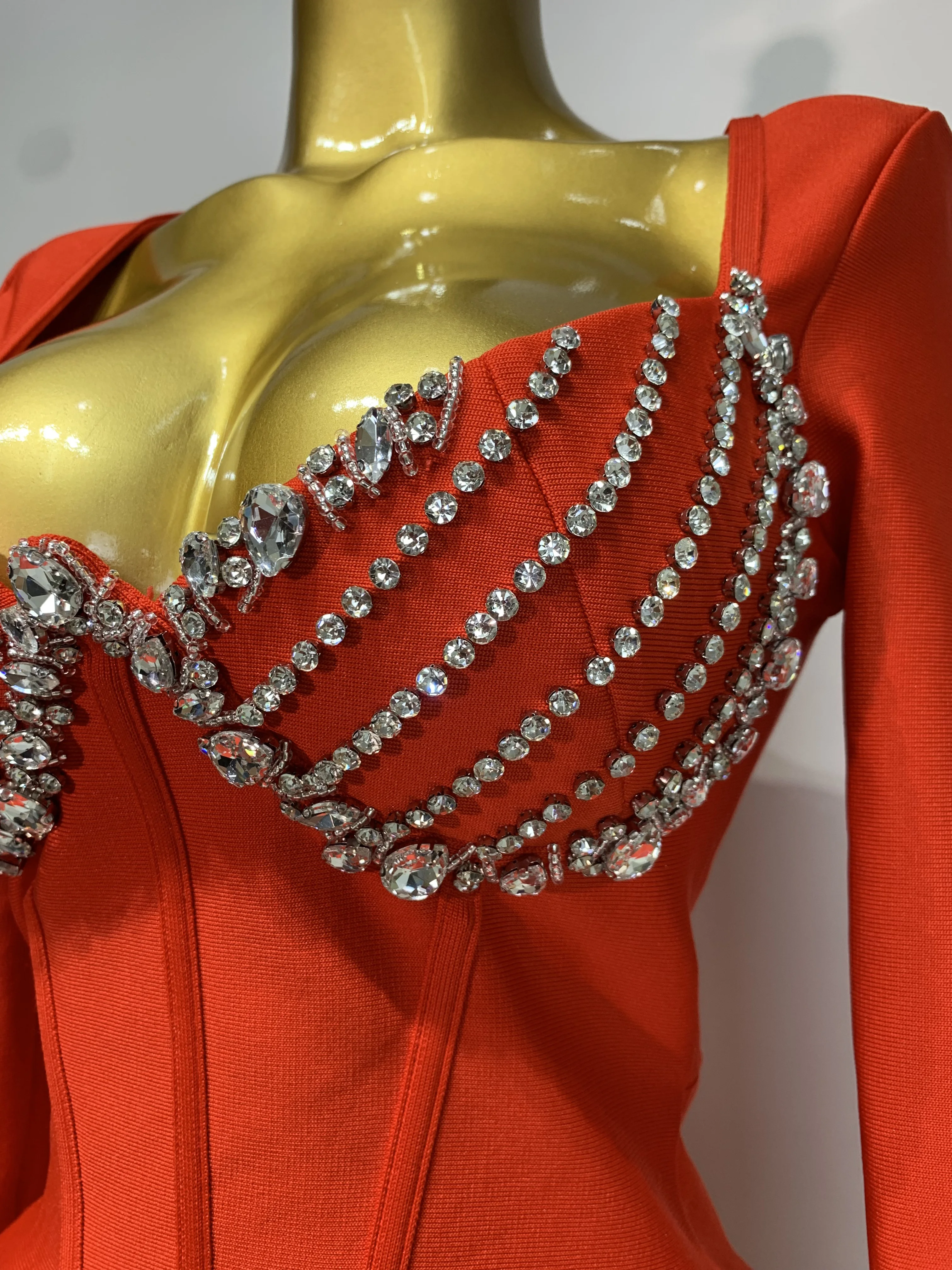 Abito aderente a maniche lunghe con fasciatura di diamanti scintillanti di lusso sexy da donna 2025 Abiti da compleanno eleganti per feste da sera per celebrità