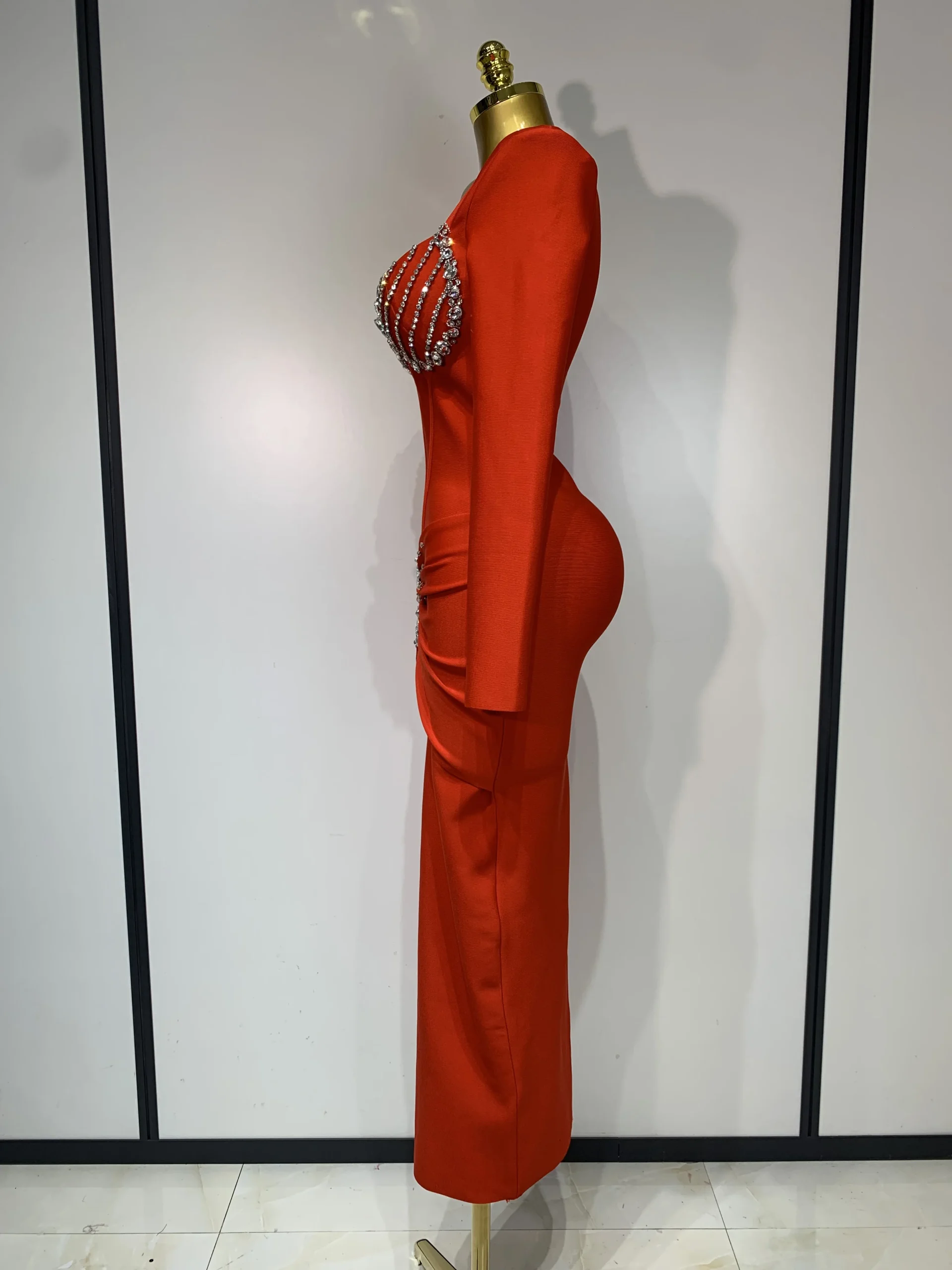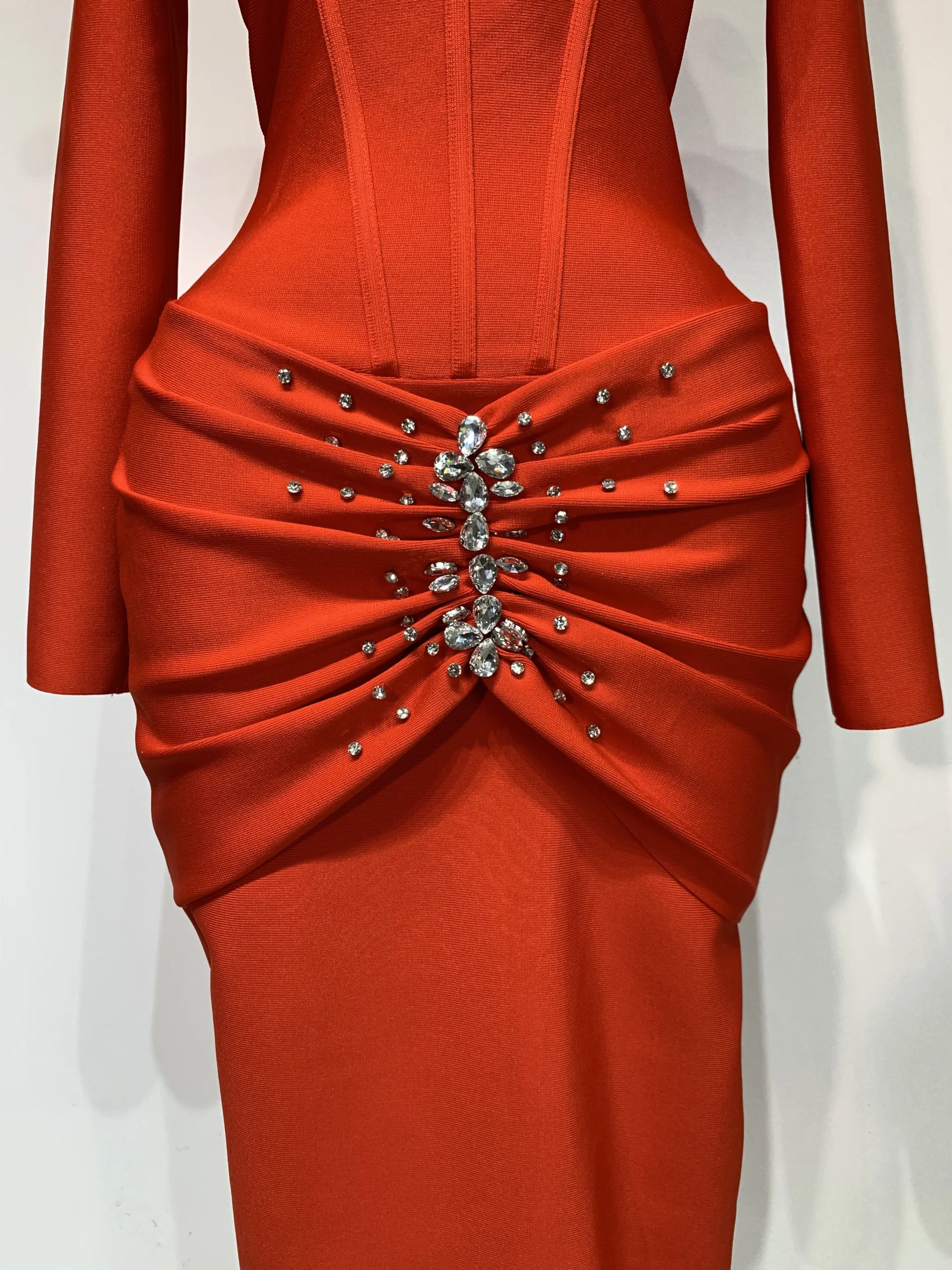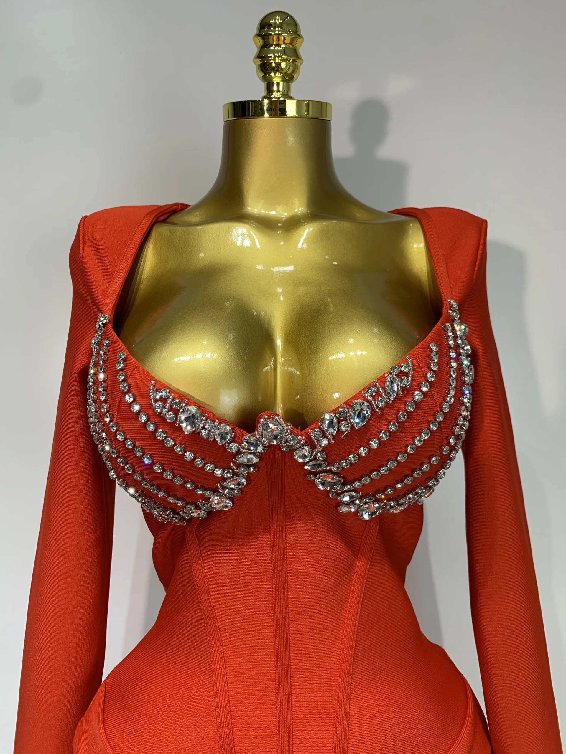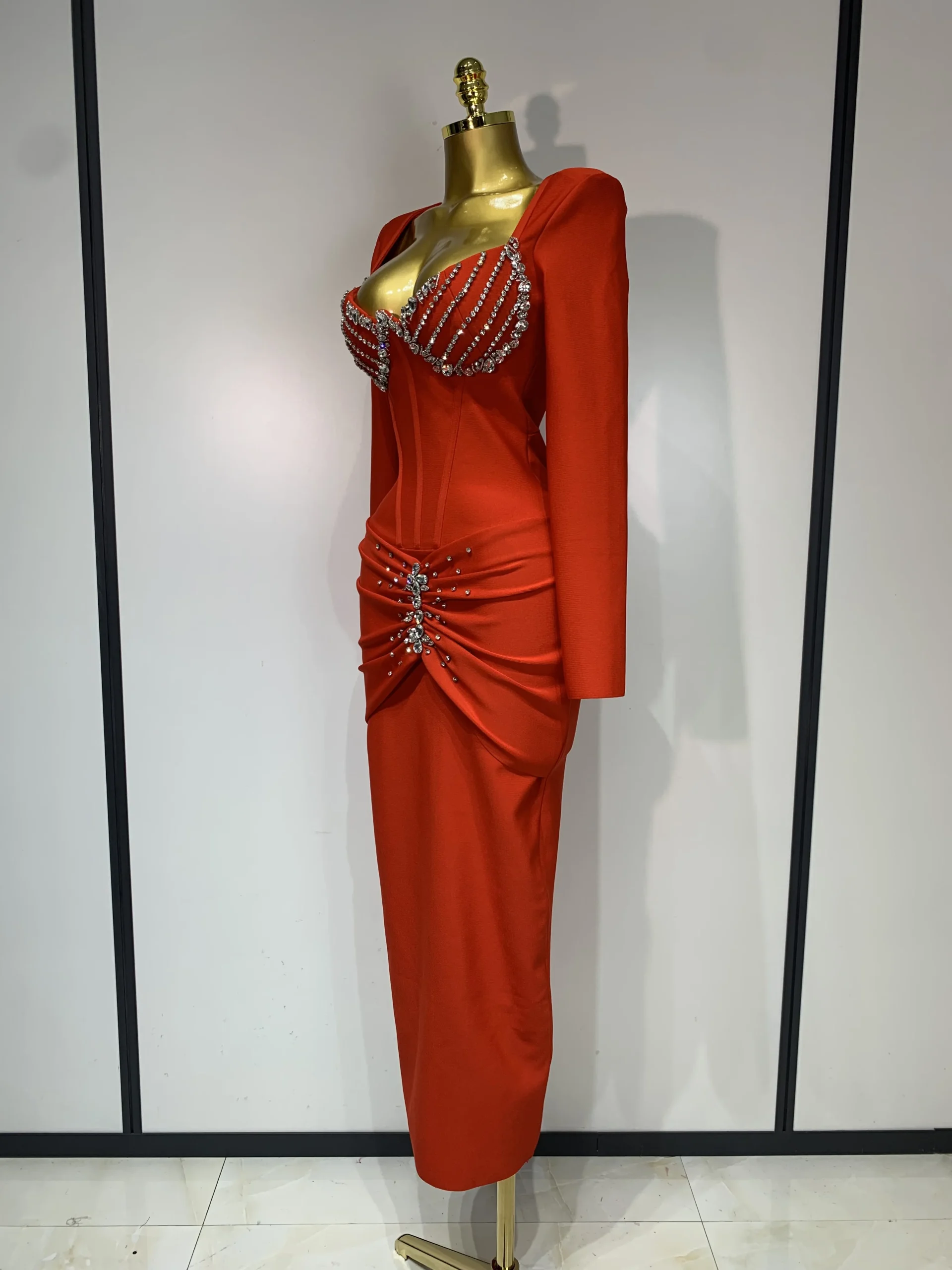 Abito aderente a maniche lunghe con fasciatura di diamanti scintillanti di lusso sexy da donna 2025 Abiti da compleanno eleganti per feste da sera per celebrità