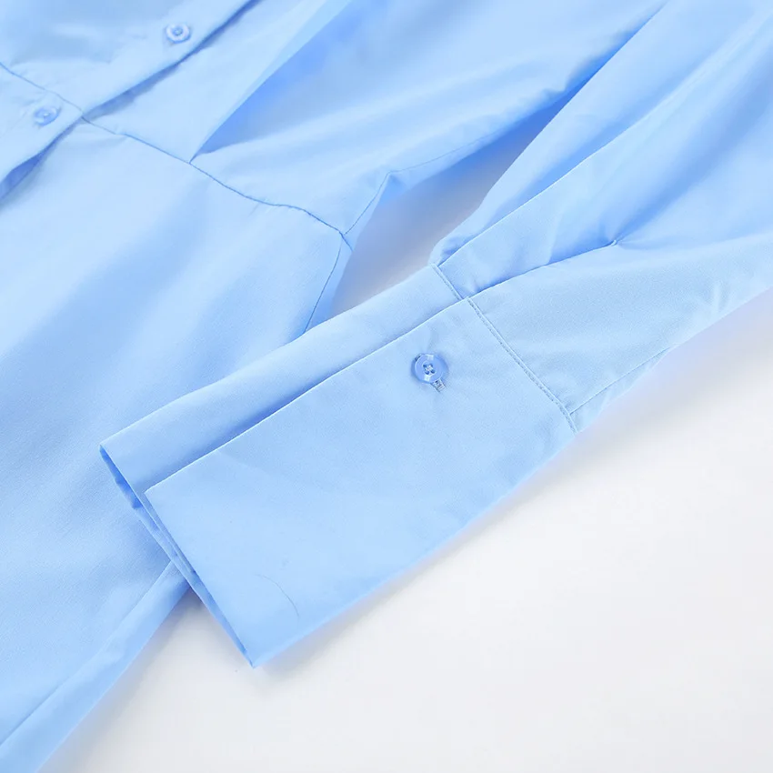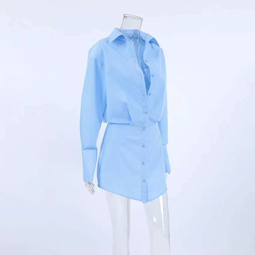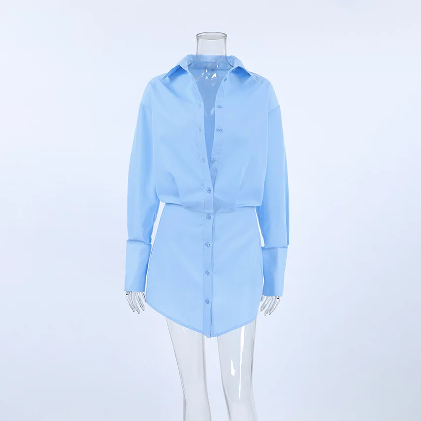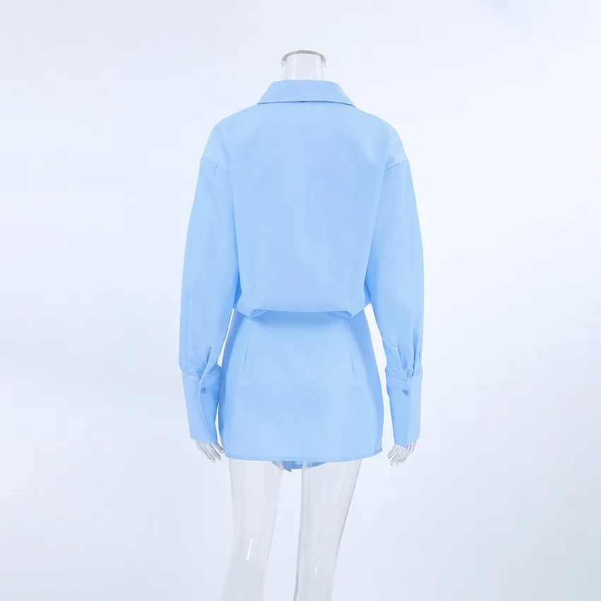 Abito camicia blu moda donna 2024 elegante mini abiti da donna da ufficio a maniche lunghe solidi abiti a matita sexy primaverili femminili