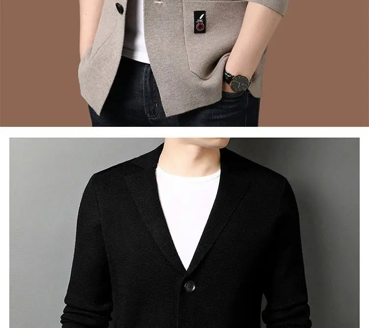 Abito cardigan lavorato a maglia da uomo Primavera Autunno Stile coreano Abito tinta unita alla moda Giacca casual Nuovo stile