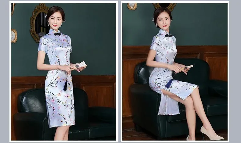 • Stile di media lunghezza:Questo abito Cheongsam di media lunghezza offre un look classico ma moderno, perfetto per varie occasioni, dagli eventi formali alle uscite informali.