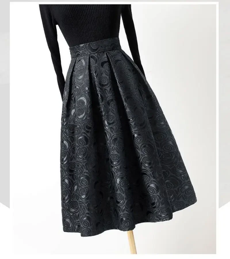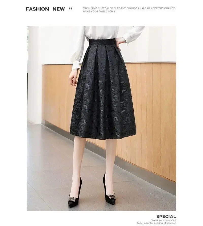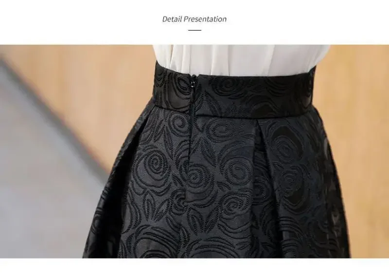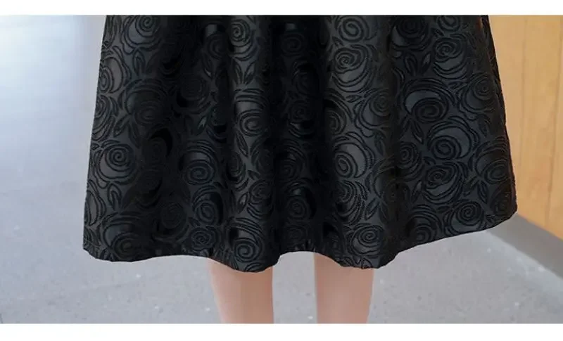 Abito da ballo elegante a vita alta vintage floreale rosa nera Gonna da donna allentata Gonne lunghe al ginocchio per abbigliamento donna Moda