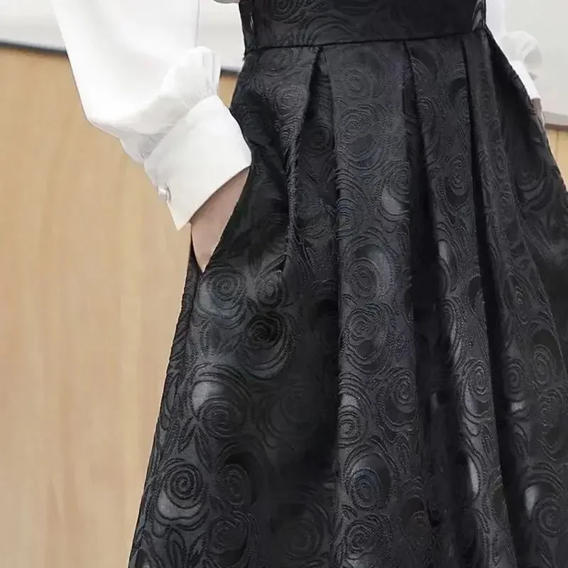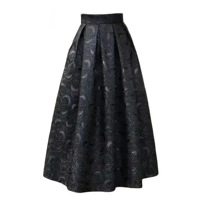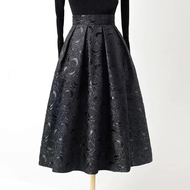 Abito da ballo elegante a vita alta vintage floreale rosa nera Gonna da donna allentata Gonne lunghe al ginocchio per abbigliamento donna Moda
