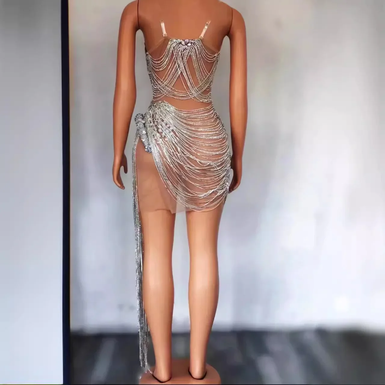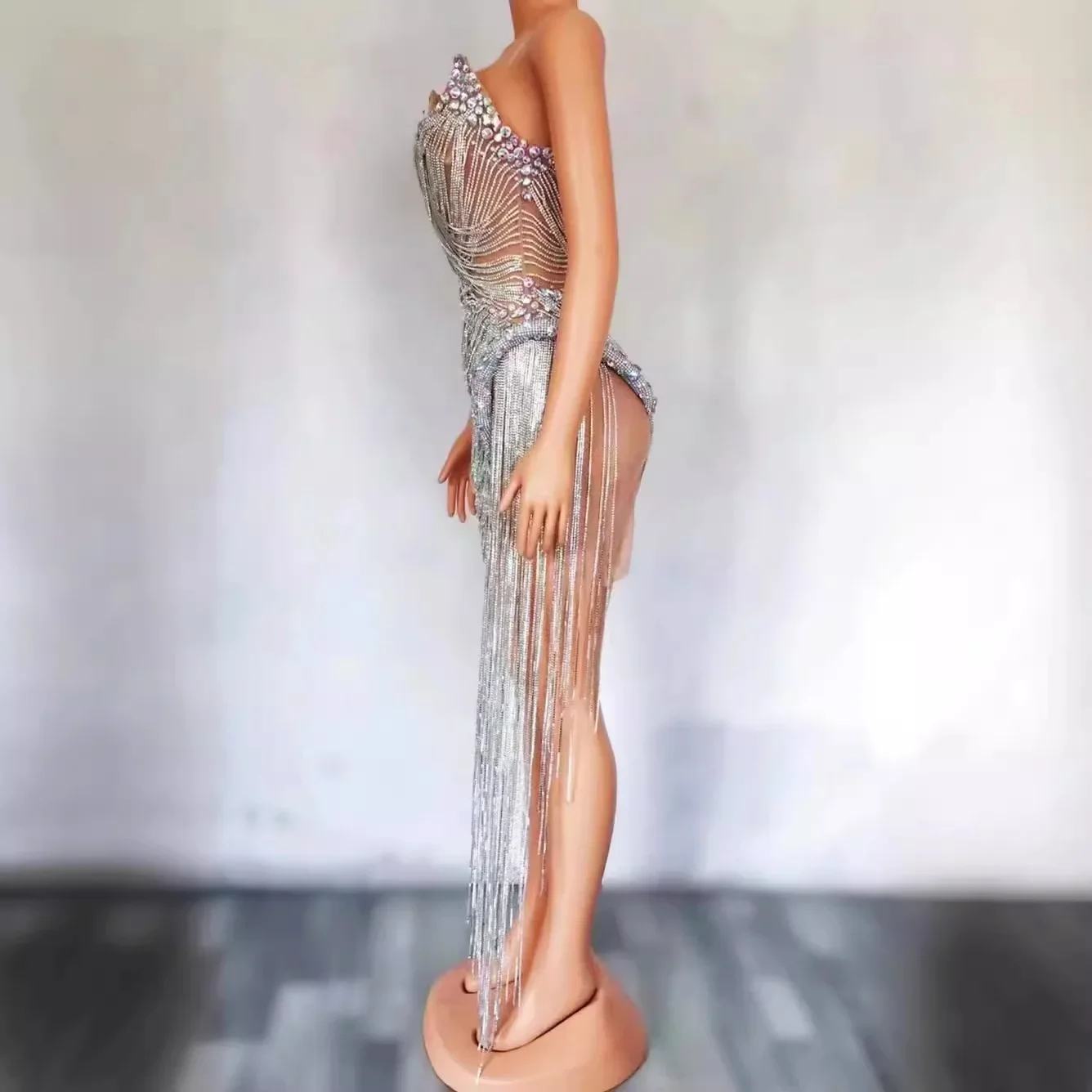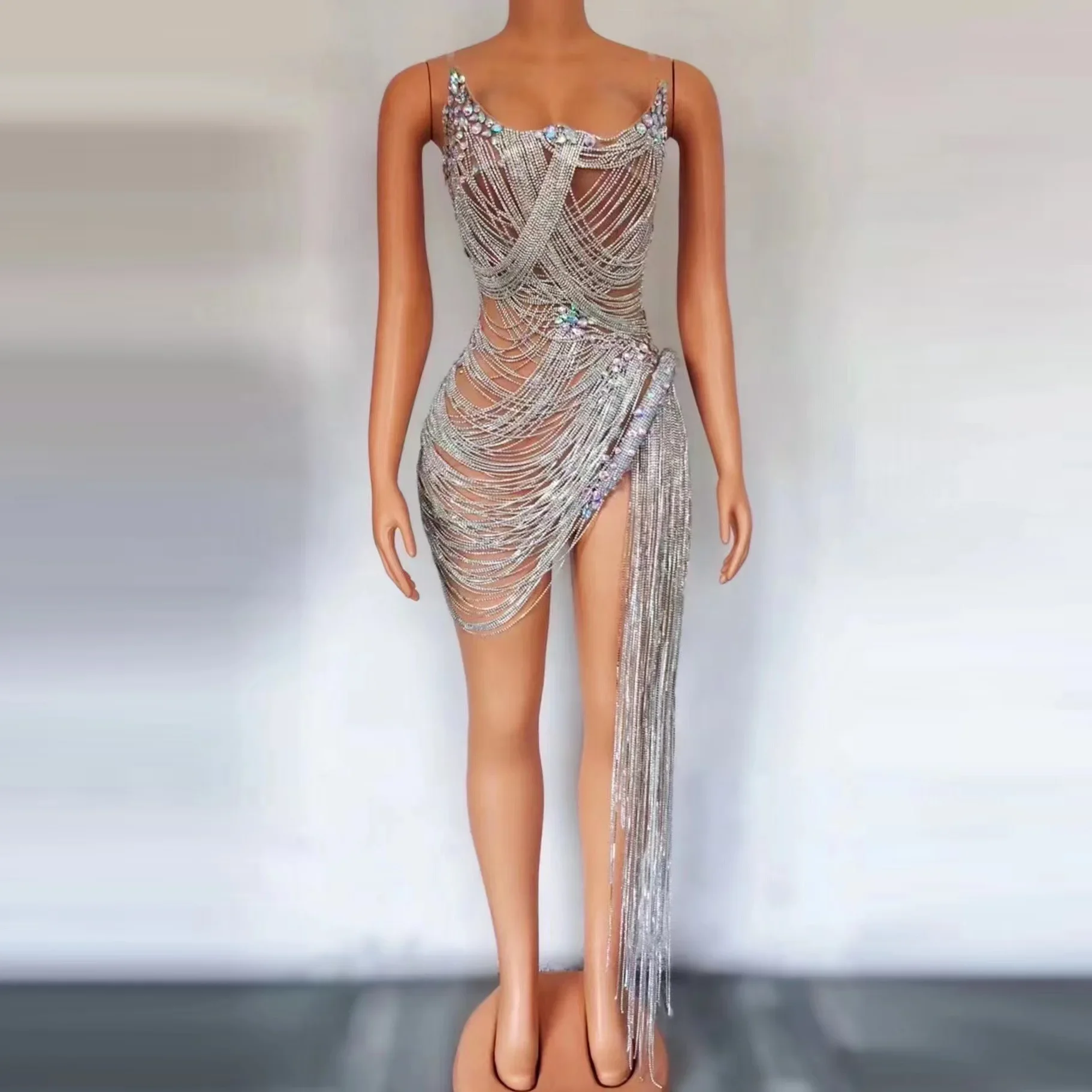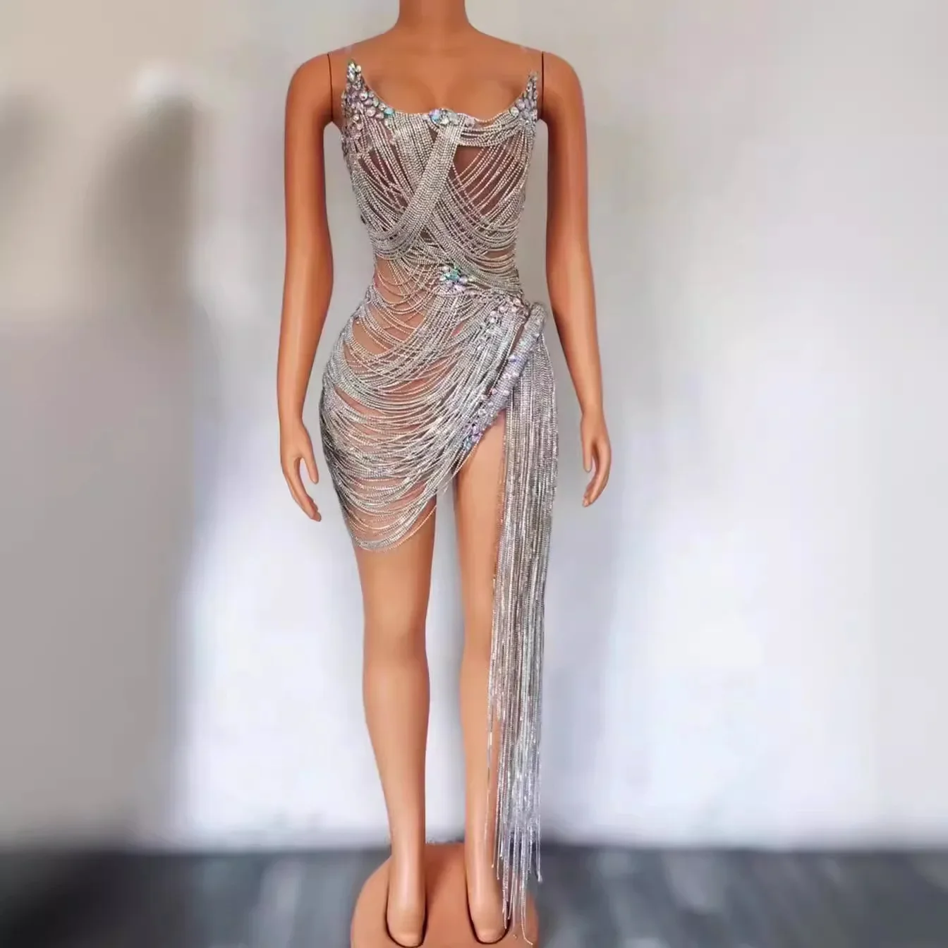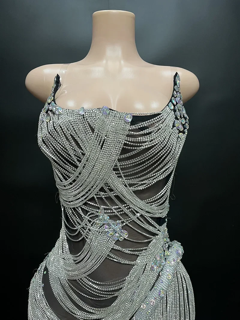 Abito da cerimonia nuziale sexy con strass Abito da donna per costumi di scena