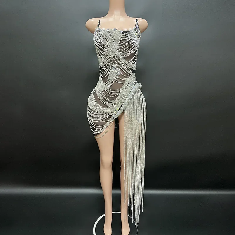 Abito da cerimonia nuziale sexy con strass Abito da donna per costumi di scena
