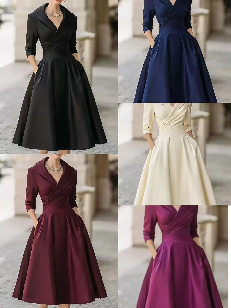 Primavera e autunno nuovi abiti da donna moda temperamento pendolarismo elegante tinta unita plus size abito con maniche a sette quarti