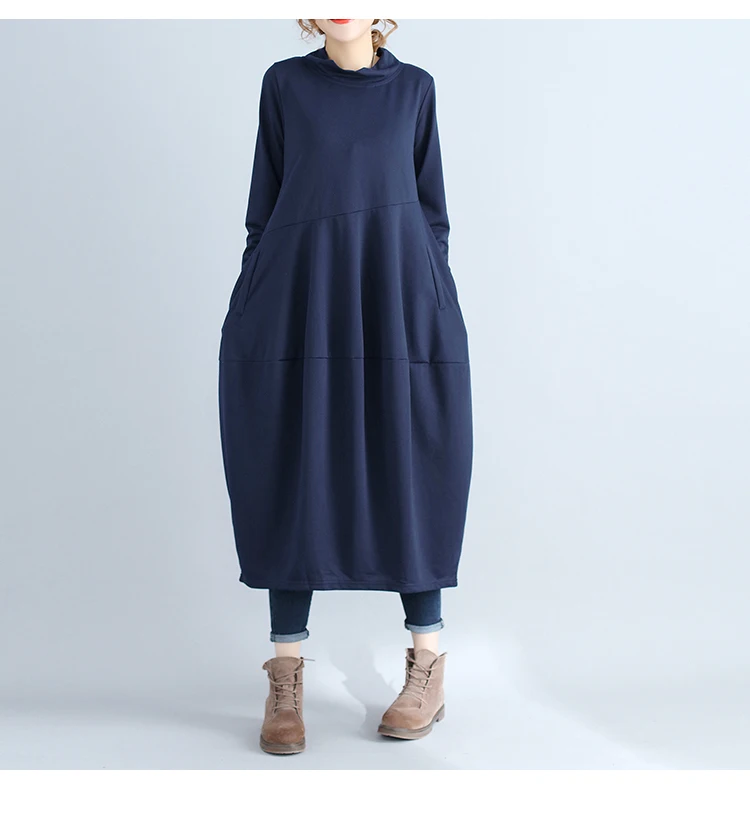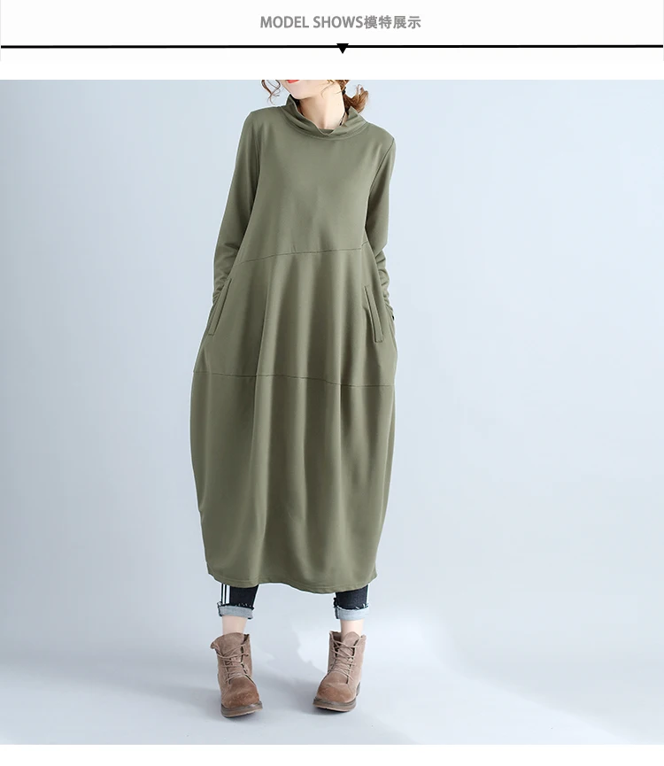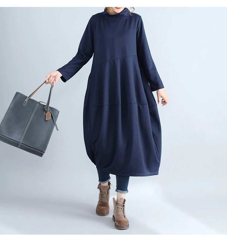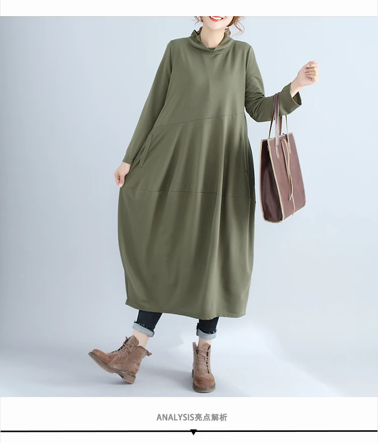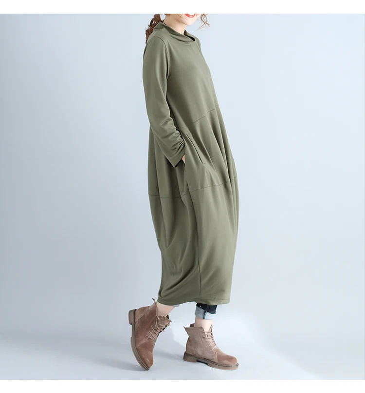 Abito da donna in tinta unita a maniche lunghe con collo alto nuovo arrivo autunnale