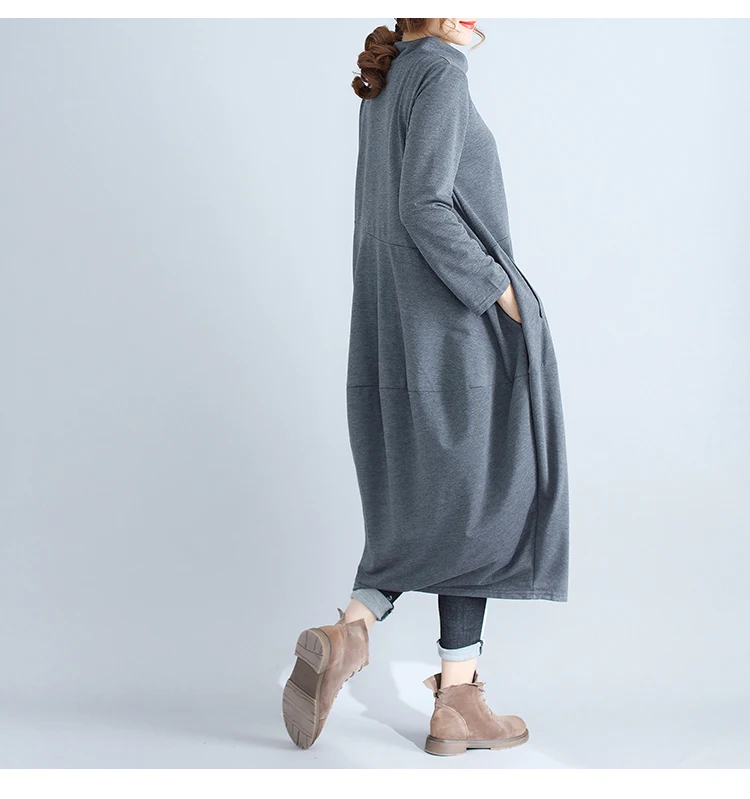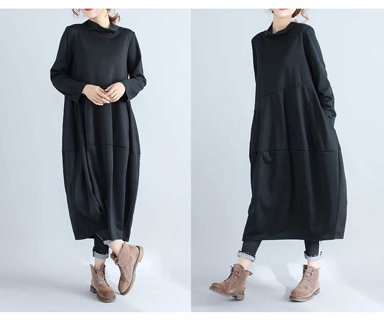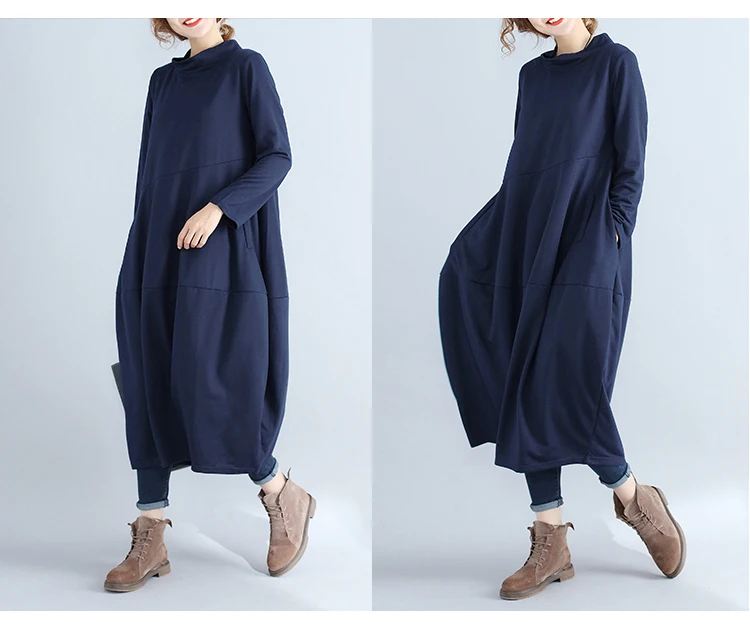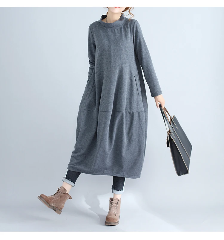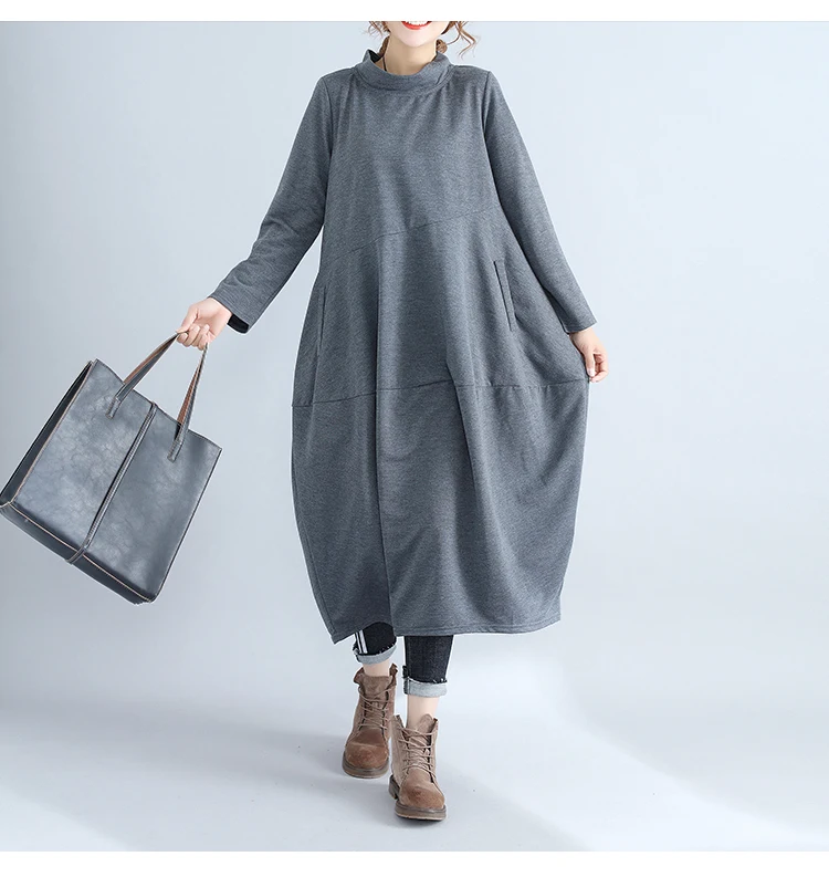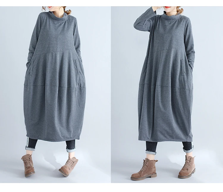 Abito da donna in tinta unita a maniche lunghe con collo alto nuovo arrivo autunnale