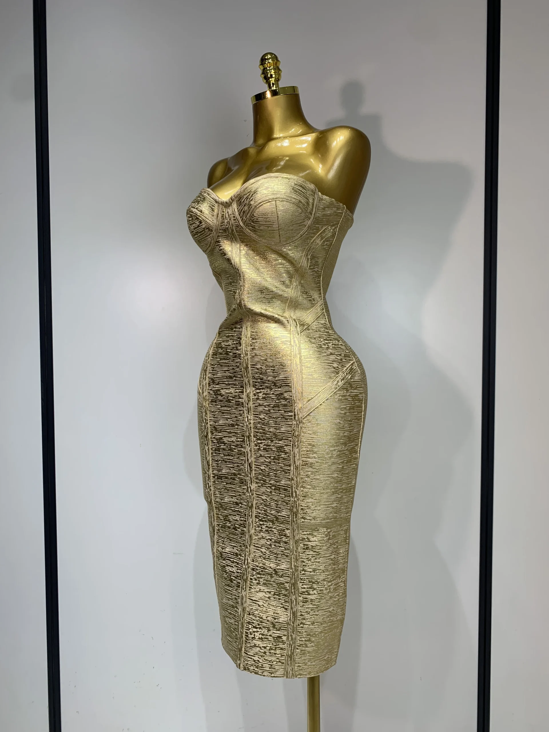 Abito da donna sexy con fasciatura aderente senza spalline in oro 2025 Moda Festeggia il vestito da cerimonia nuziale di compleanno di lusso per feste serali 1Abito da donna sexy con fasciatura aderente senza spalline in oro 2025 Moda Festeggia il vestito da cerimonia nuziale di compleanno di lusso per feste serali