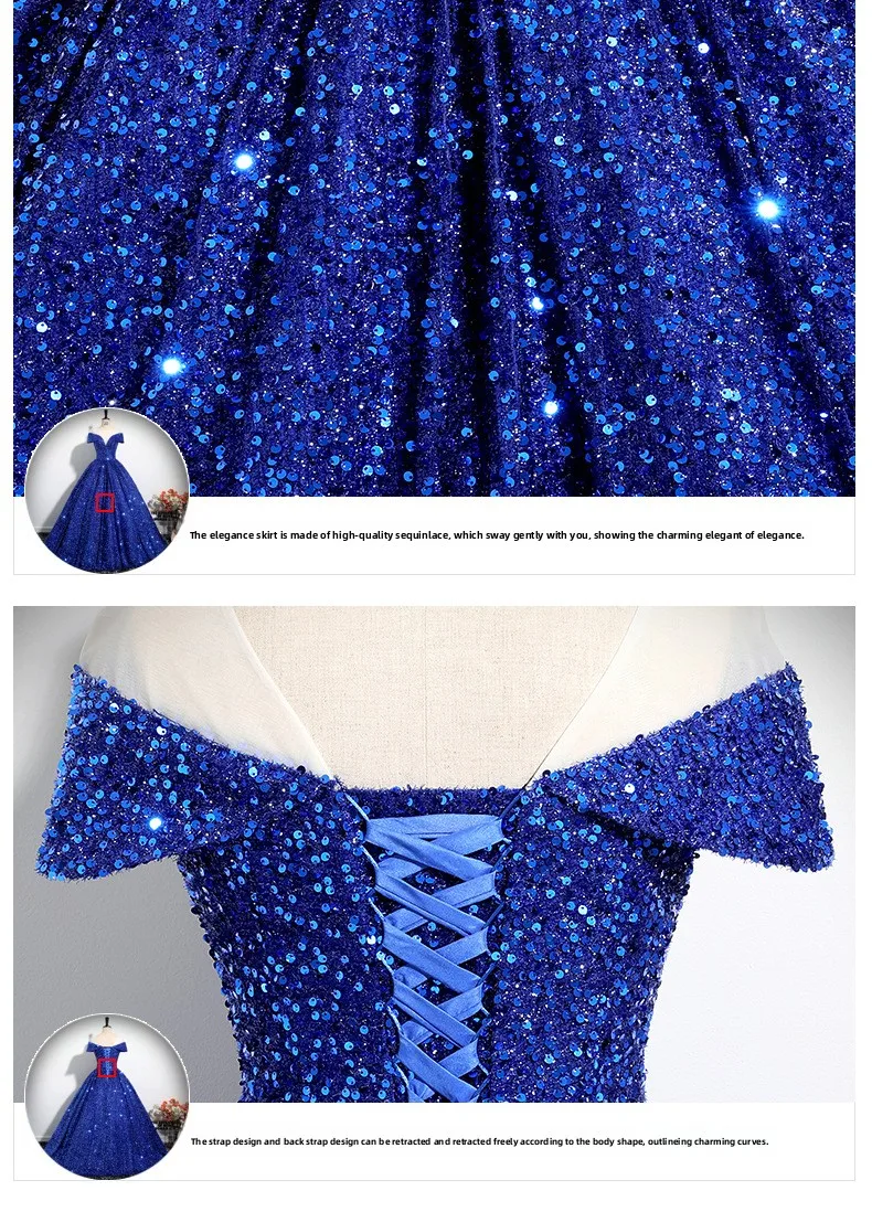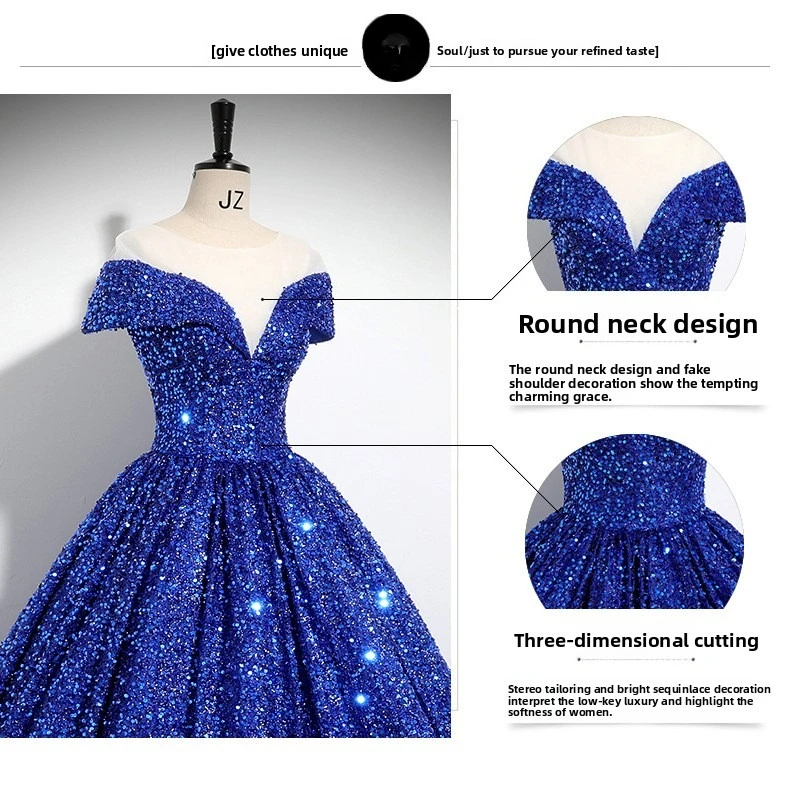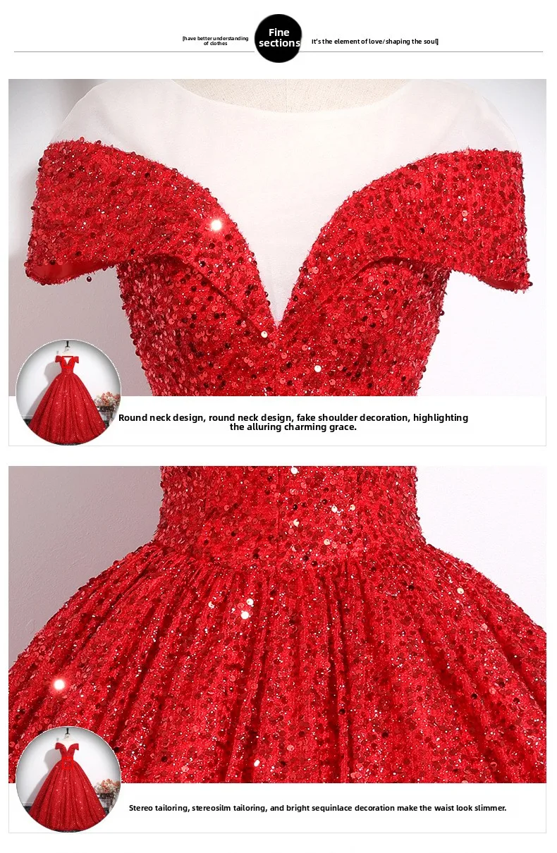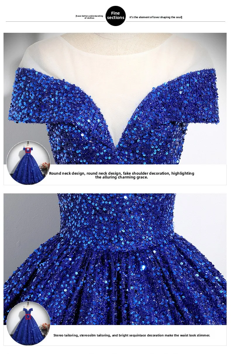 Abito da sera monospalla, paillettes da donna, nuovo costume da spettacolo solista sul palco del 2025, incontro annuale dell’esame d’arte vocale, gonna soffice