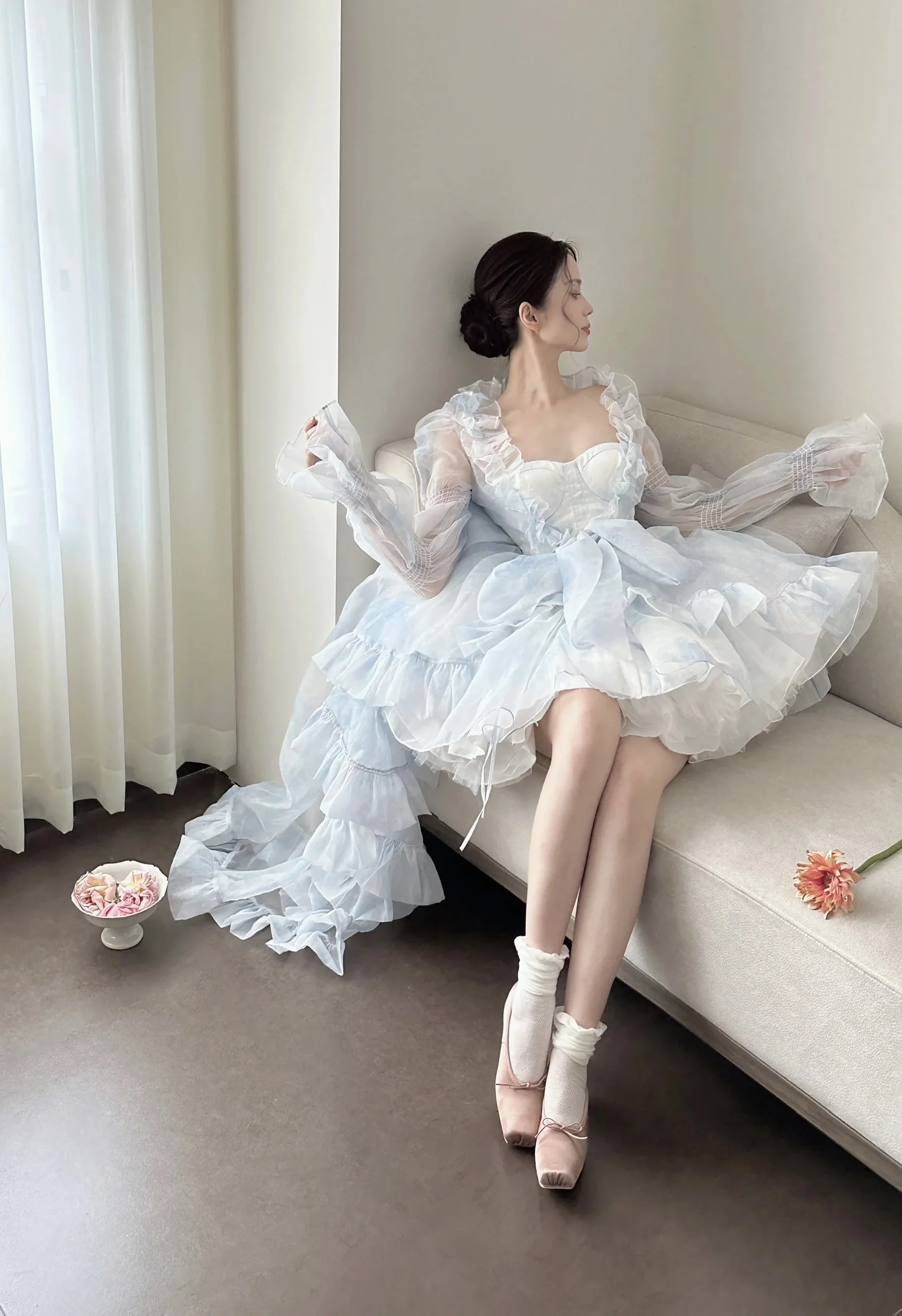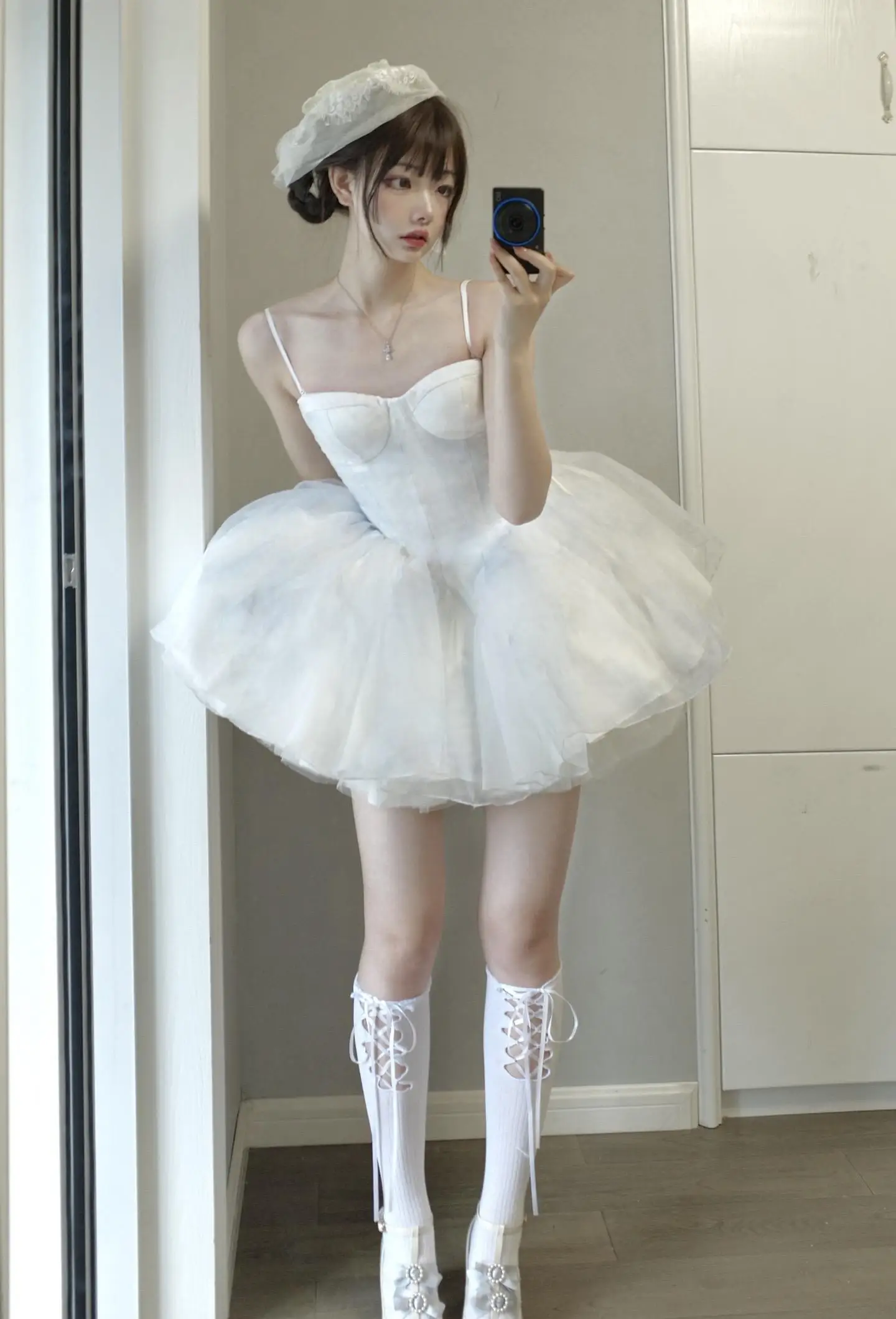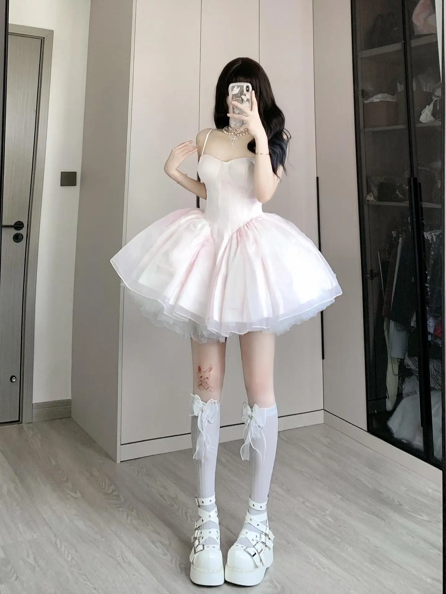 Abito da sposa a fiori in stile francese Lolita Sweet Girl Women Fairy Tube Top Sling Dress con cardigan lungo Abito da principessa di compleanno