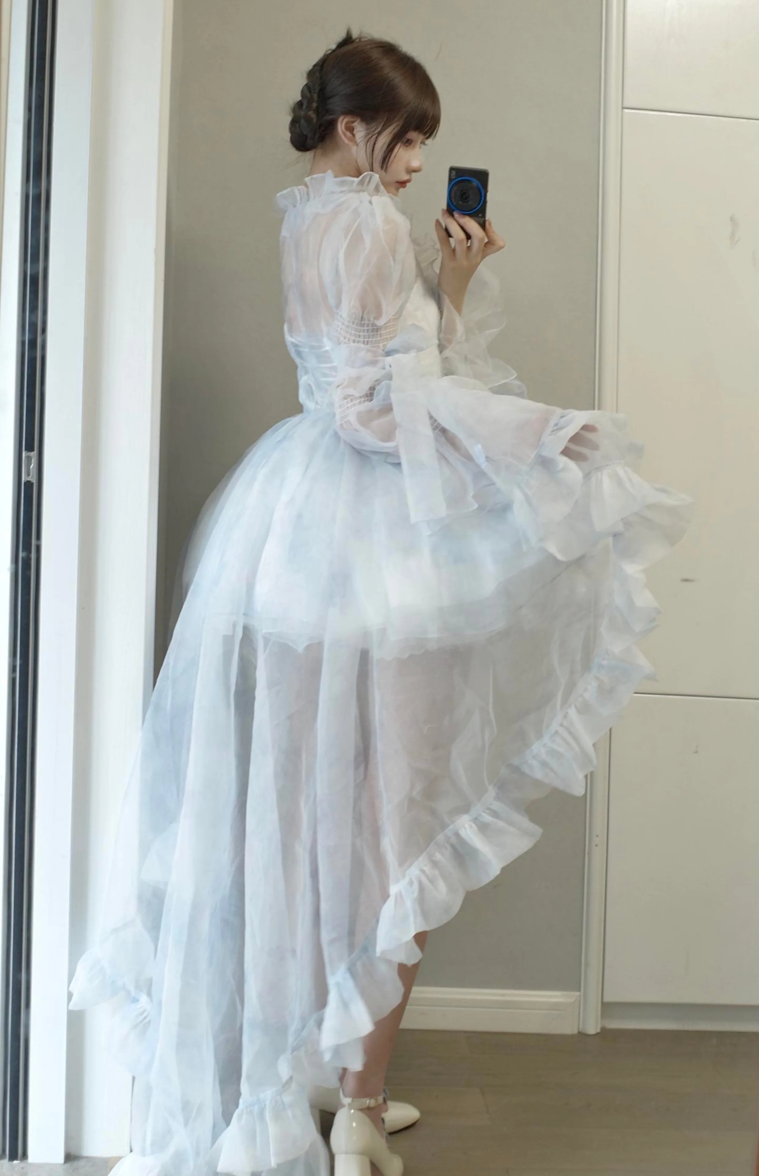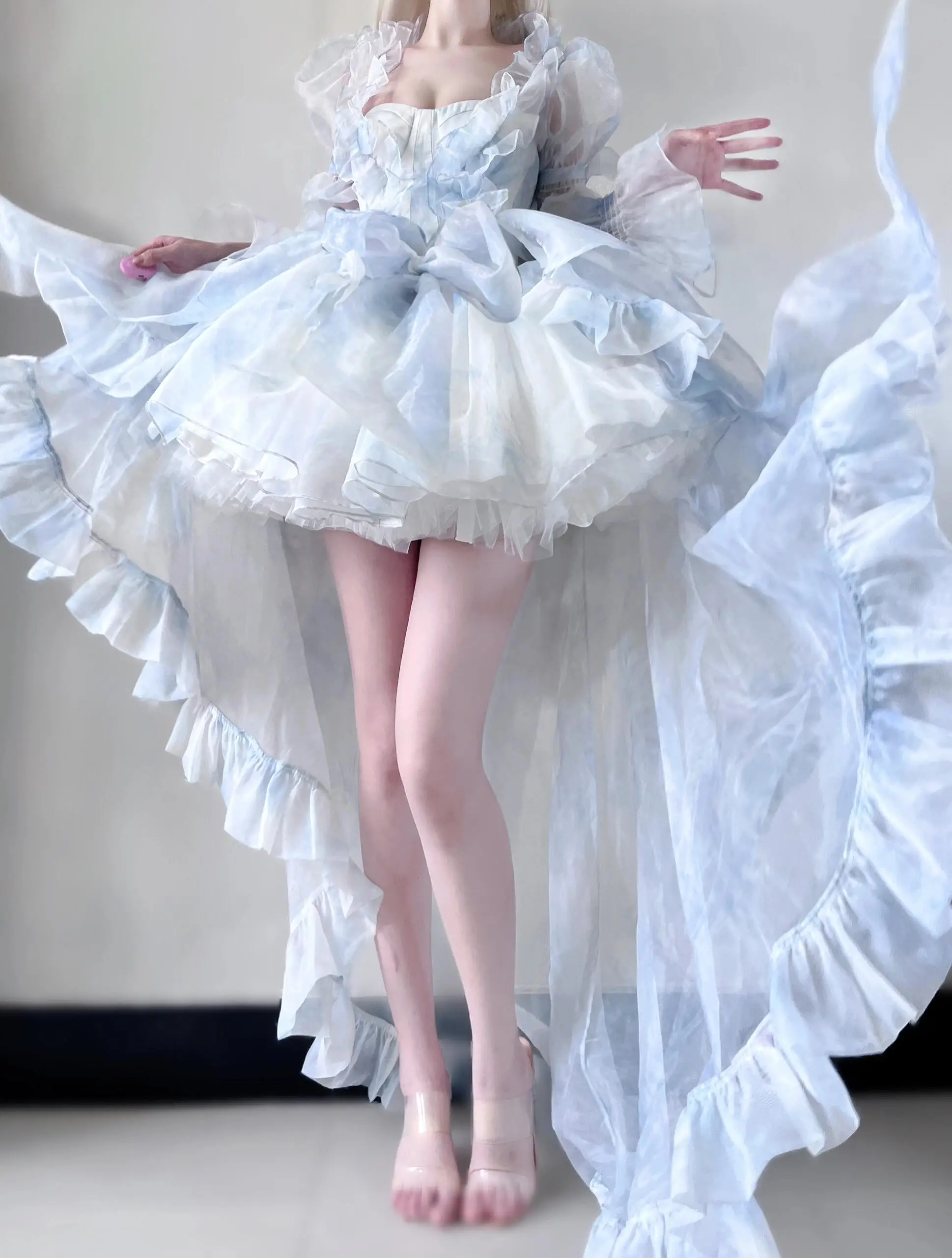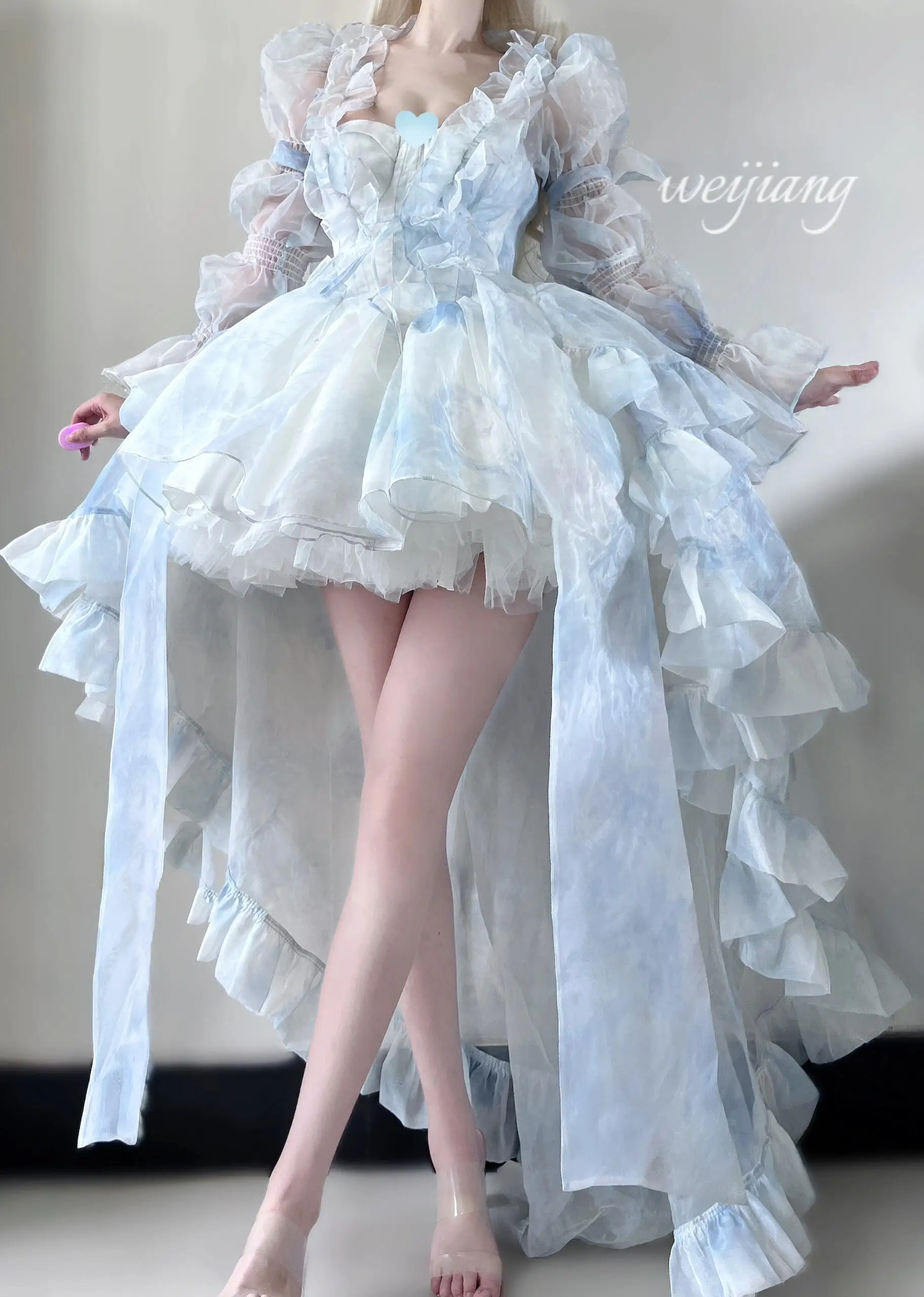 Abito da sposa a fiori in stile francese Lolita Sweet Girl Women Fairy Tube Top Sling Dress con cardigan lungo Abito da principessa di compleanno