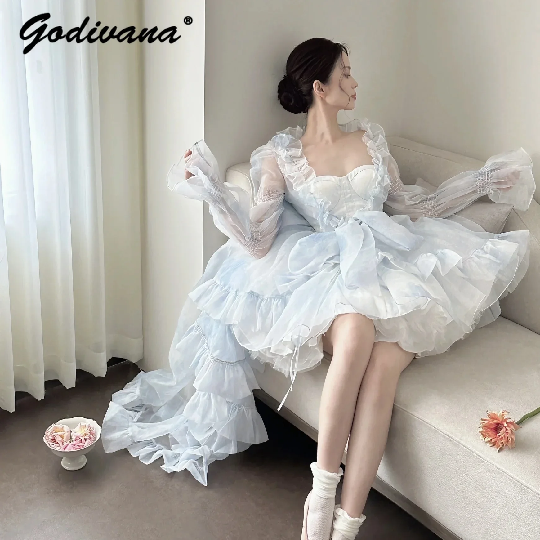 Abito da sposa a fiori in stile francese Lolita Sweet Girl Women Fairy Tube Top Sling Dress con cardigan lungo Abito da principessa di compleanno