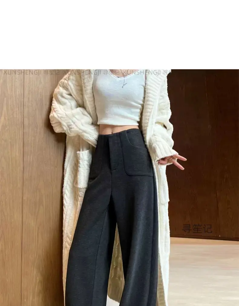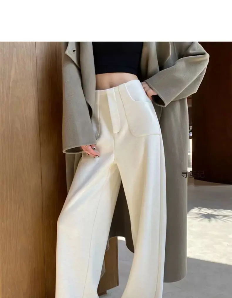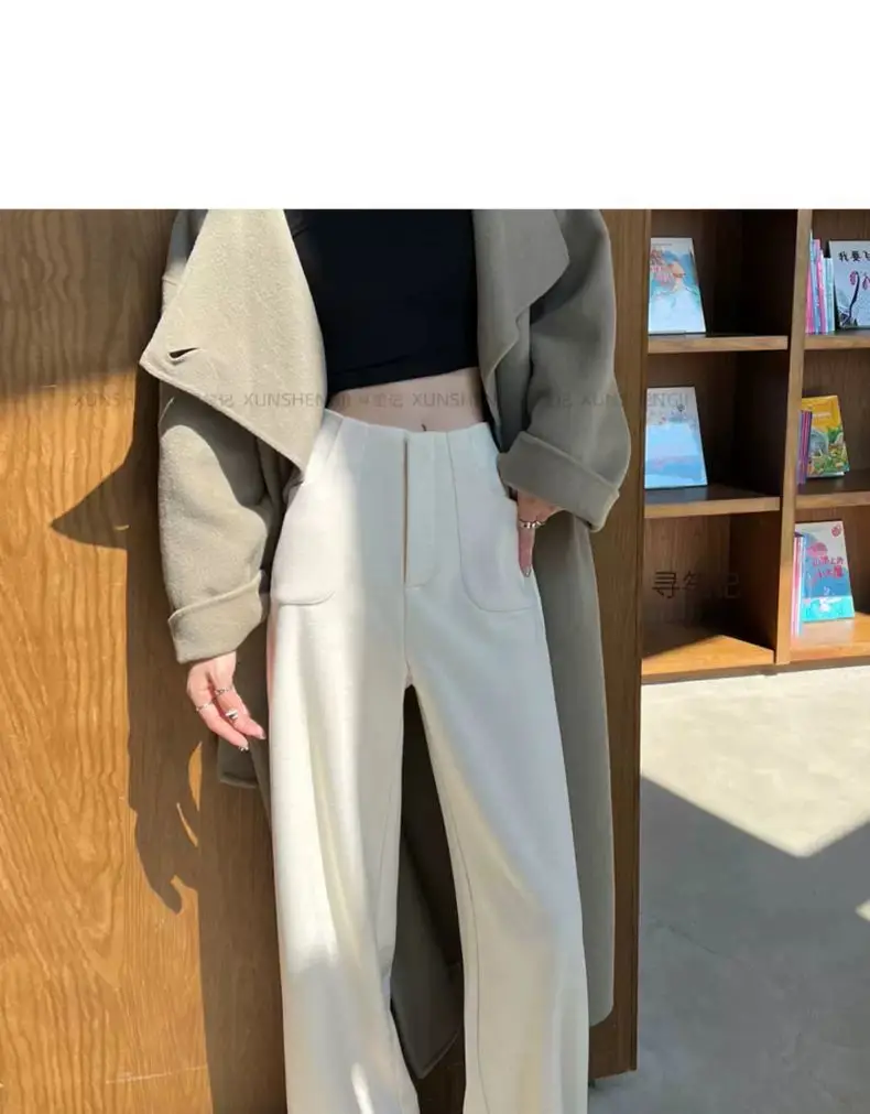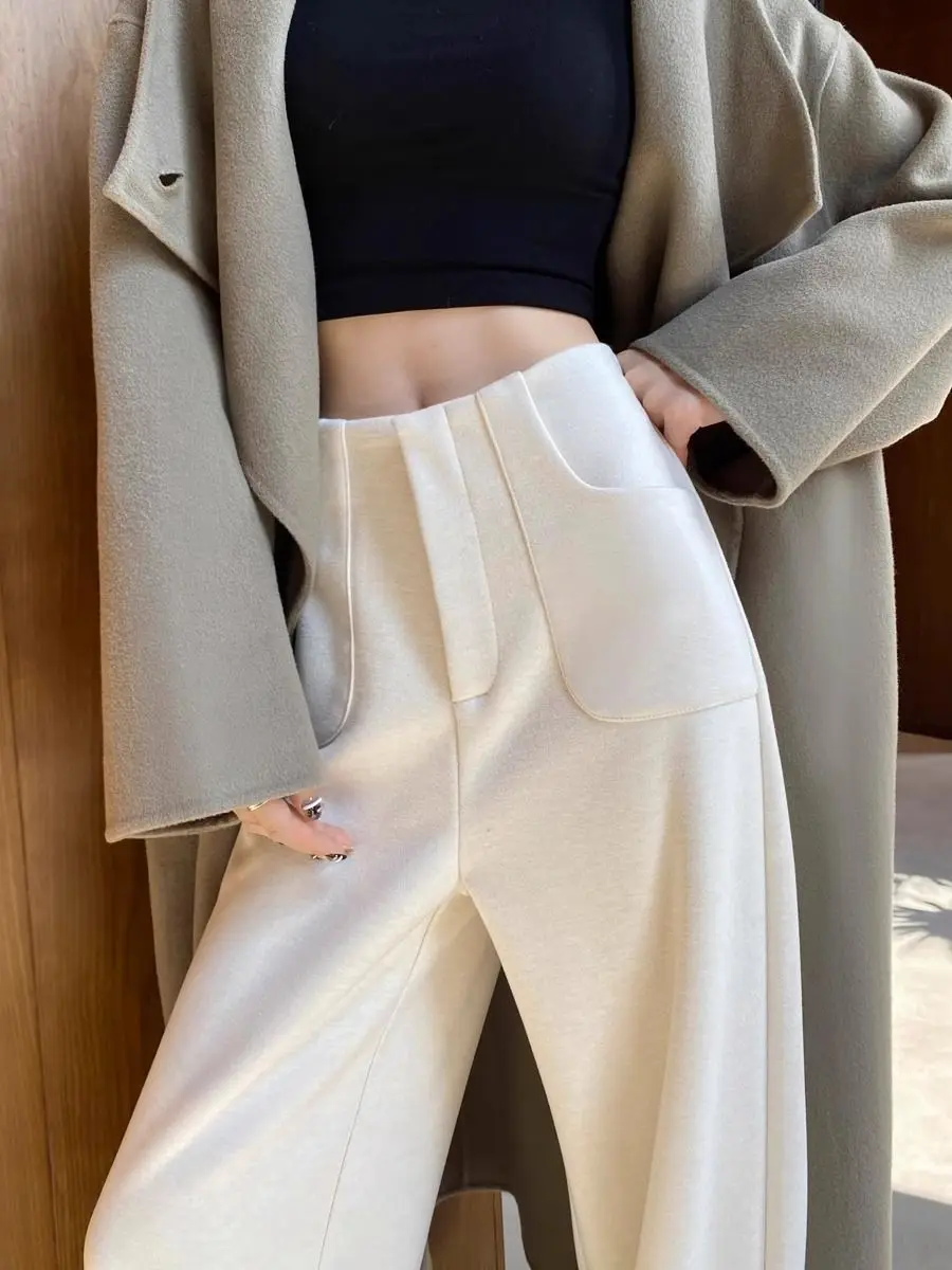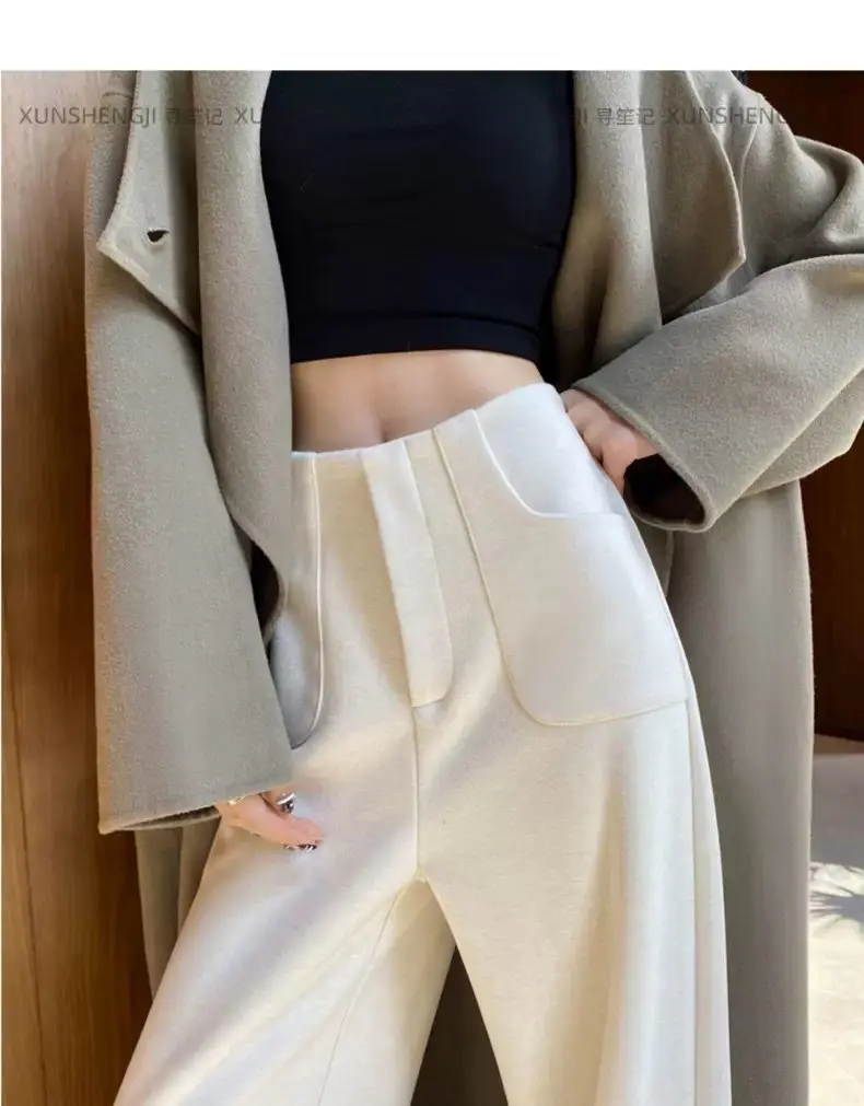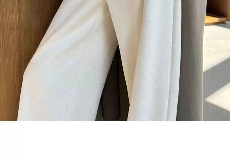 Abito di lana a vita alta ispessito autunno inverno da donna bianco a gamba larga Pantaloni dritti casual alla moda