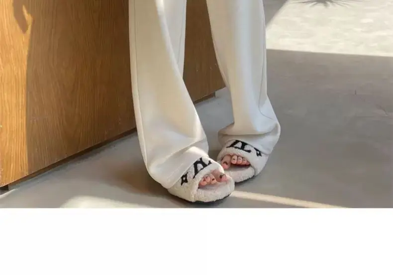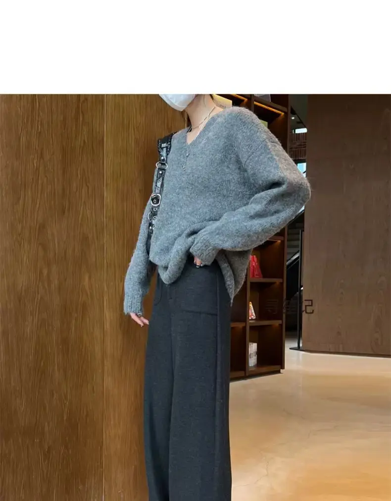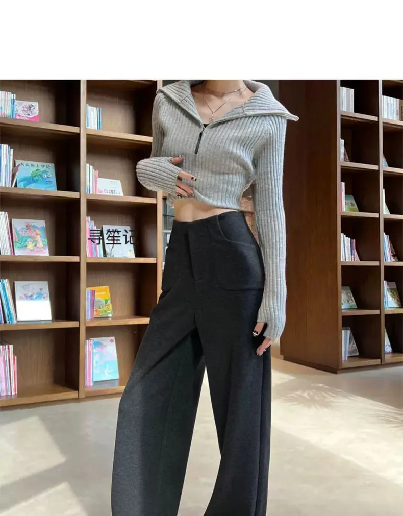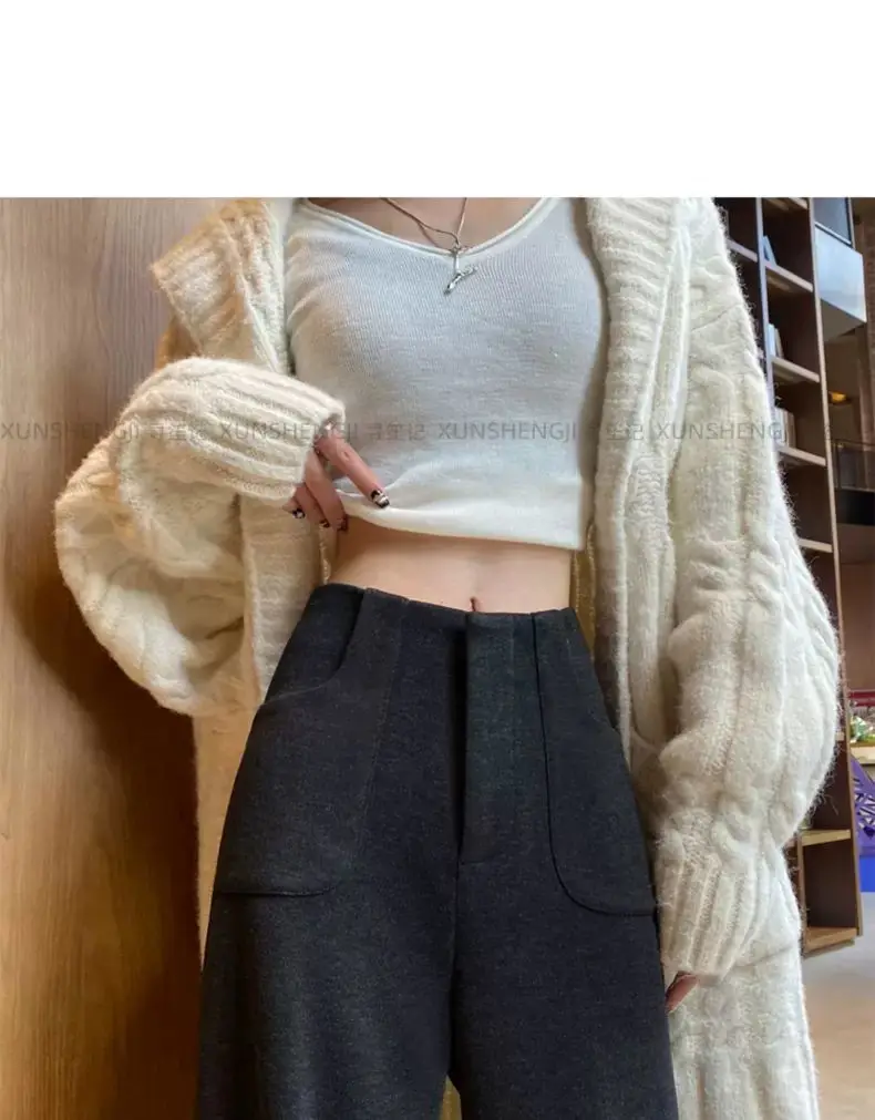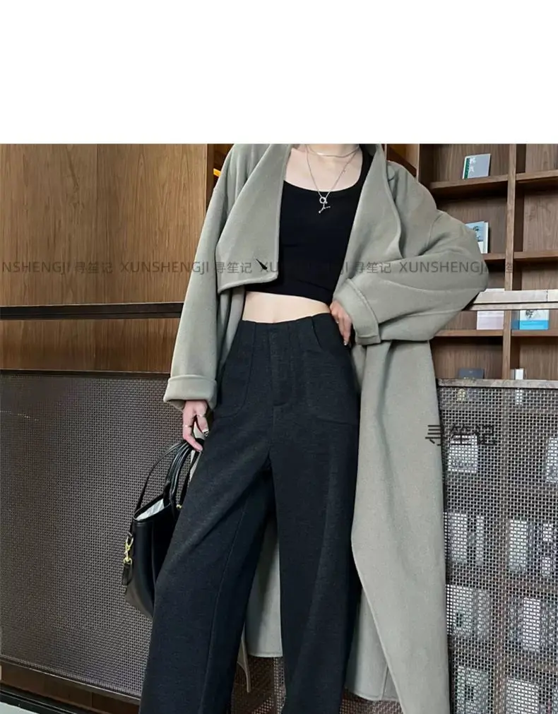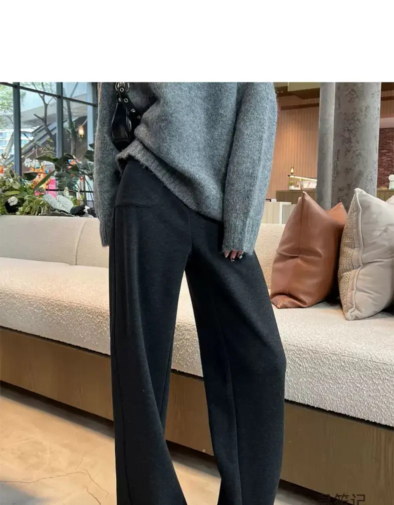 Abito di lana a vita alta ispessito autunno inverno da donna bianco a gamba larga Pantaloni dritti casual alla moda