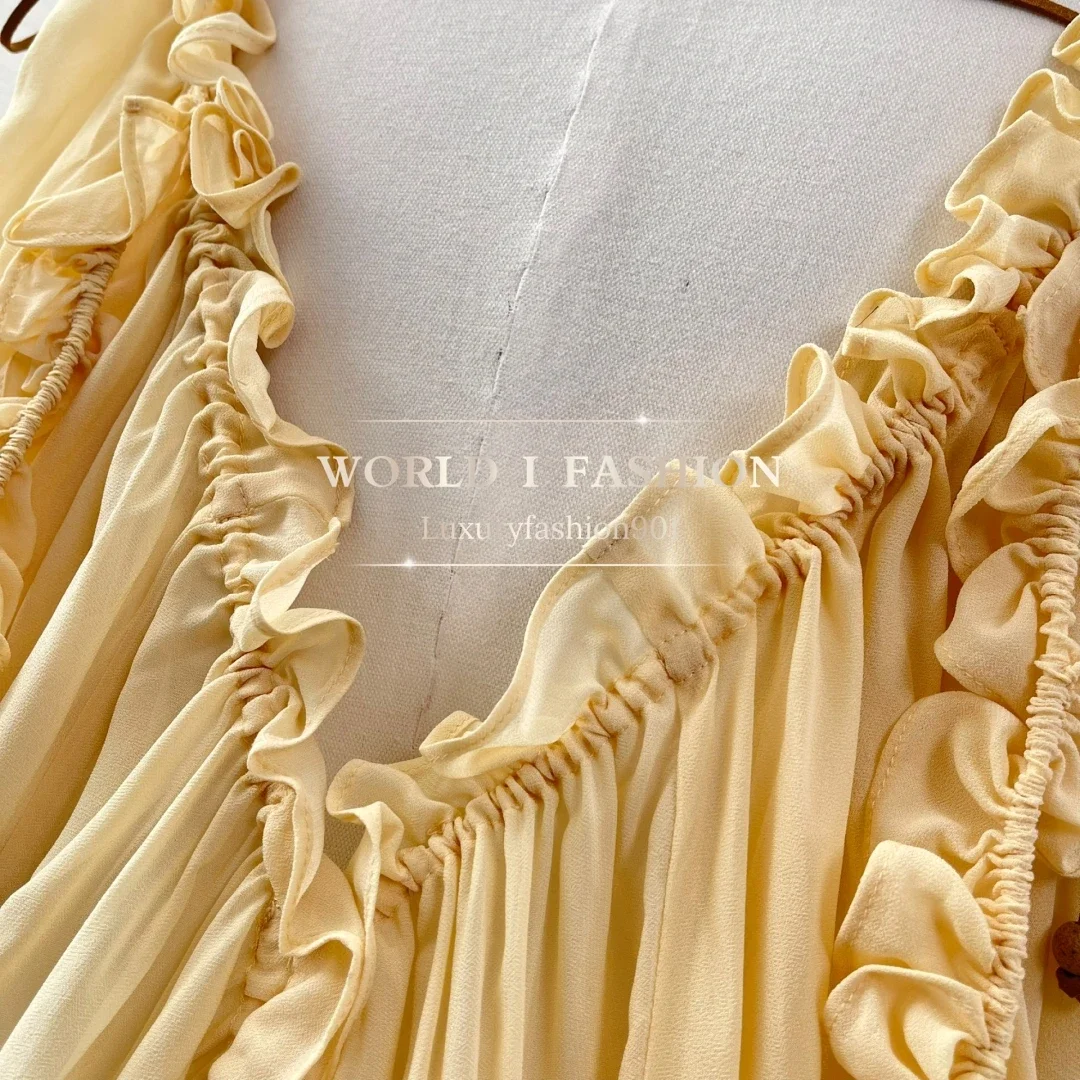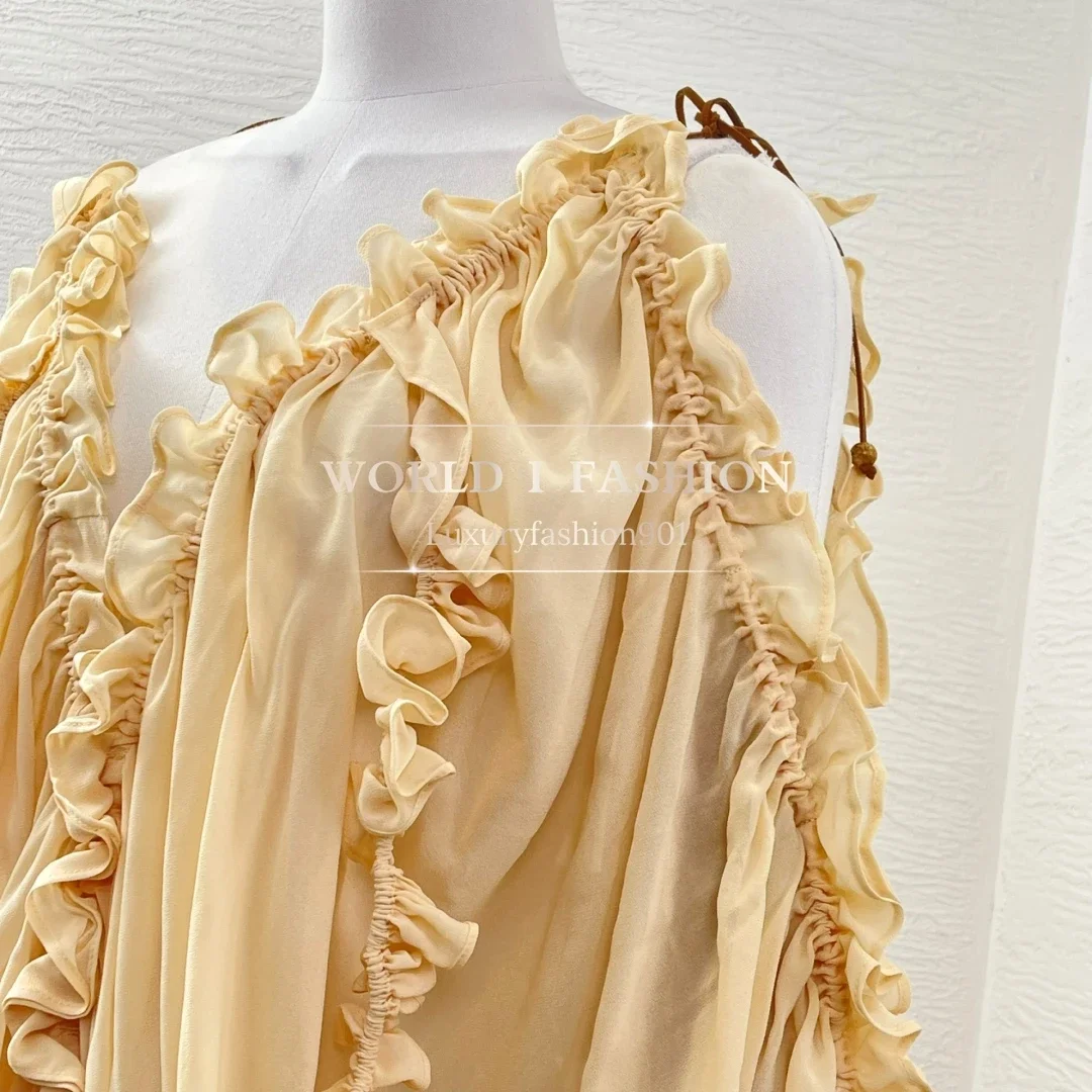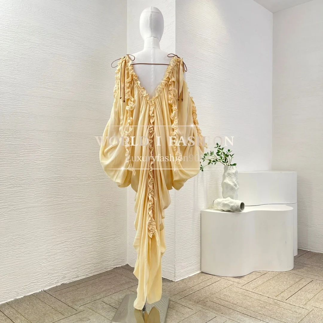 Abito estivo da donna elegante 2026 per le vacanze Abiti asimmetrici a maniche lunghe con volant giallo vintage dal design di lusso australiano
