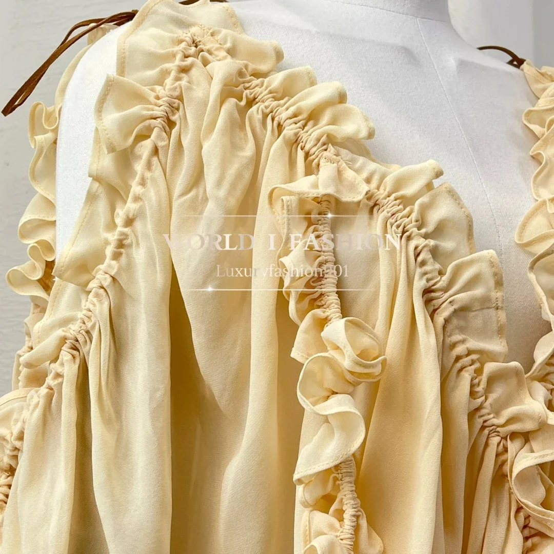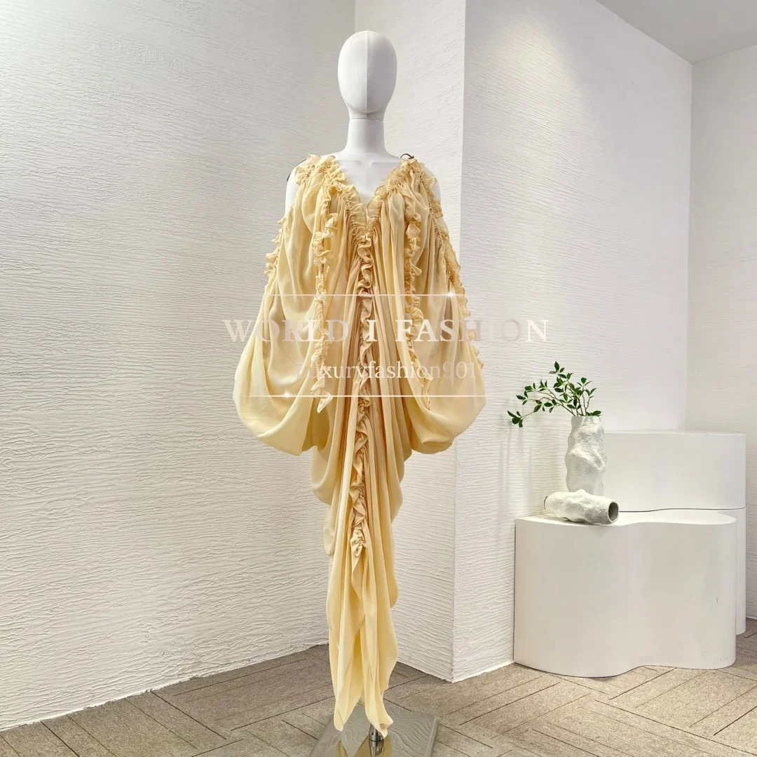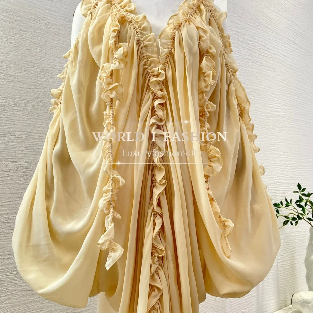 Abito estivo da donna elegante 2026 per le vacanze Abiti asimmetrici a maniche lunghe con volant giallo vintage dal design di lusso australiano