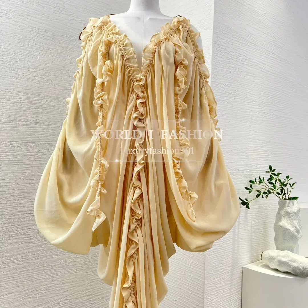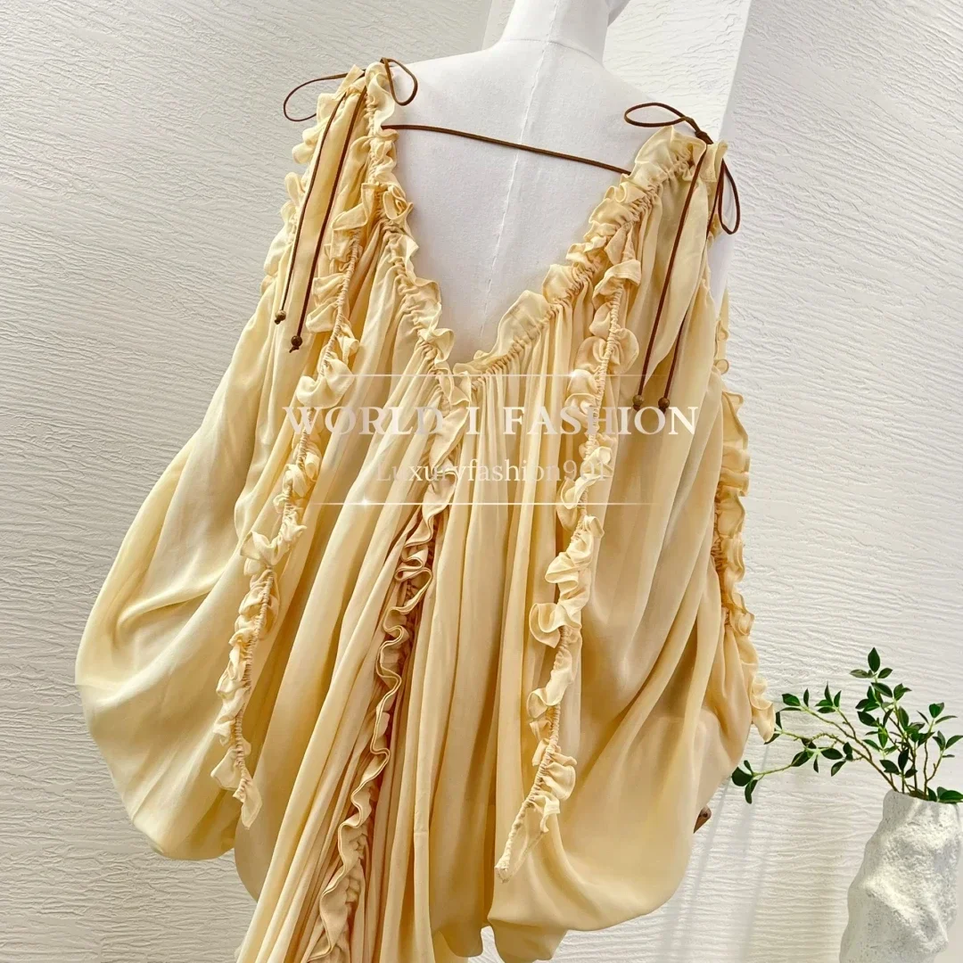 Abito estivo da donna elegante 2026 per le vacanze Abiti asimmetrici a maniche lunghe con volant giallo vintage dal design di lusso australiano