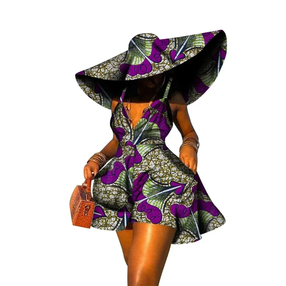 Abito estivo da donna tuta con stampa africana Sexy senza maniche con scollo a v pantalone corto con cappello moda abbigliamento africano abbigliamento donna WY8844
