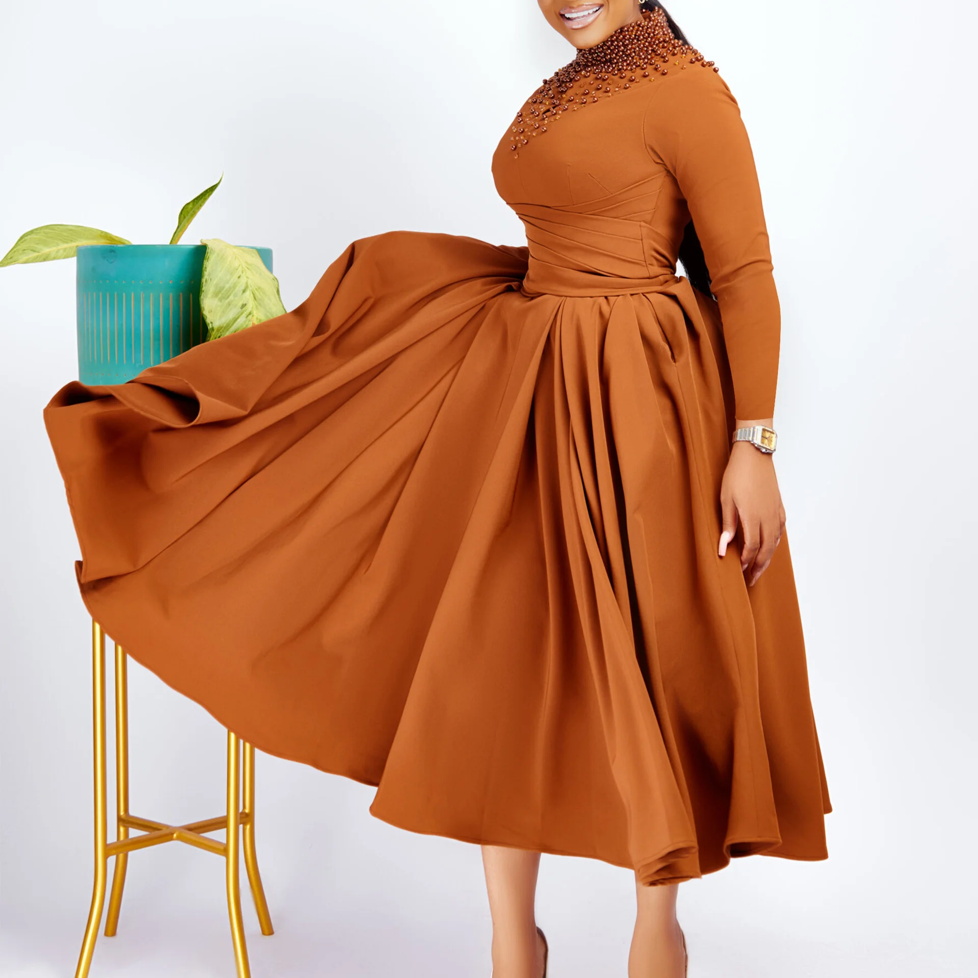 • High-collar design for a elegant look :The high-collar design of this dress adds a touch of elegance to your outfit, making you stand out from the crowd.