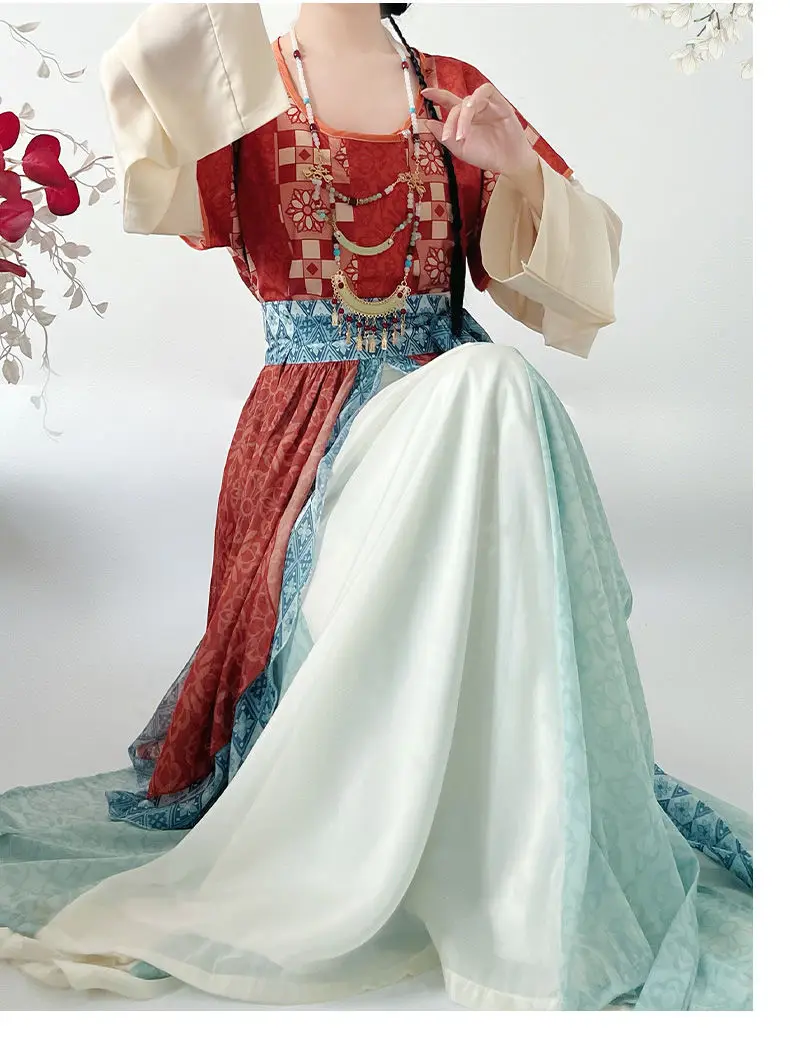 Abito Hanfu originale con scollo rotondo della dinastia Tang per donna, 2 colori, stile etnico, costumi cosplay di Halloween, vestido orientale