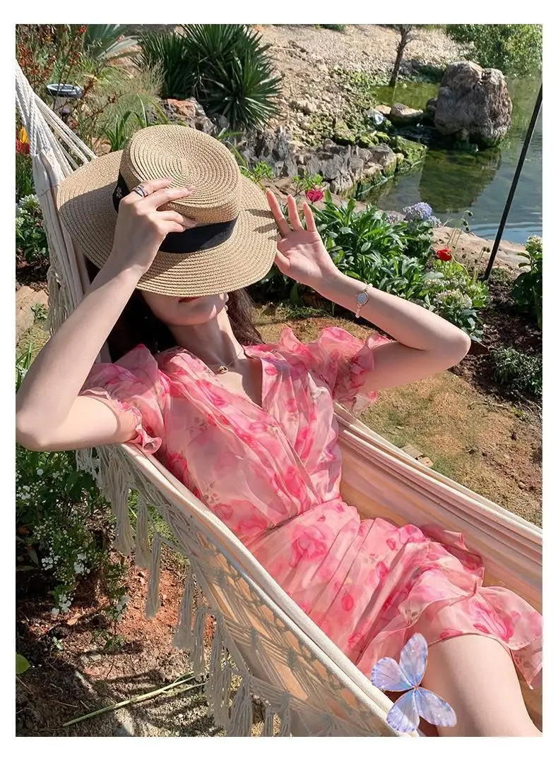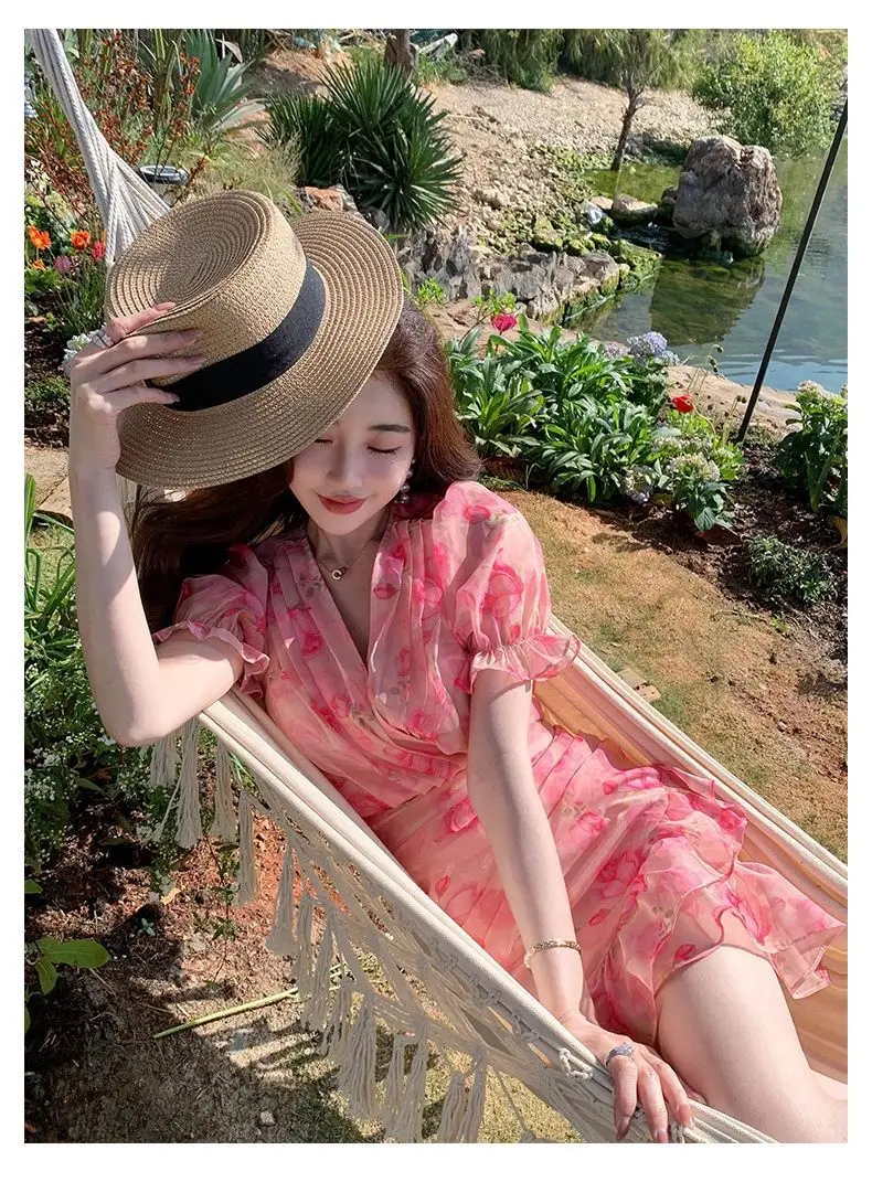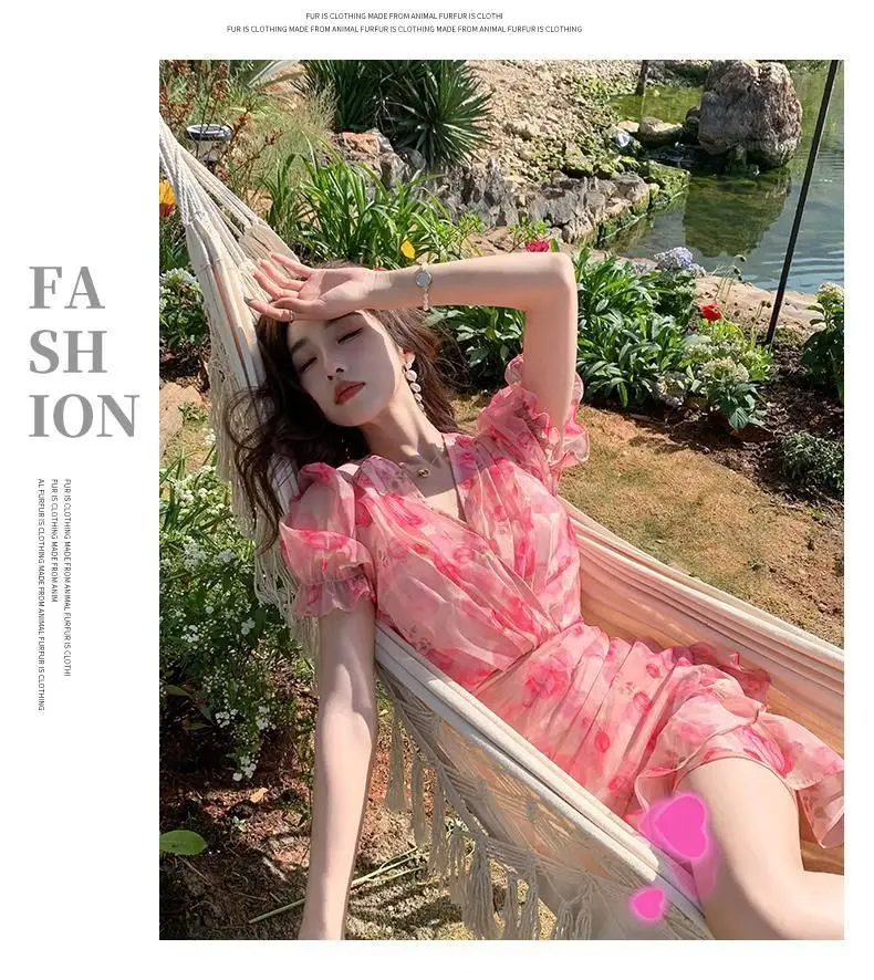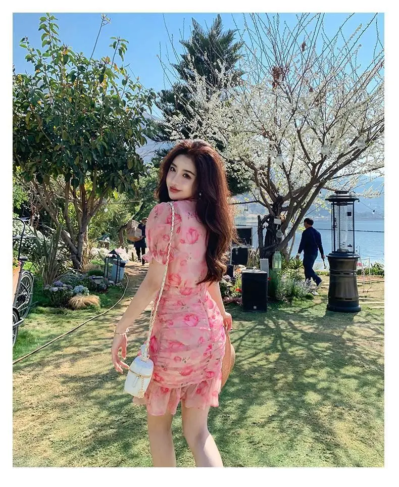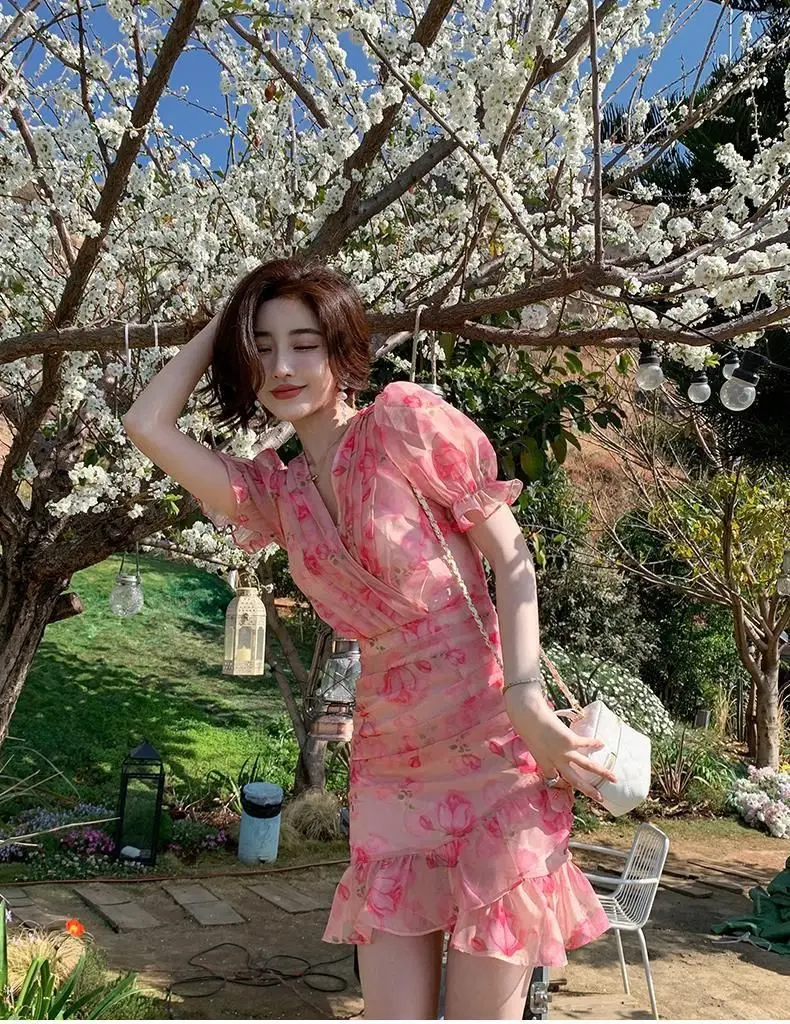 3 recensioni per Abito in chiffon floreale da donna 2025 Estate nuova gonna corta a coda di pesce con vestibilità slim e temperamento sottile