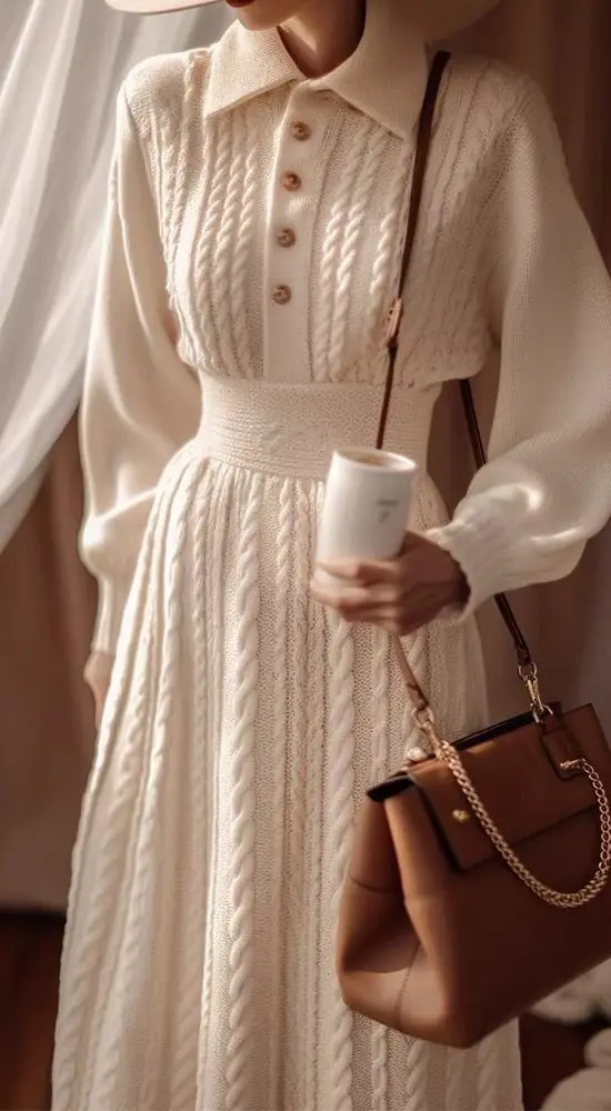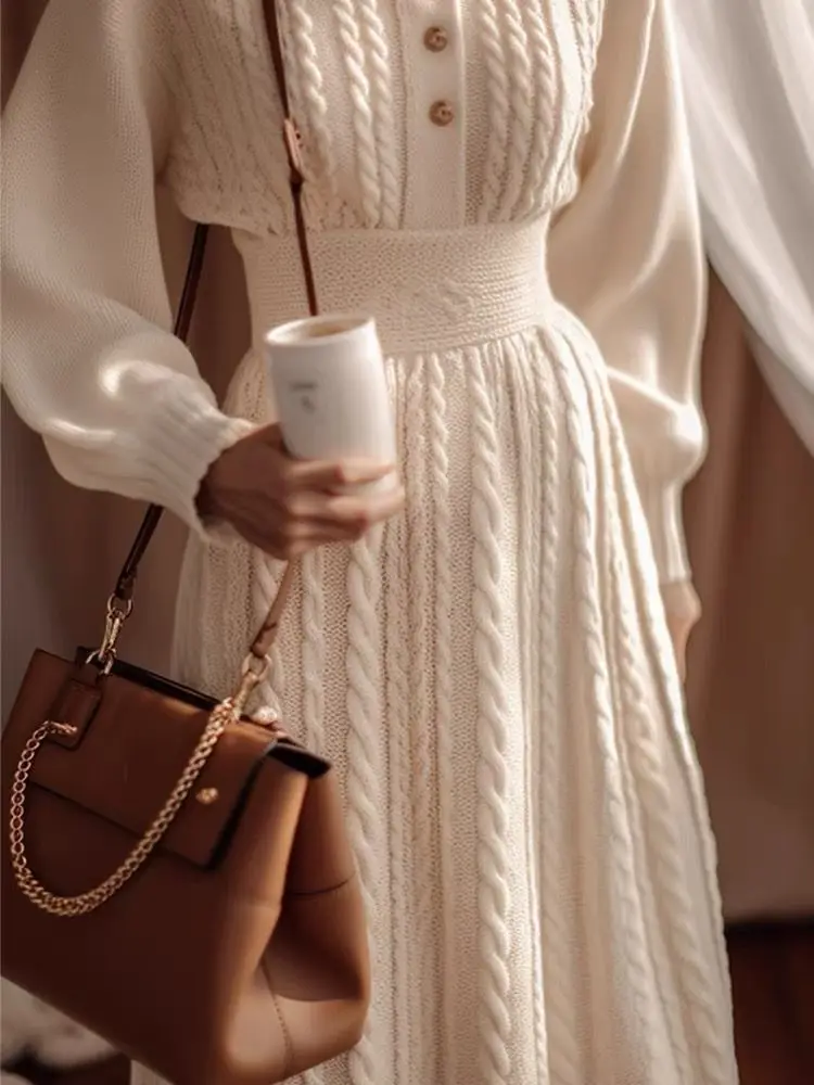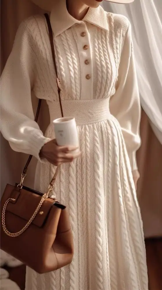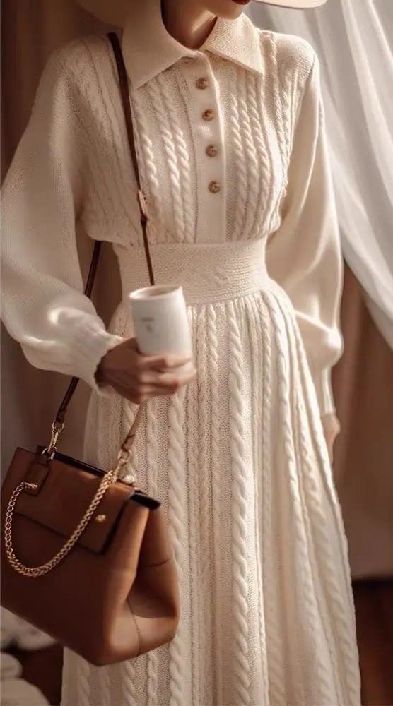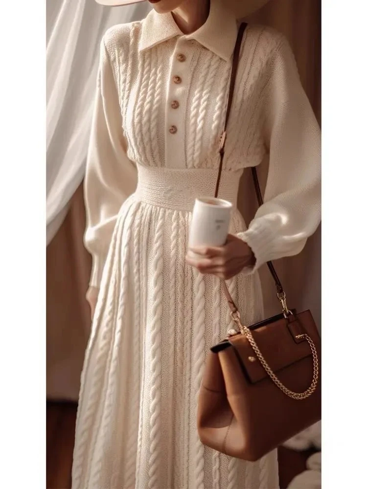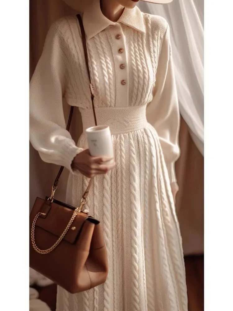 Abito lavorato a maglia twist da donna 2025 Autunno/Inverno Nuova vita sottile maglione pullover abito moda manica lunga maglione lavorato a maglia abiti
