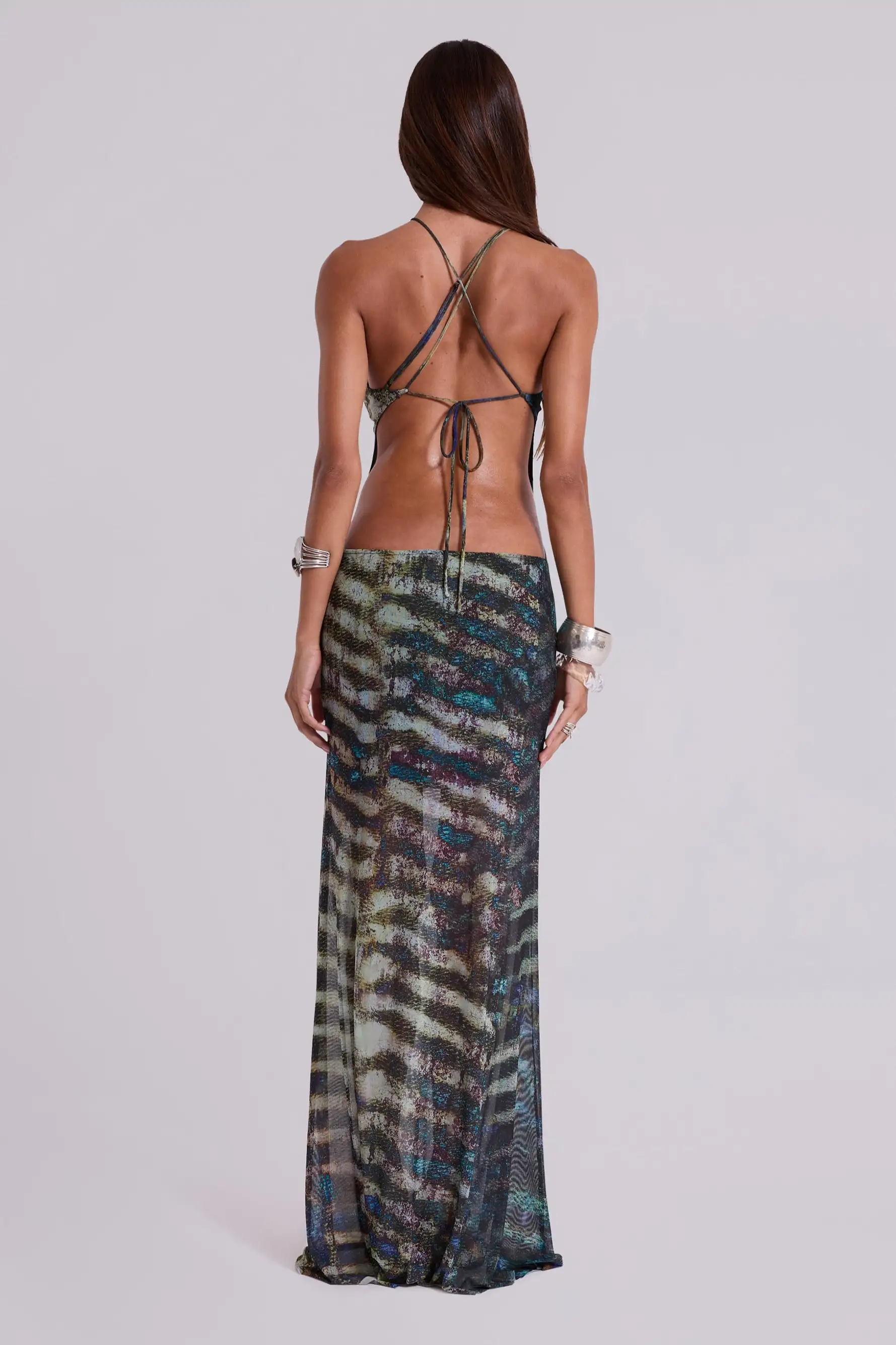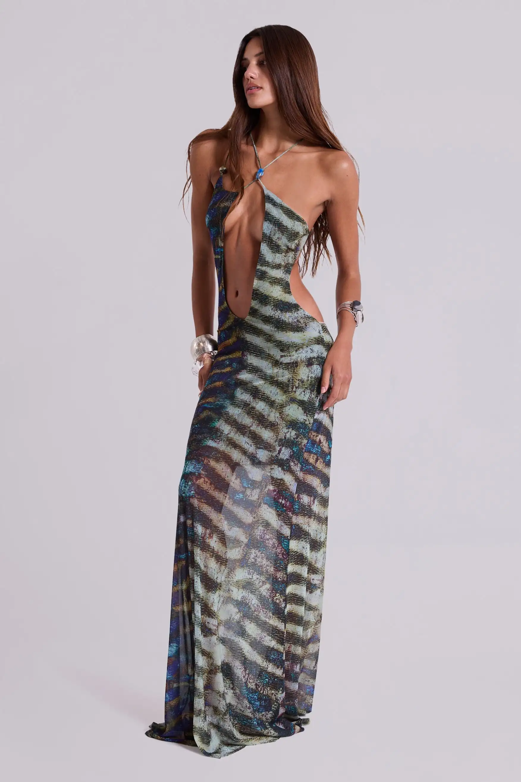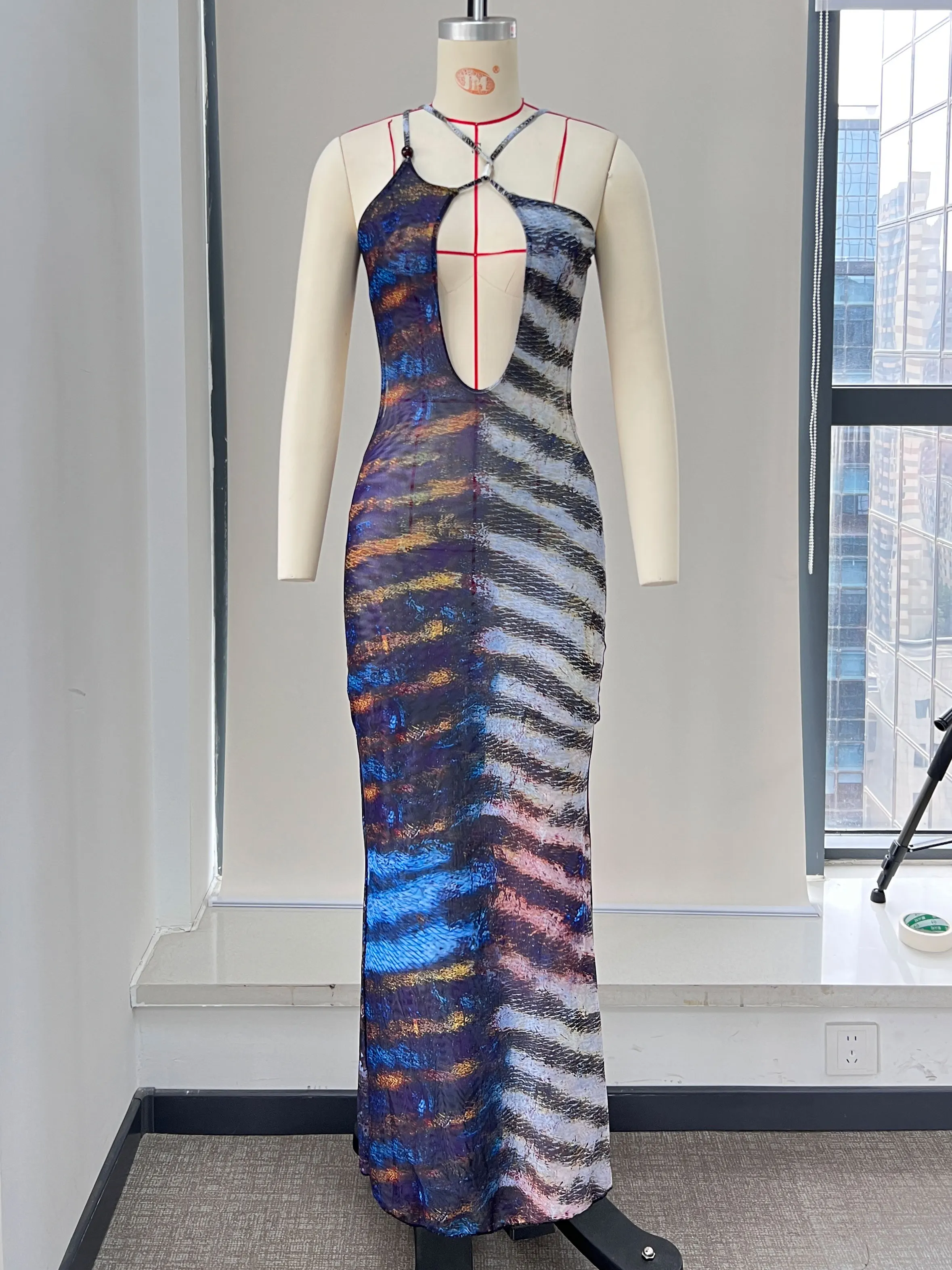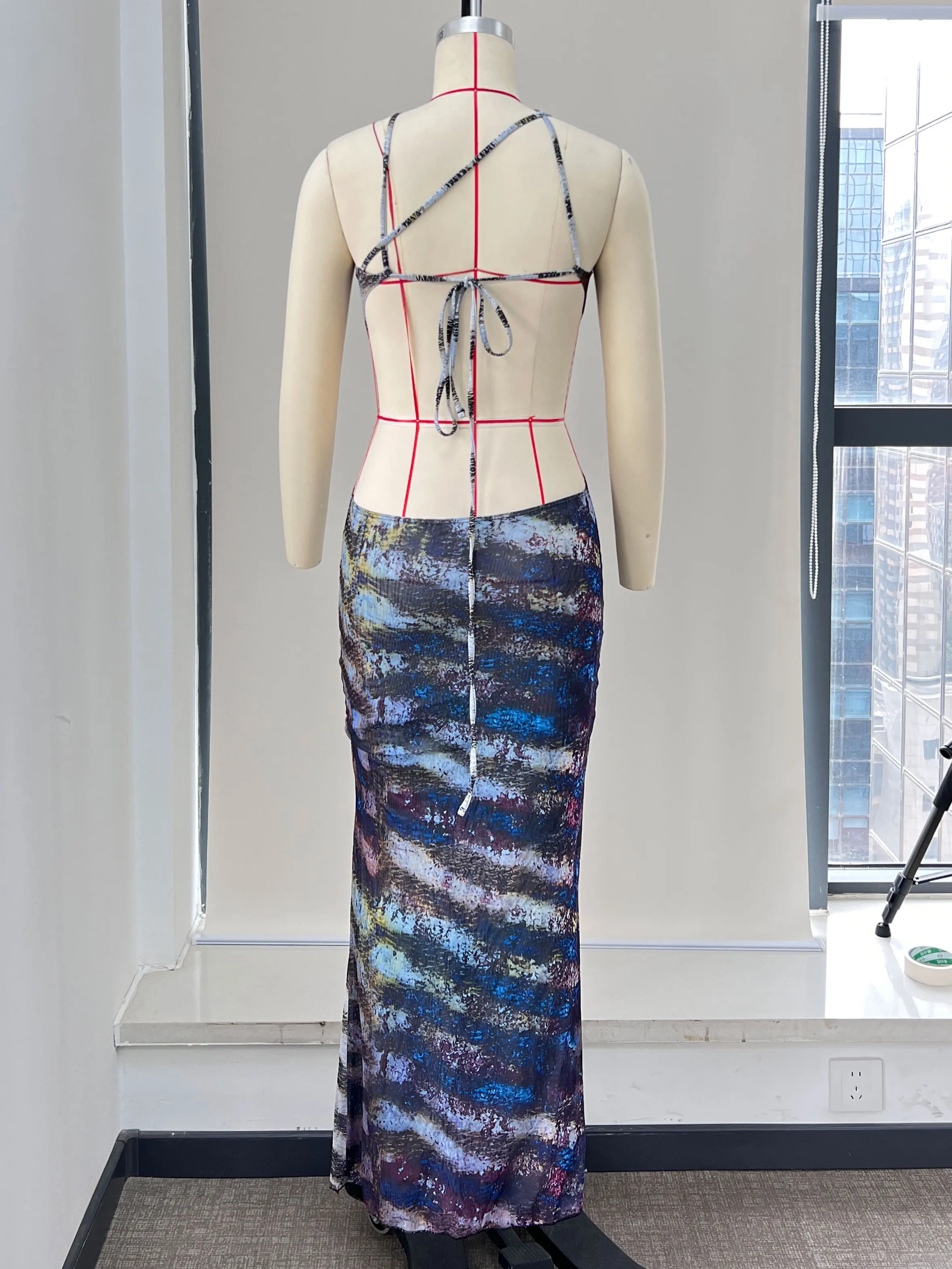 Abito lungo bohémien scollato Abito elegante da donna Abito lungo con stampa asimmetrica Abito estivo casual con scollo all’americana e schiena scoperta