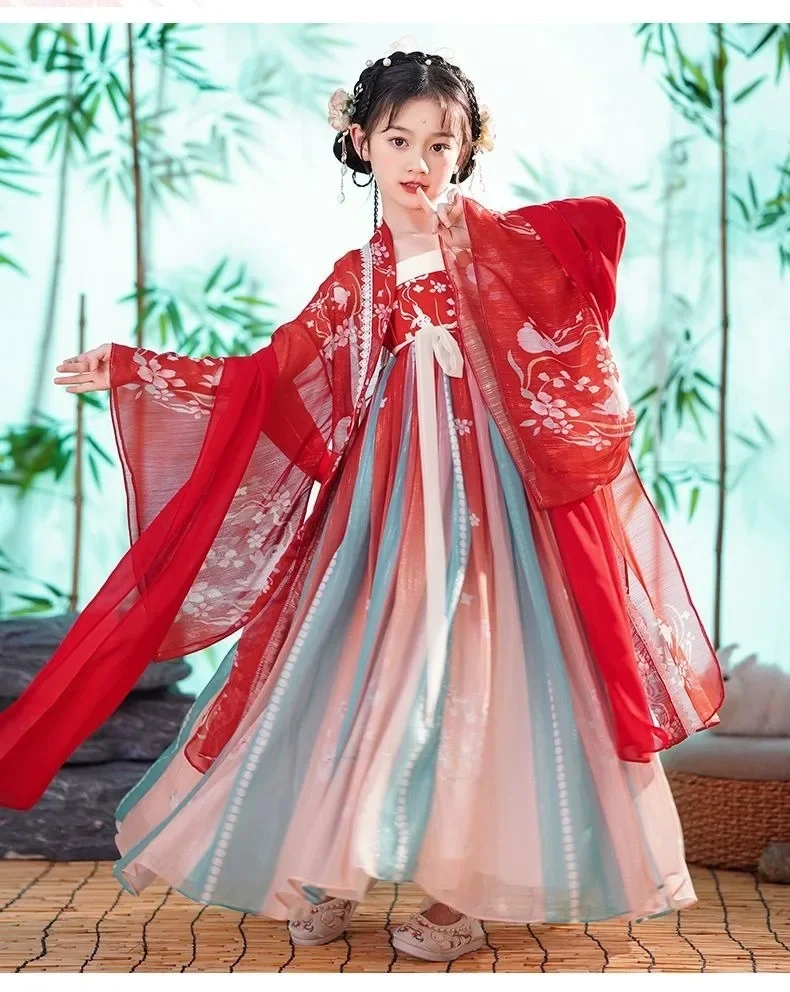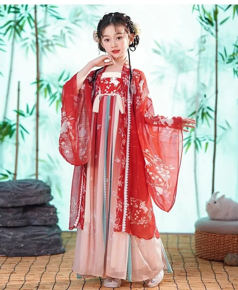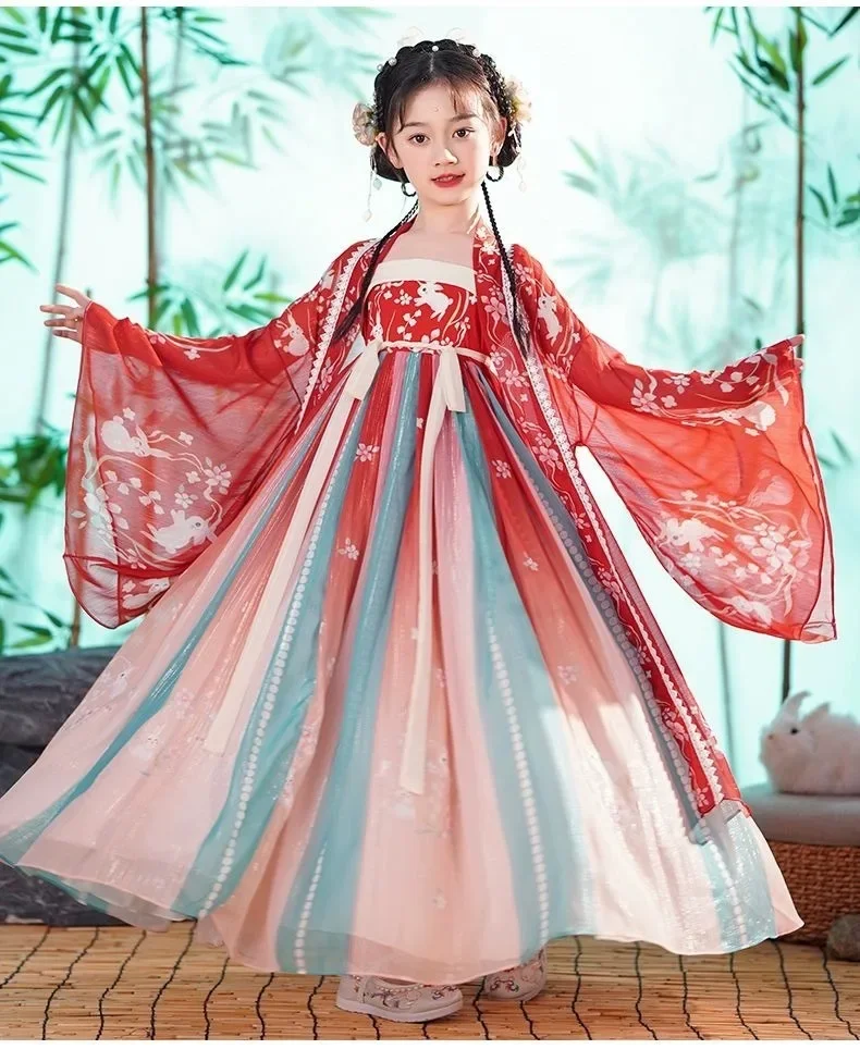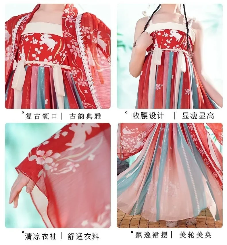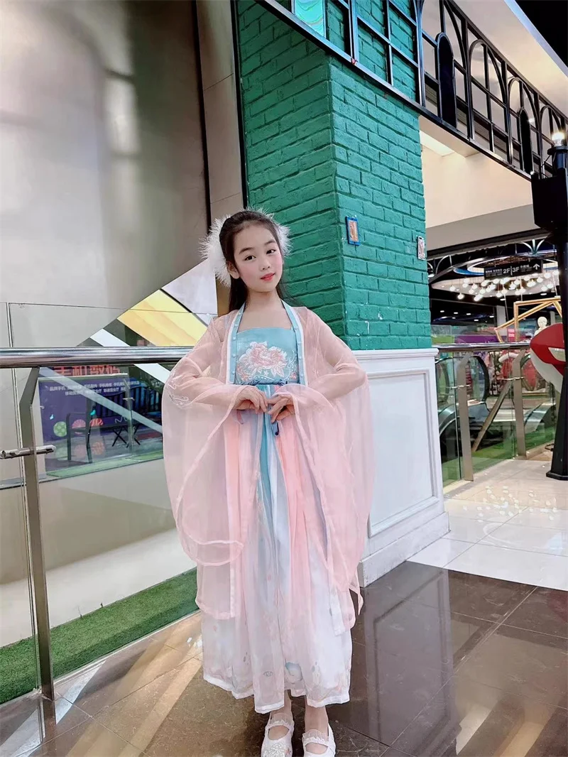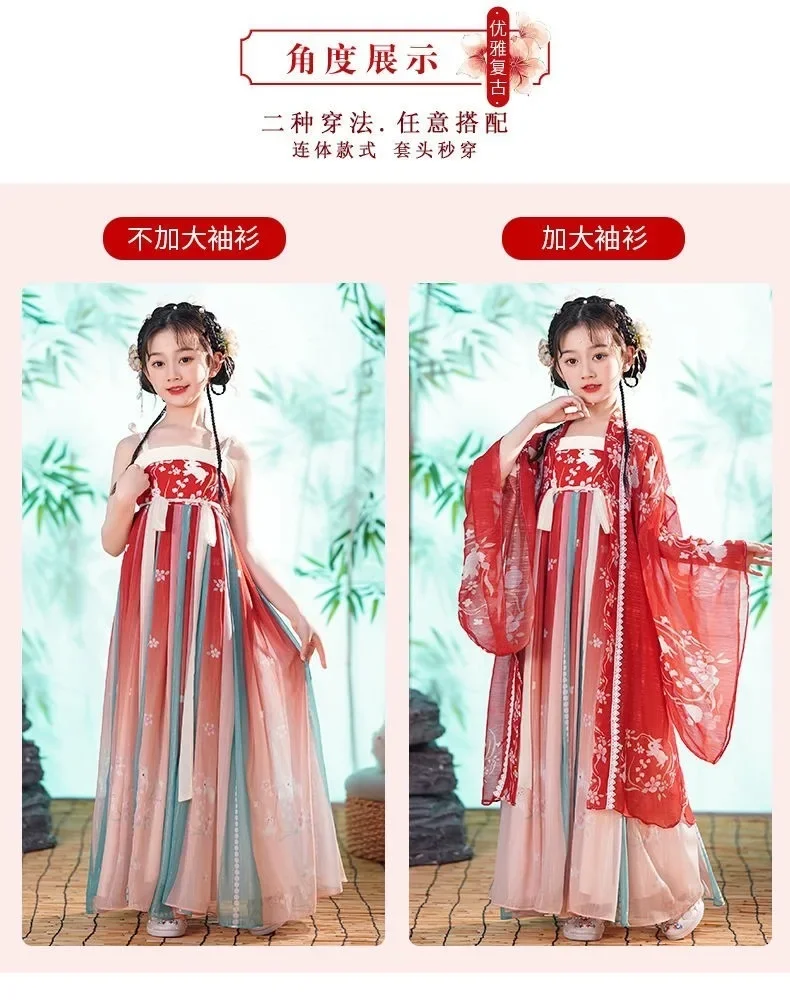 Abito lungo estivo Cappotto Set Ragazza Tang Baby Hanfu Abiti Set per bambini Esegui outfit Costume Abbigliamento per bambini Abiti per ragazze Abito
