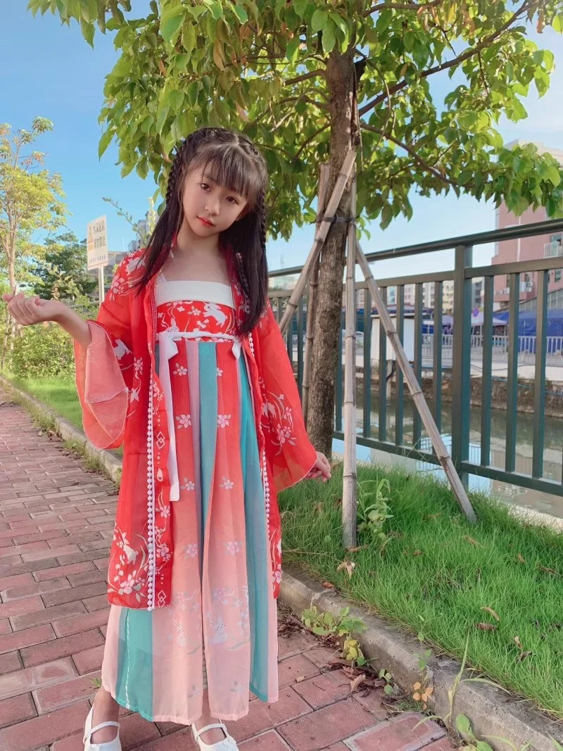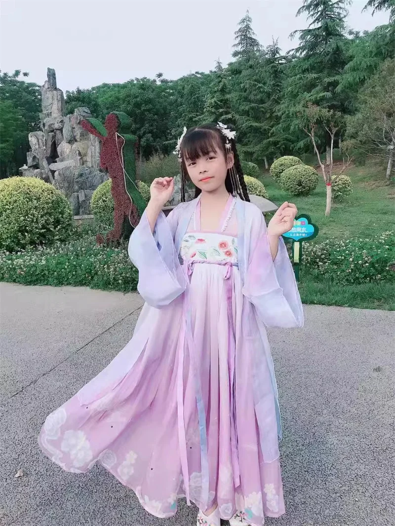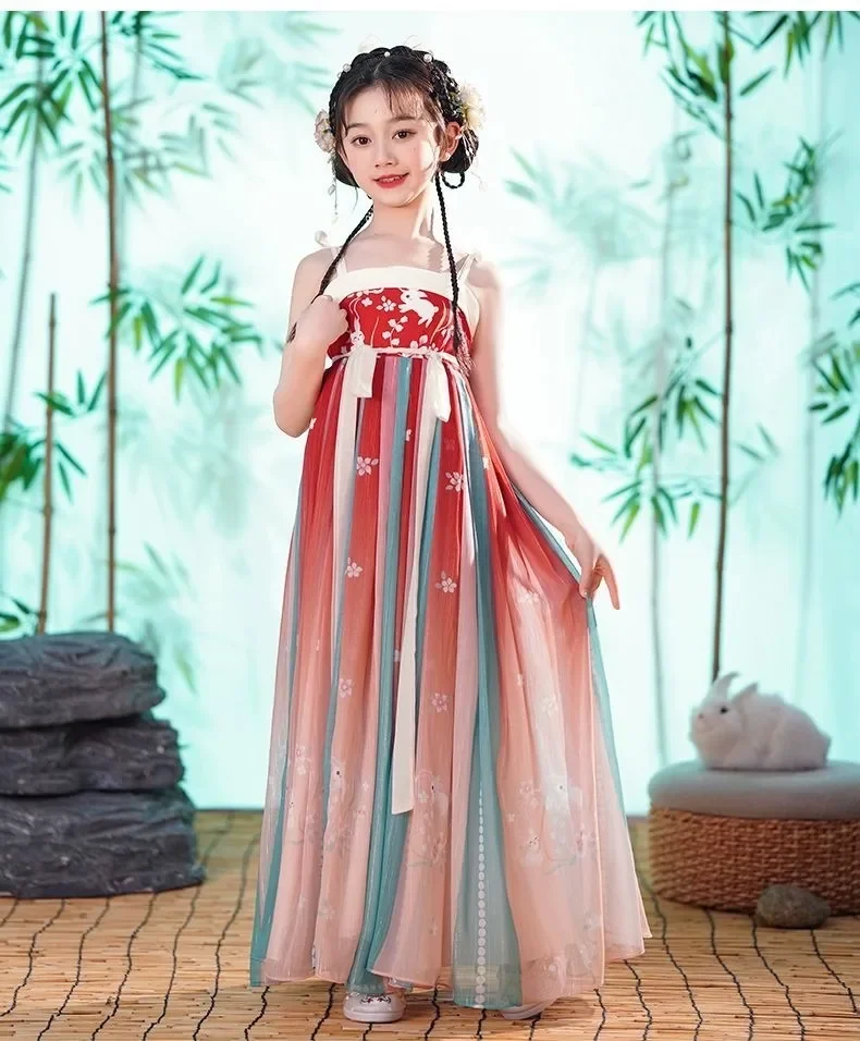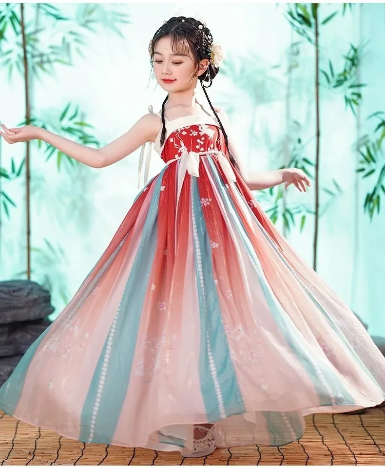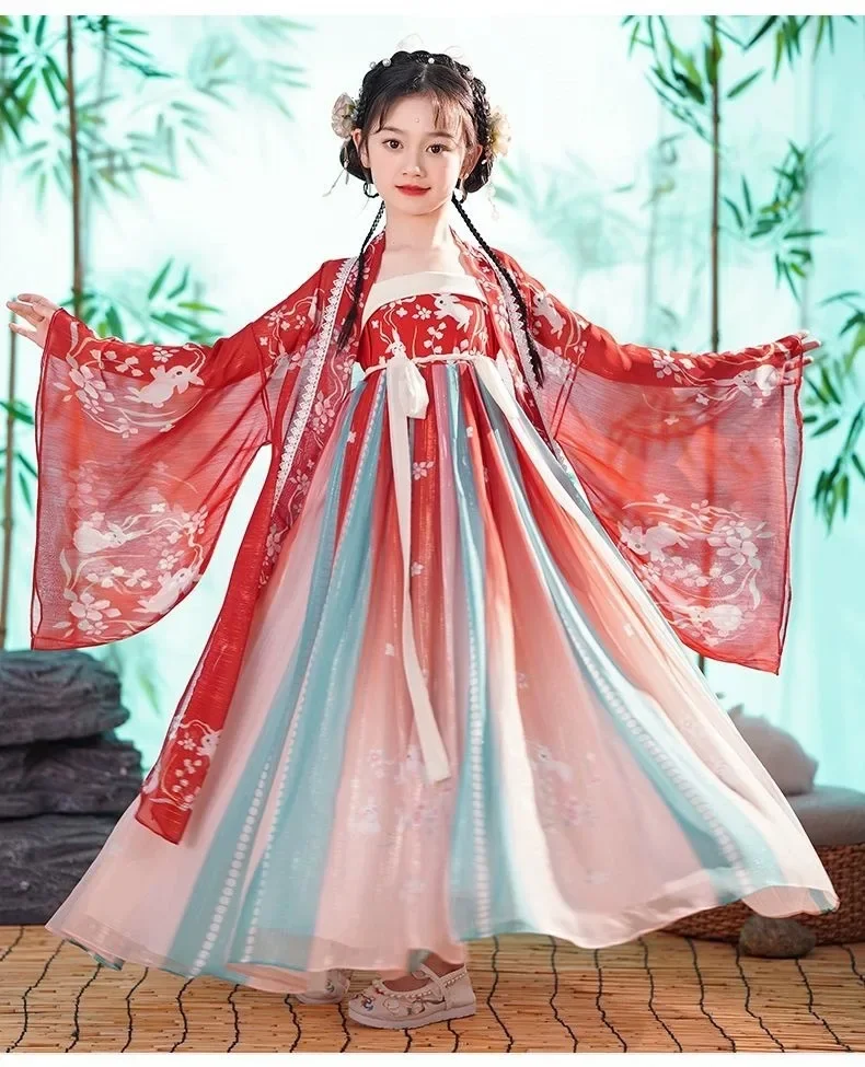 Abito lungo estivo Cappotto Set Ragazza Tang Baby Hanfu Abiti Set per bambini Esegui outfit Costume Abbigliamento per bambini Abiti per ragazze Abito